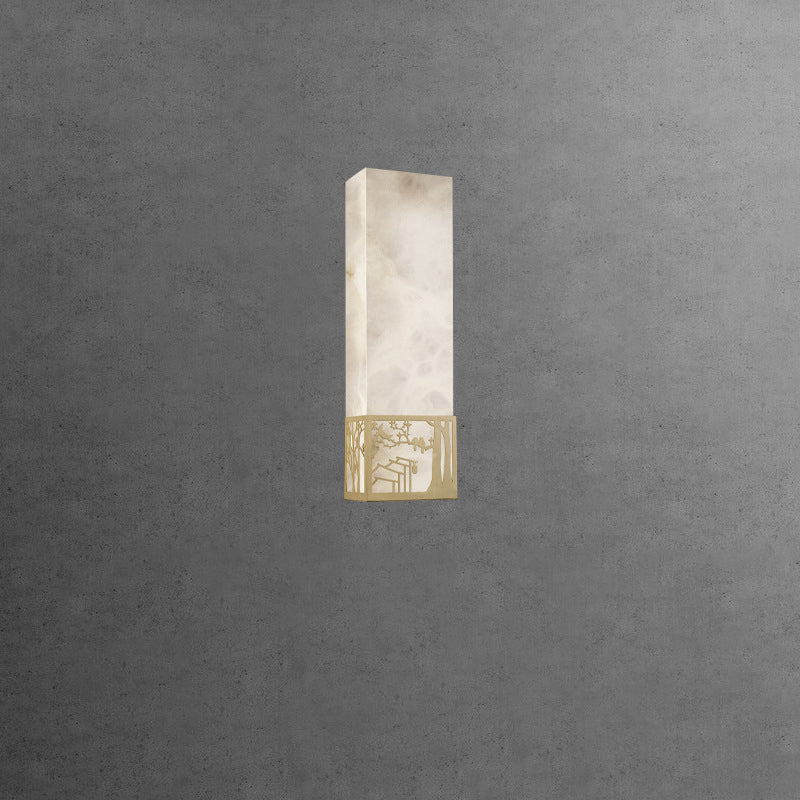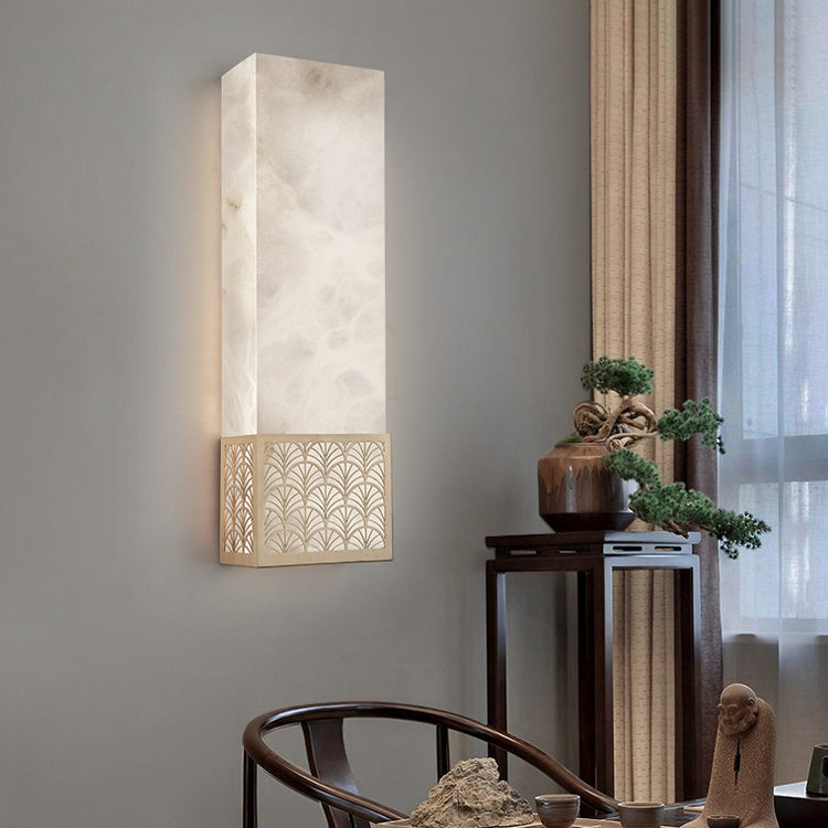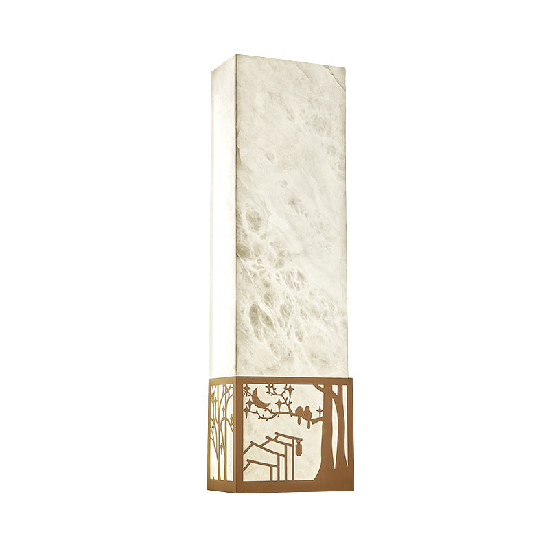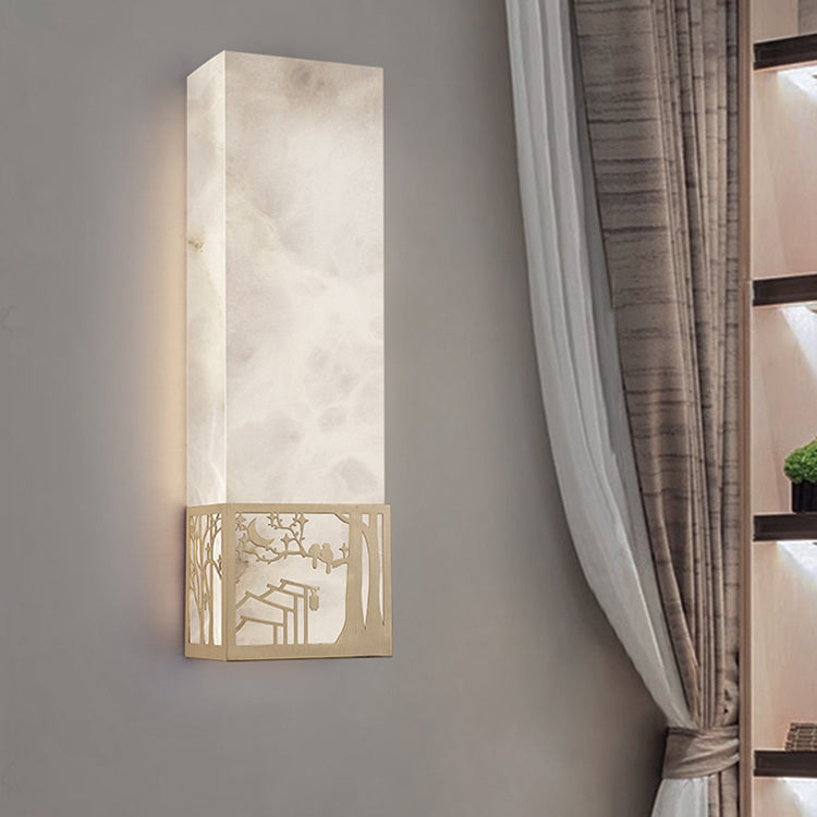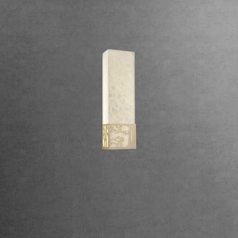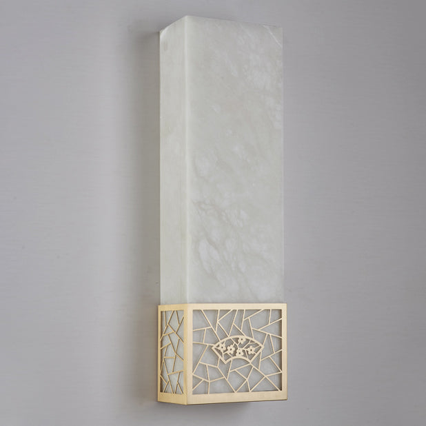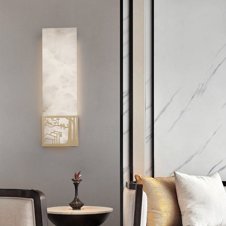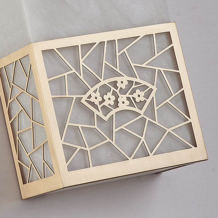 Traditional Chinese Marble Copper Natural Plum Blossom Rectangular LED Wall Sconce Lamp For Bedside
