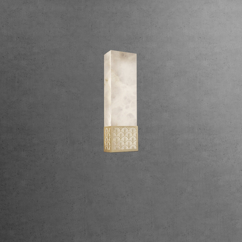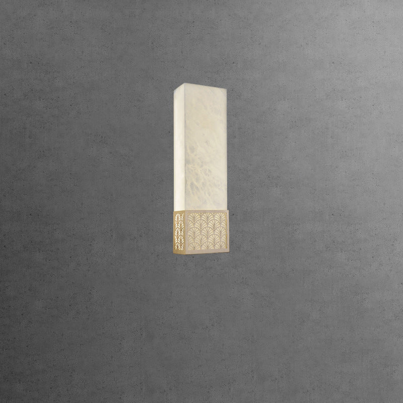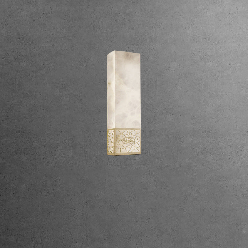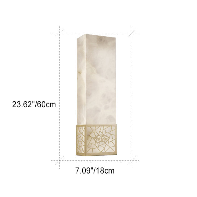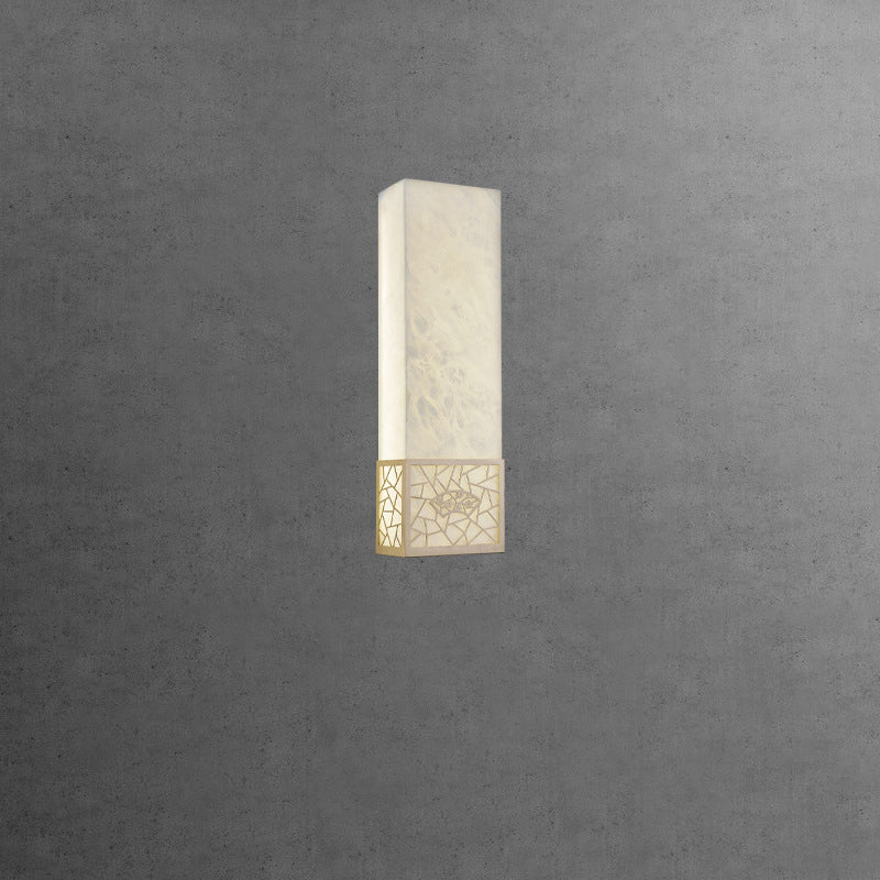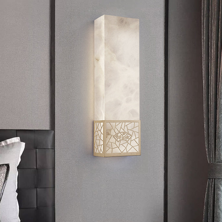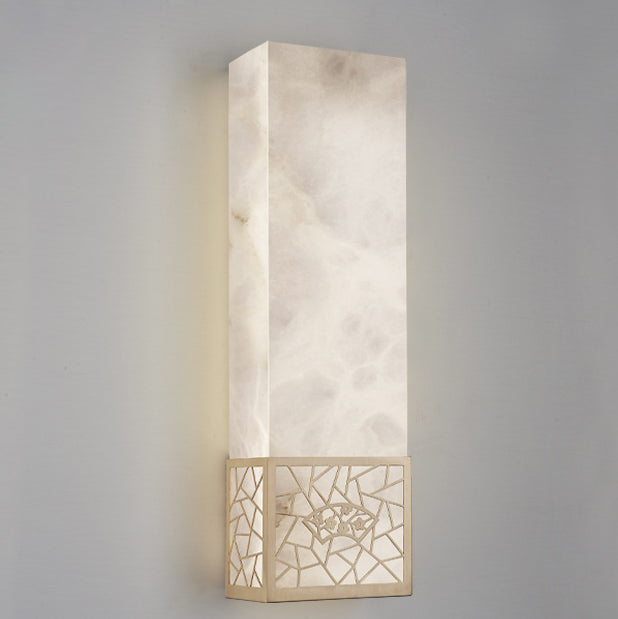 Traditional Chinese Marble Copper Natural Plum Blossom Rectangular LED Wall Sconce Lamp For Bedside