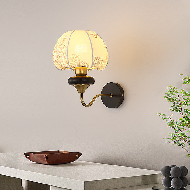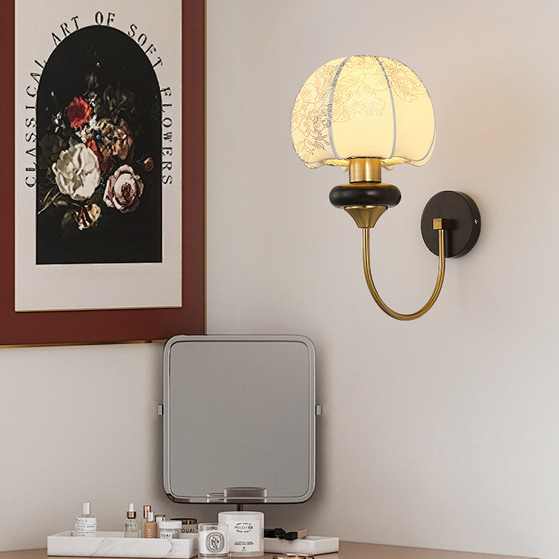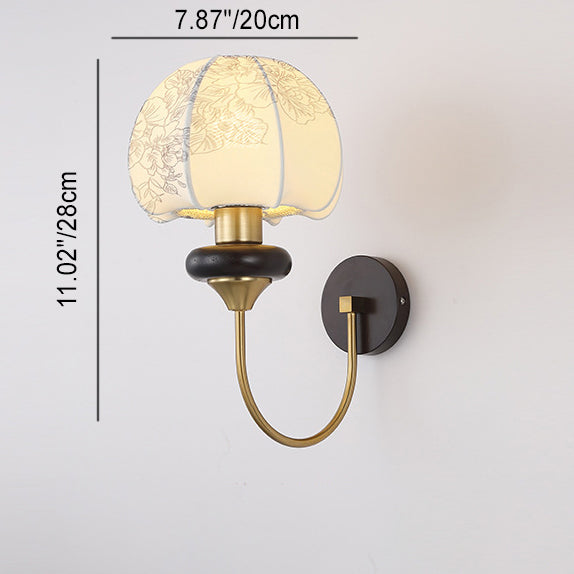 Traditional Chinese Mushroom Shape Pattern Fabric Lampshade Hardware 1 - Light Wall Sconce Lamp For Living Room