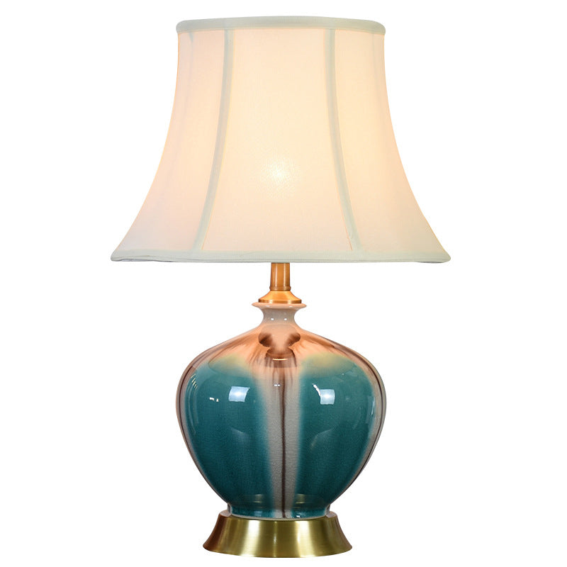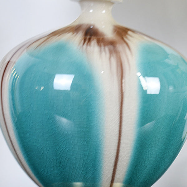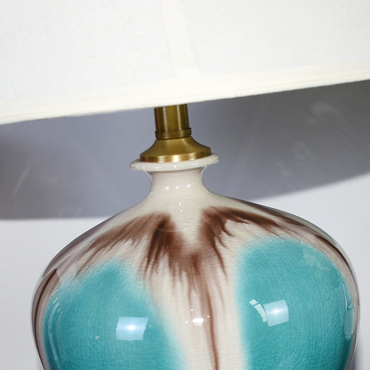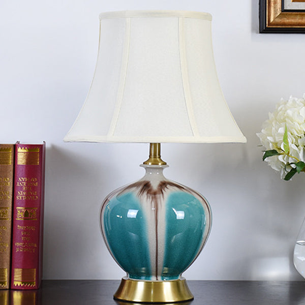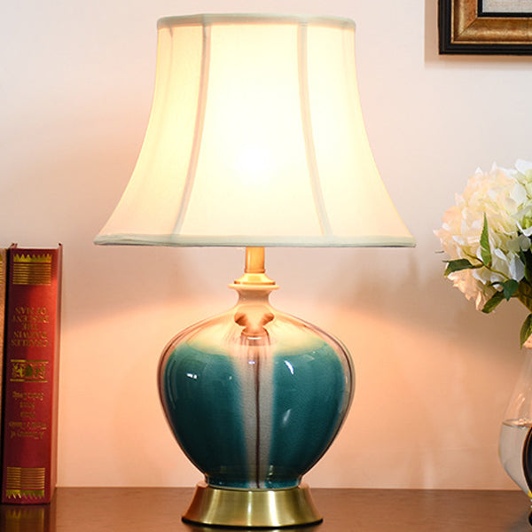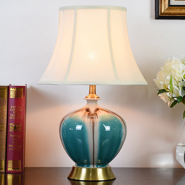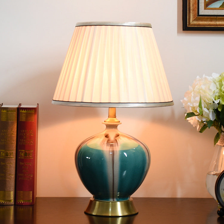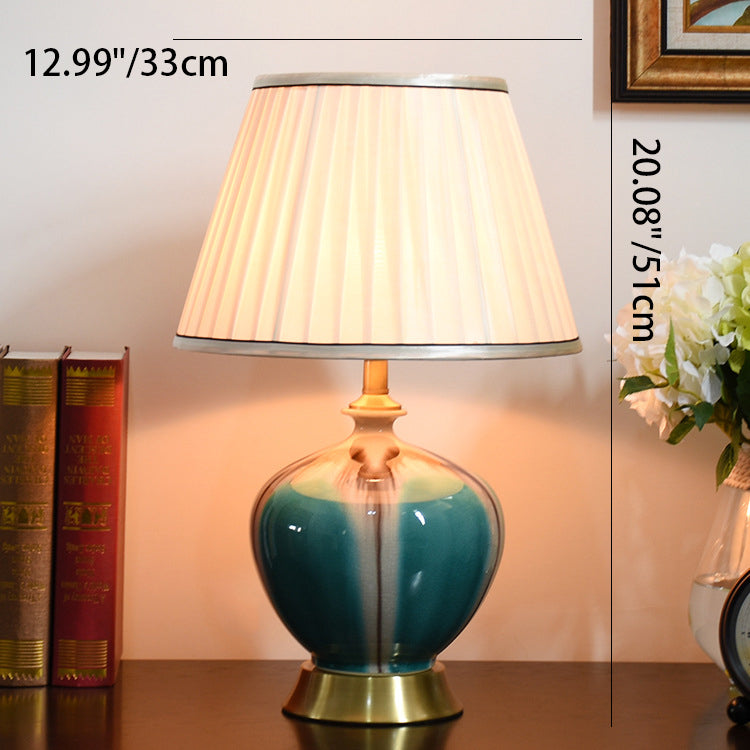 Traditional Chinese Pleated Fabric Shade Ceramic Vase Base 1-Light Table Lamp For Study