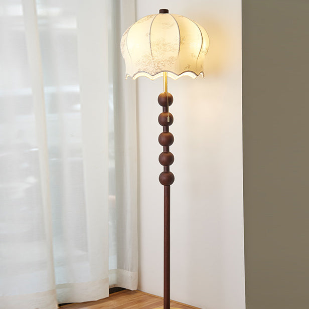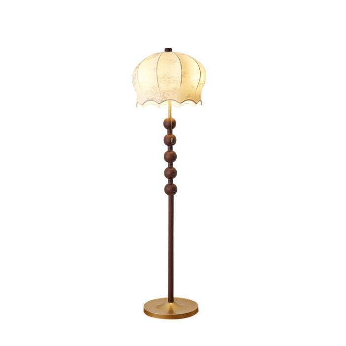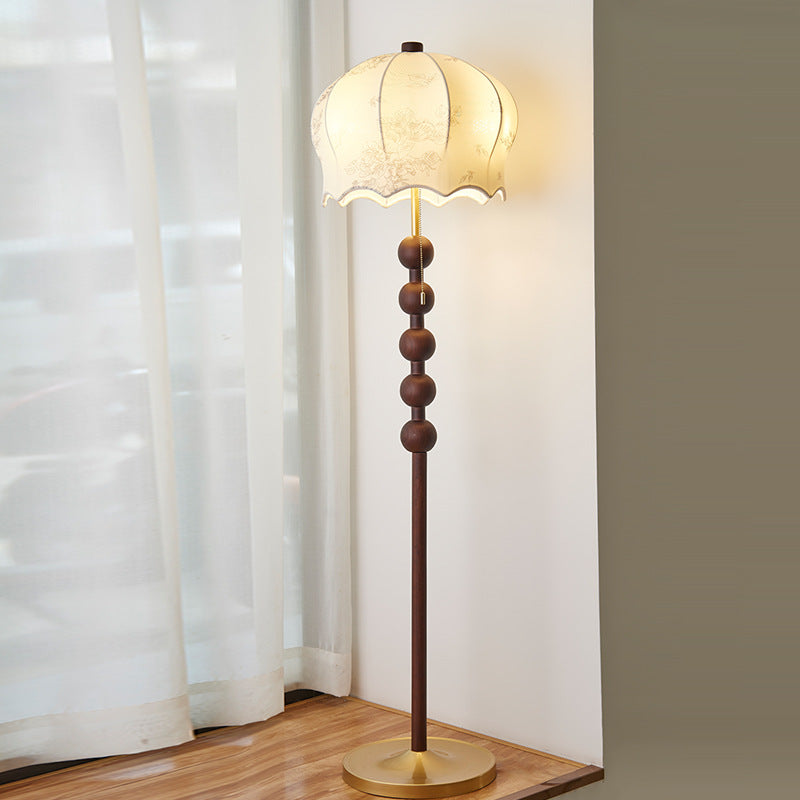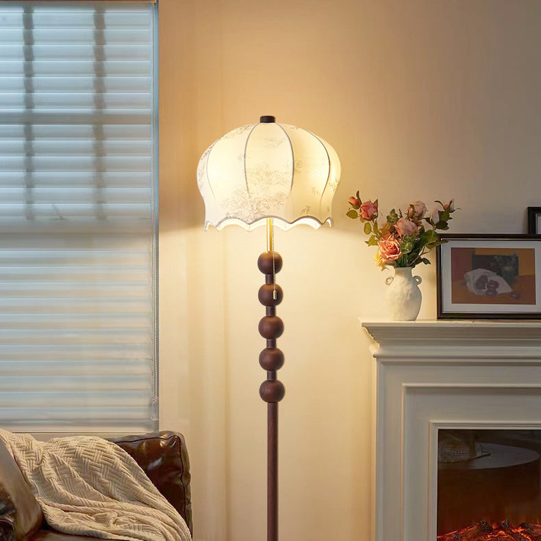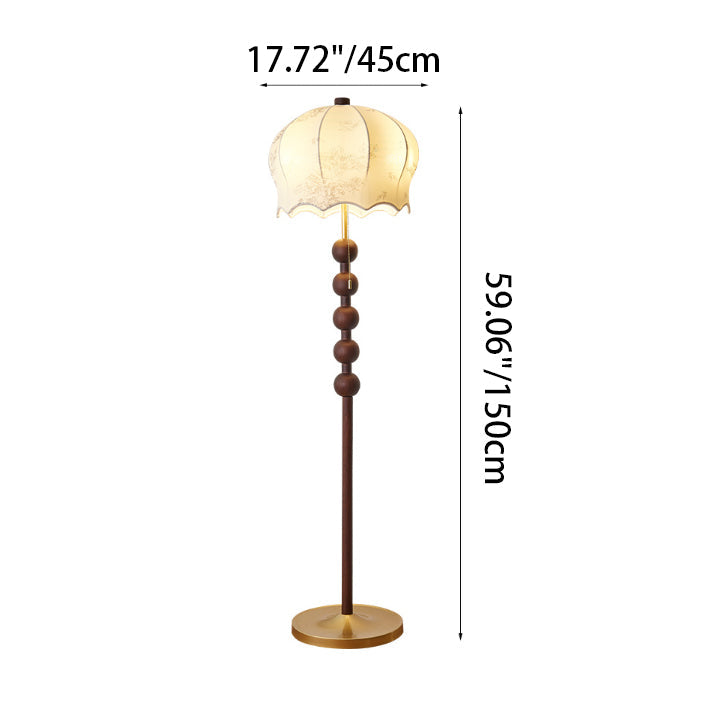 Traditional Vintage Flower Pattern Fabric Shade Wood Iron Rod 3-Light Standing Floor Lamp For Study