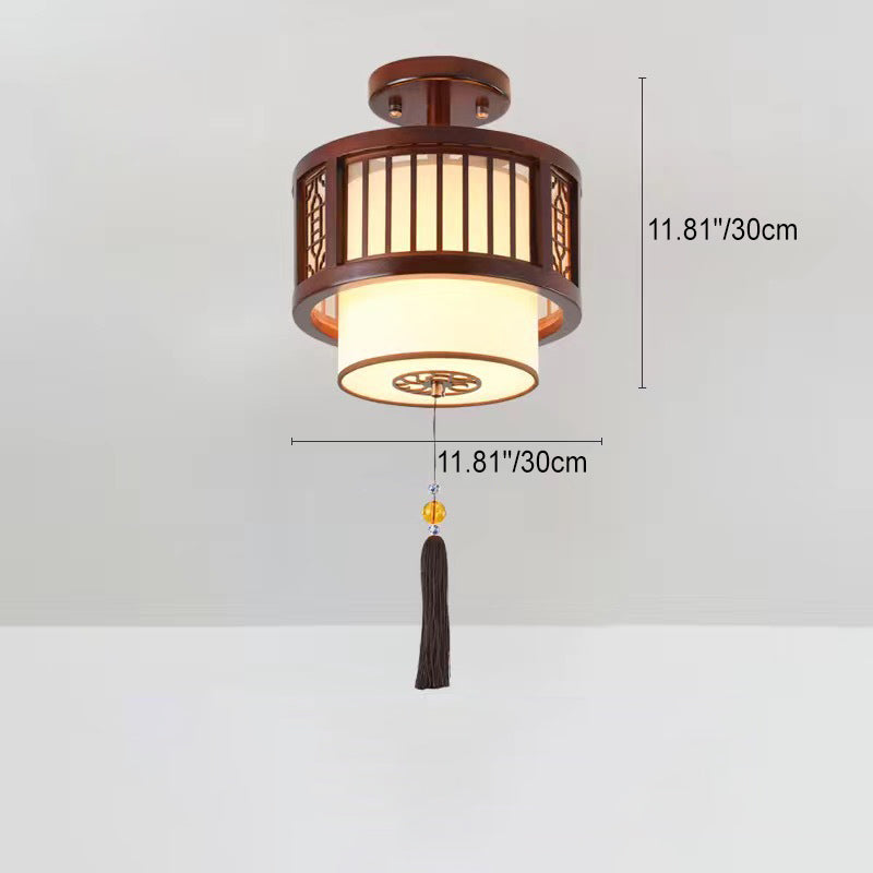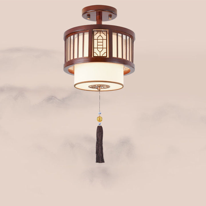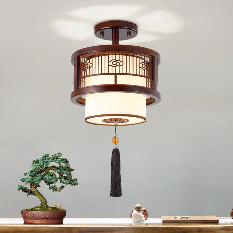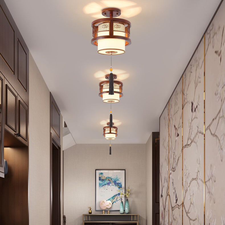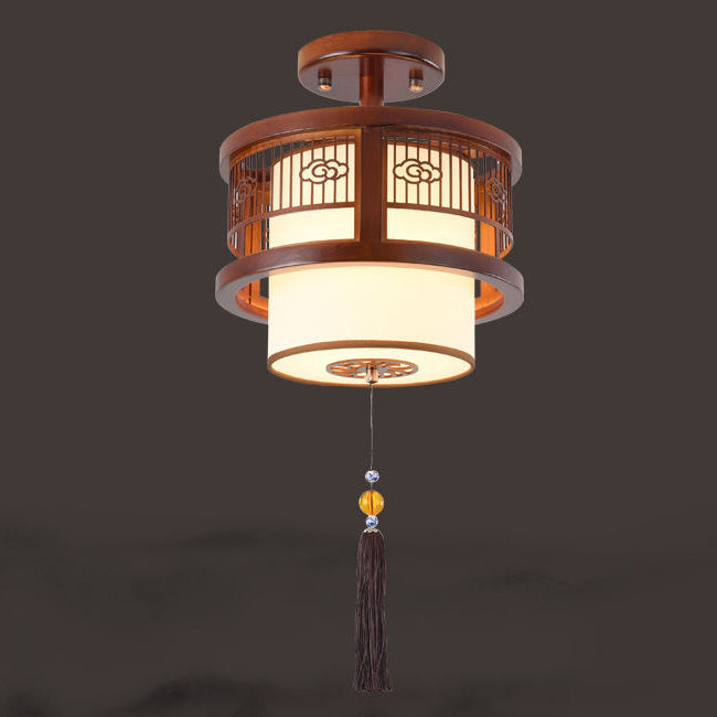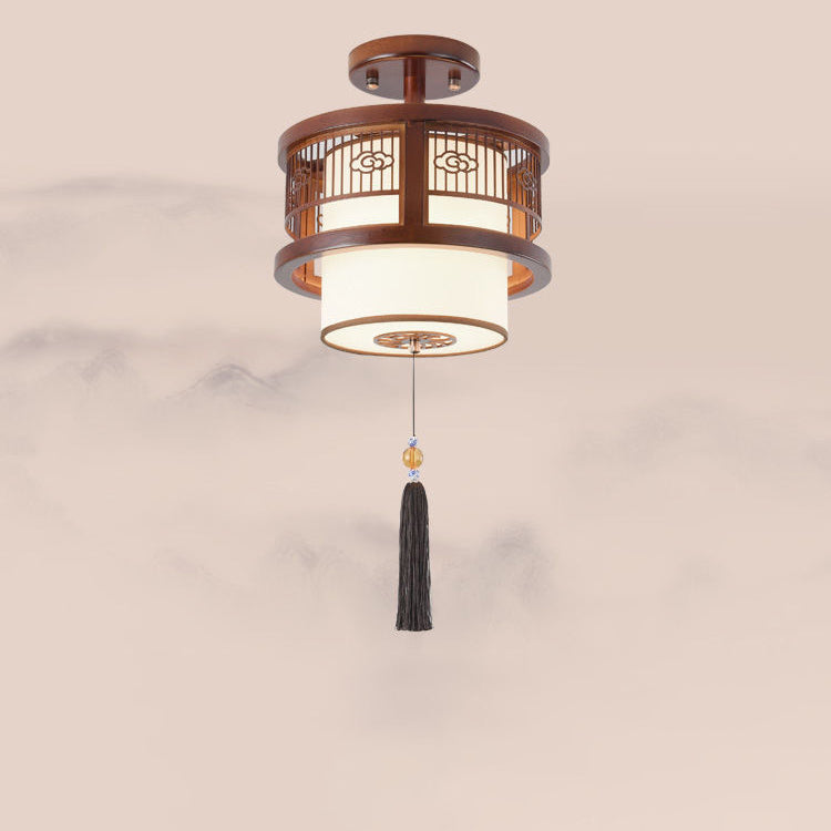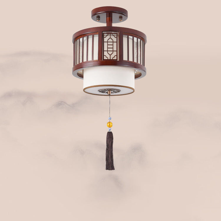 Traditional Chinese Solid Wooden Fabric Lantern Shade 1/3-Light Chandelier For Living Room