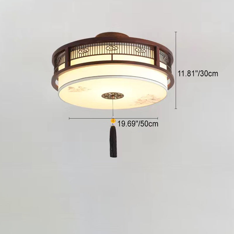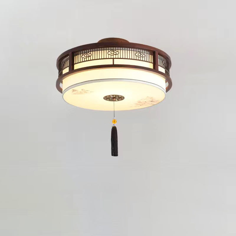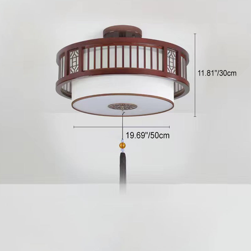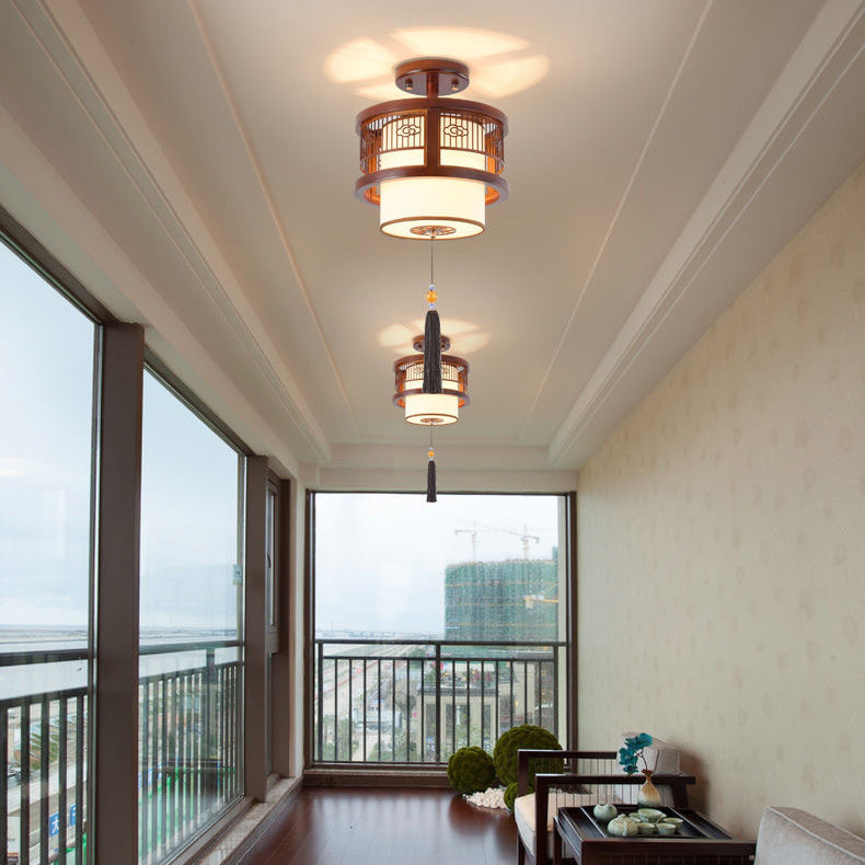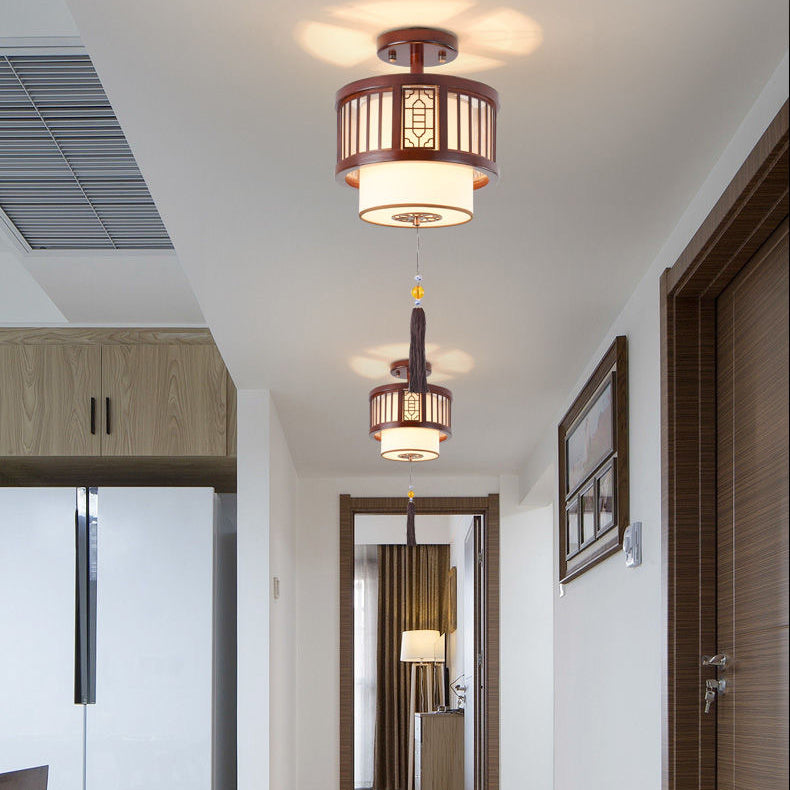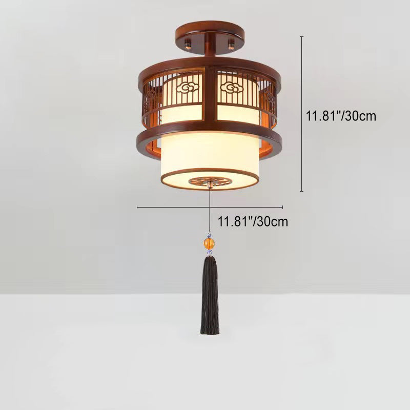 Traditional Chinese Solid Wooden Fabric Lantern Shade 1/3-Light Chandelier For Living Room