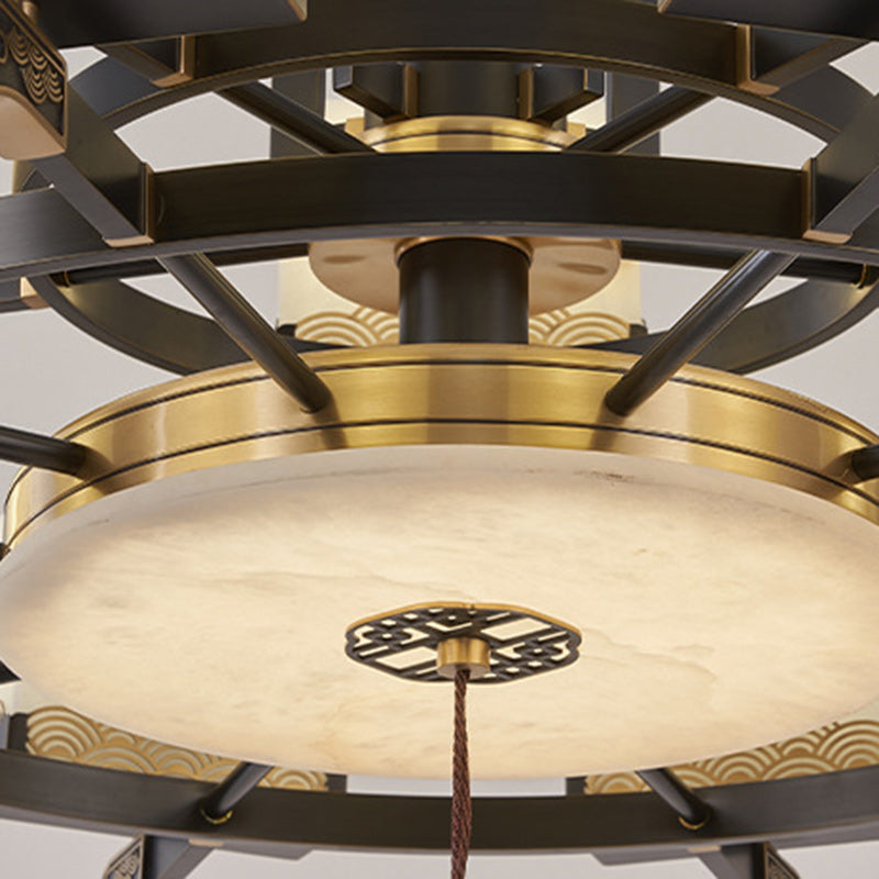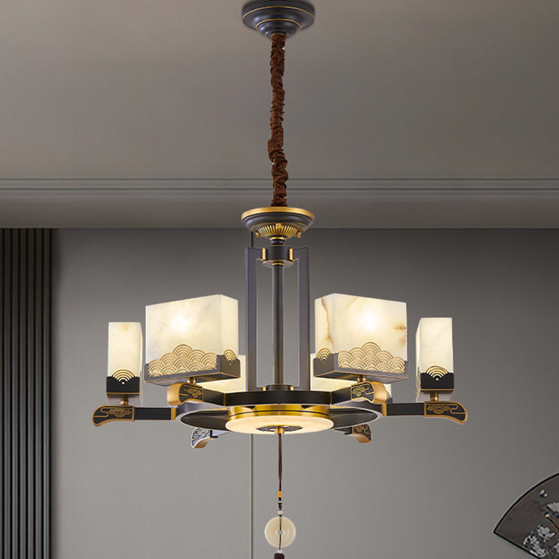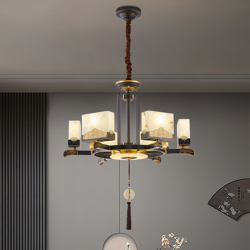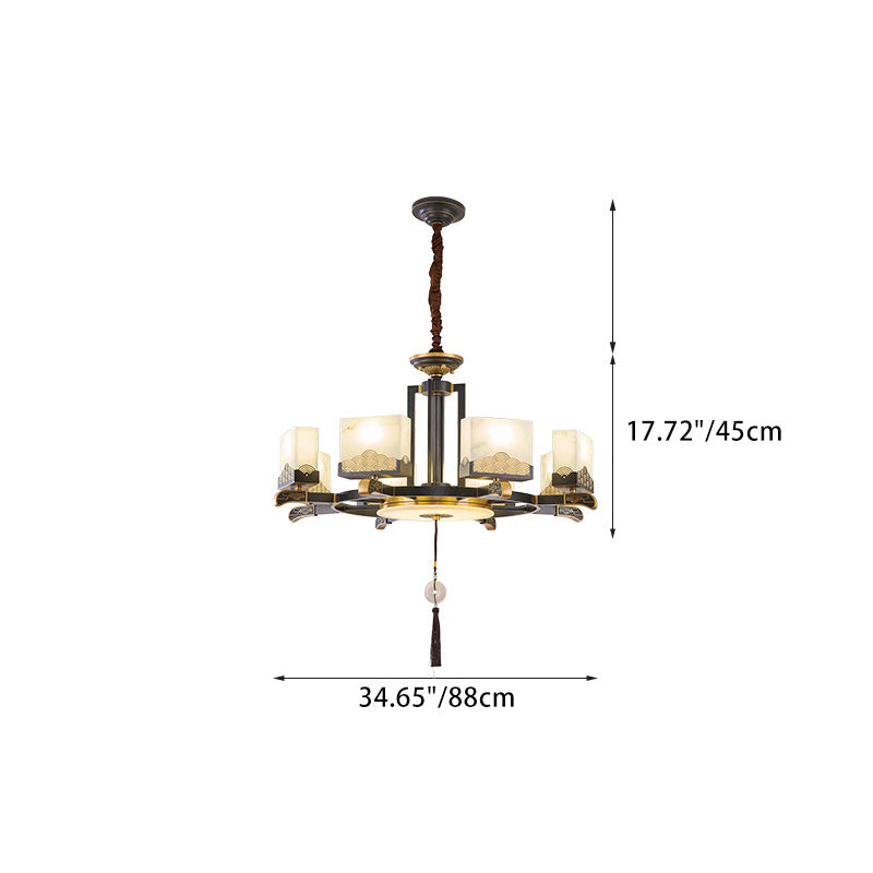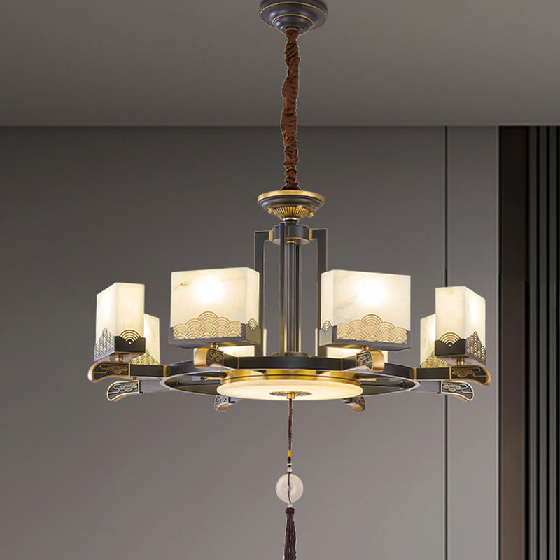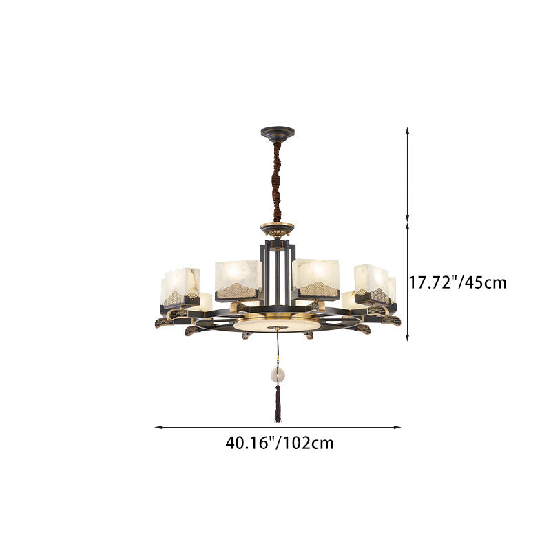 Traditional Chinese Square Round Copper Marble 6/8/10 Light Chandelier For Living Room