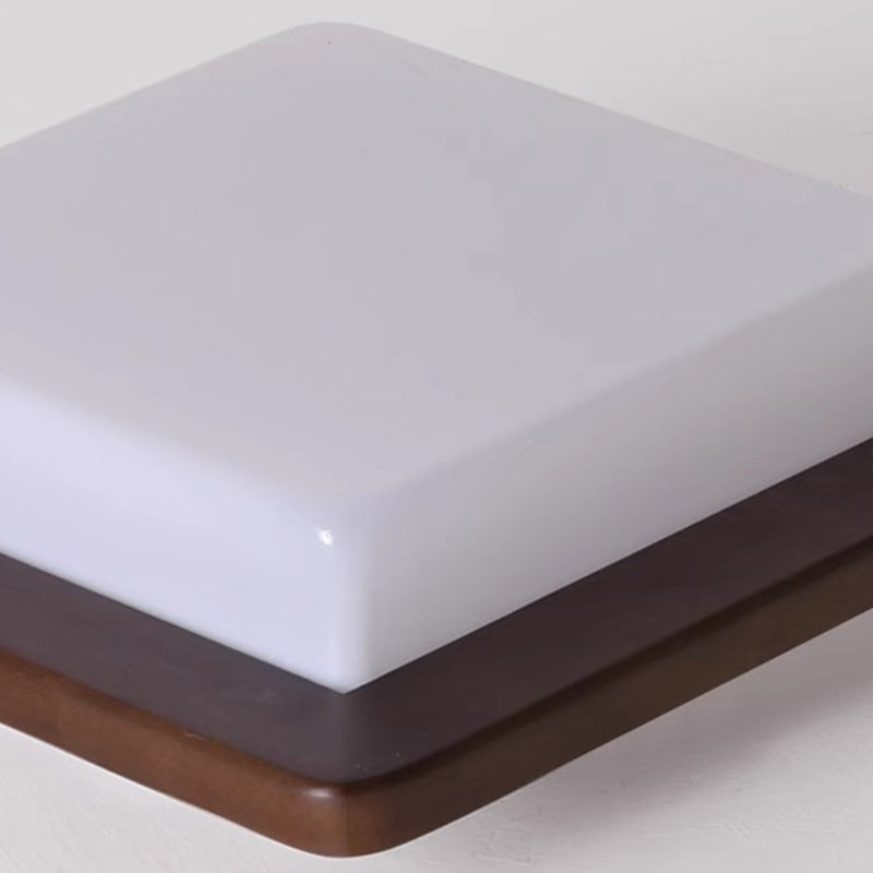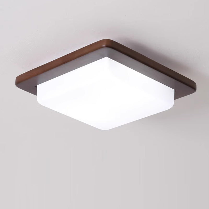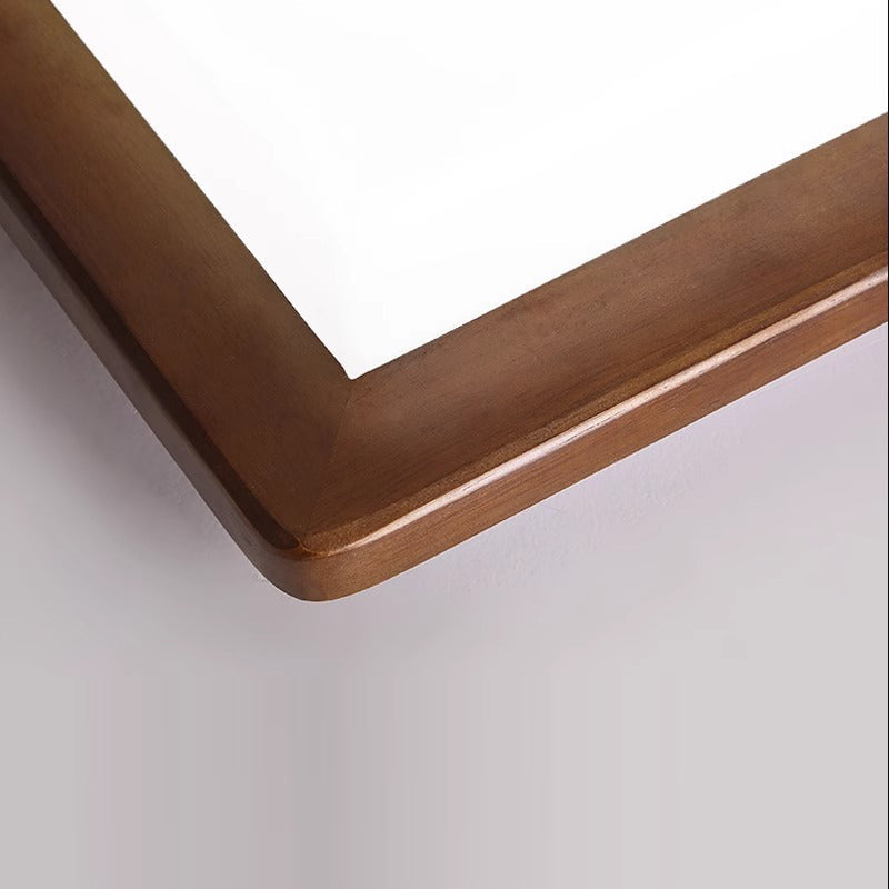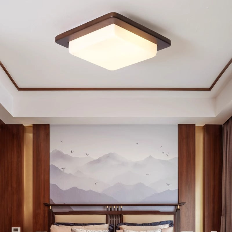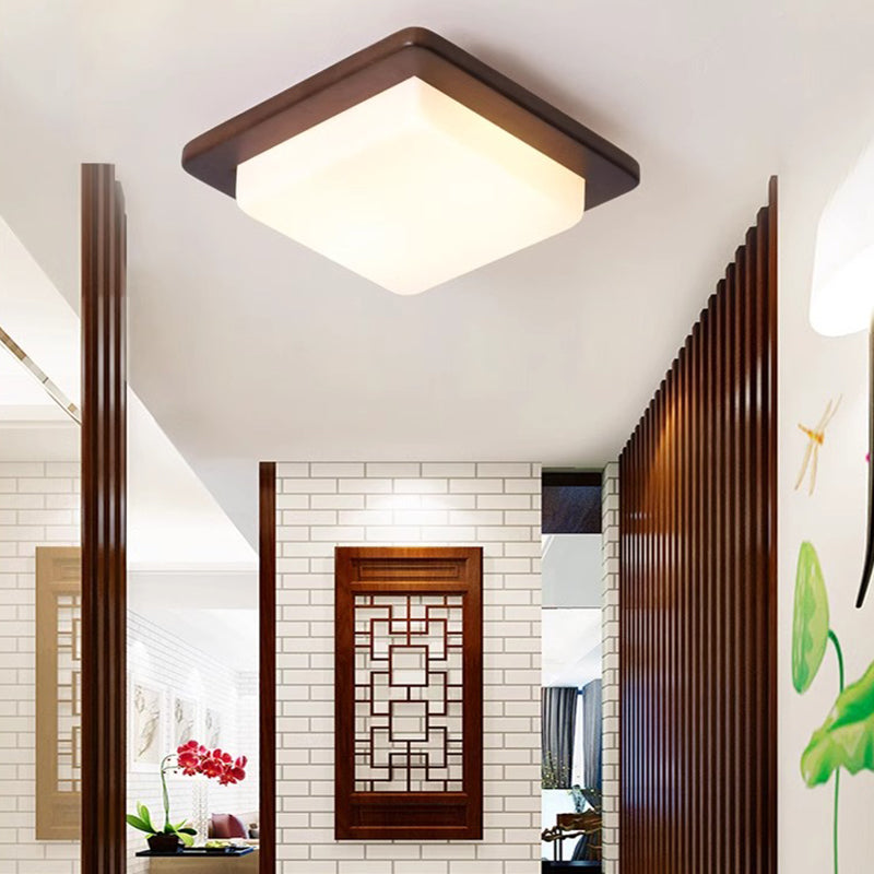 Traditional Chinese Square Solid Wood Acrylic Shade LED Flush Mount Ceiling Light For Bedroom