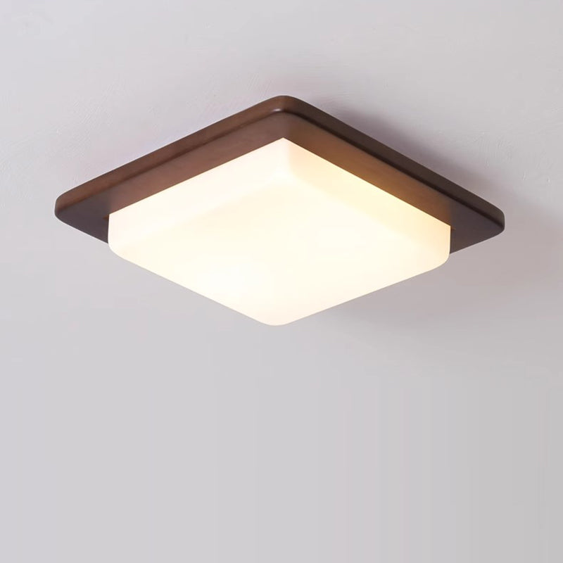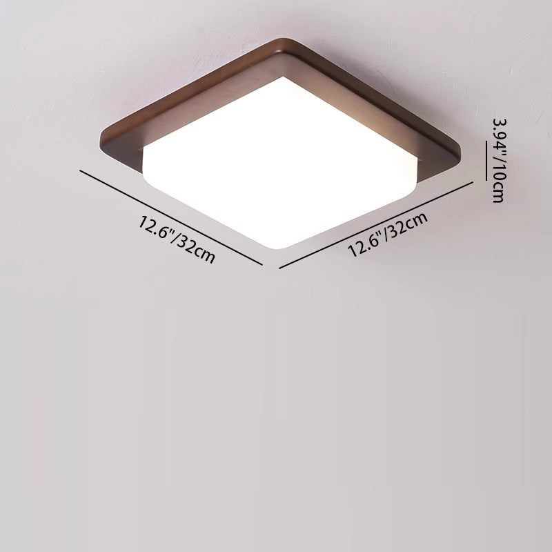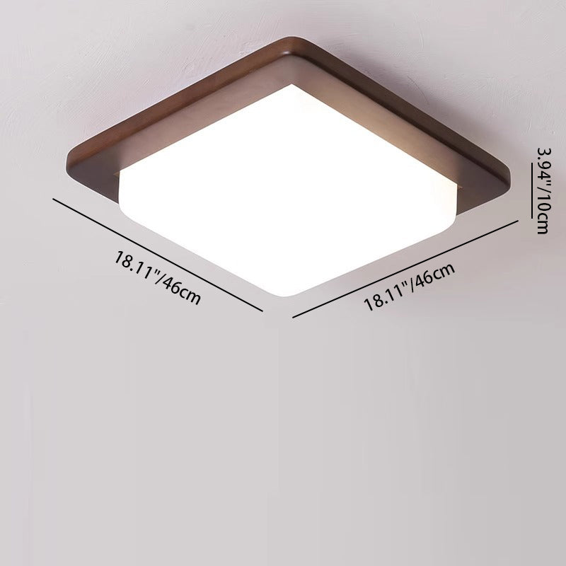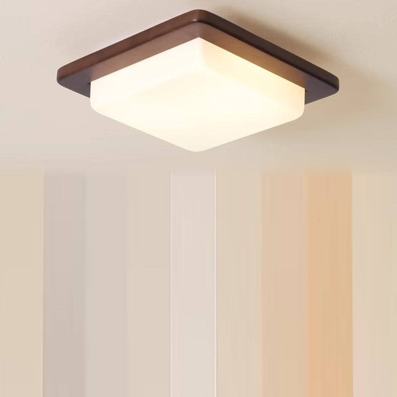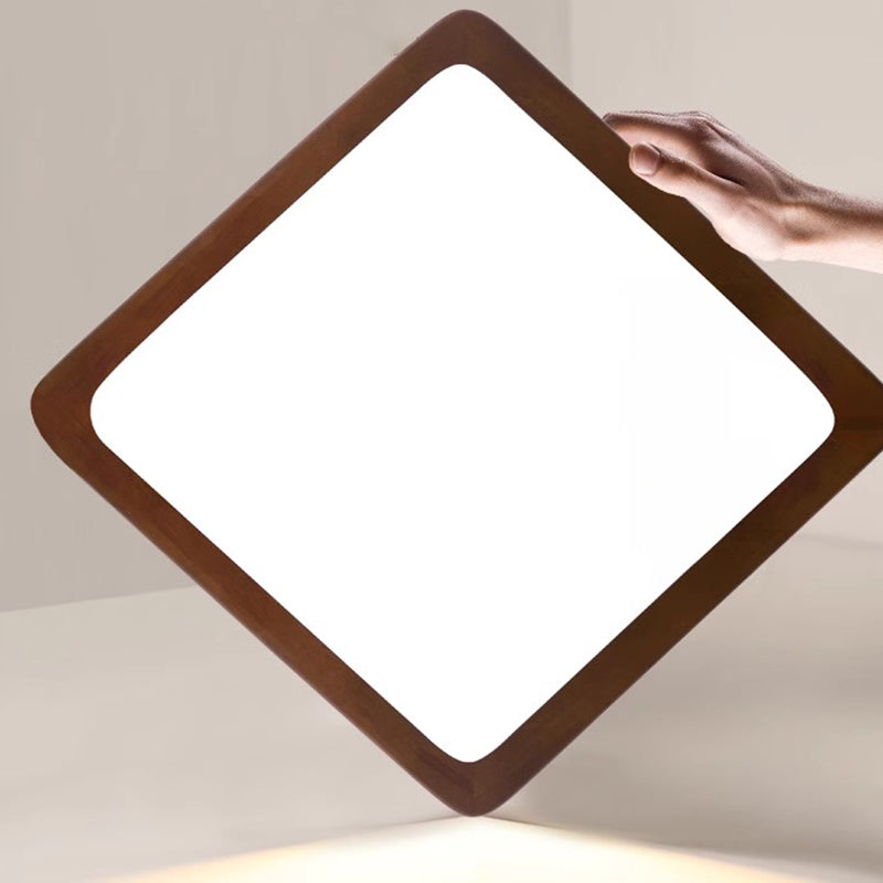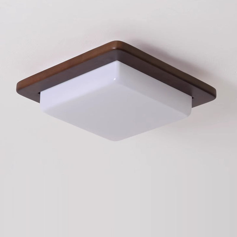 Traditional Chinese Square Solid Wood Acrylic Shade LED Flush Mount Ceiling Light For Bedroom