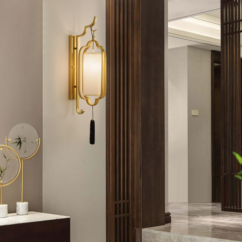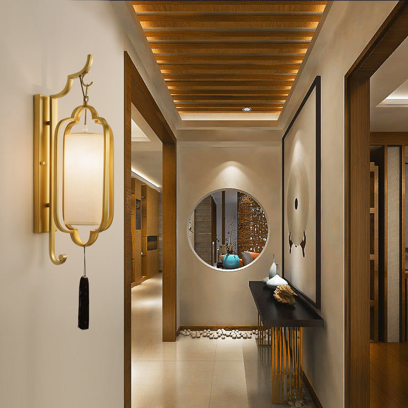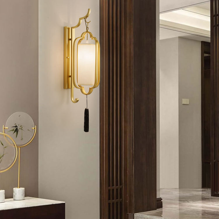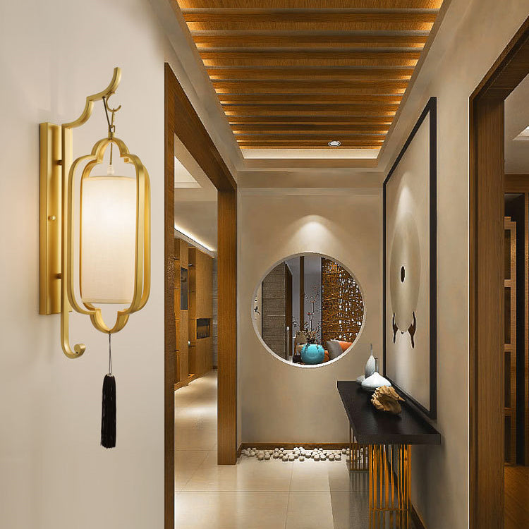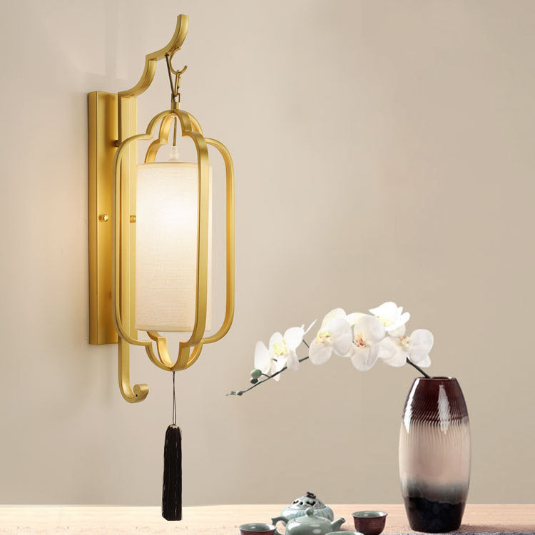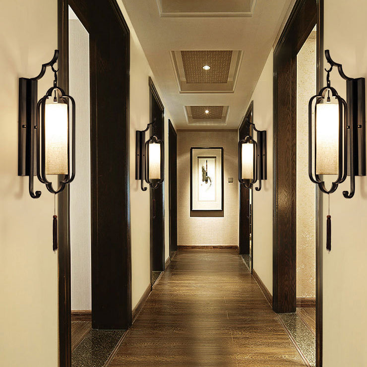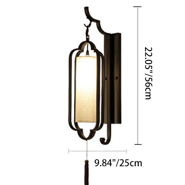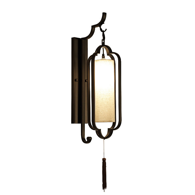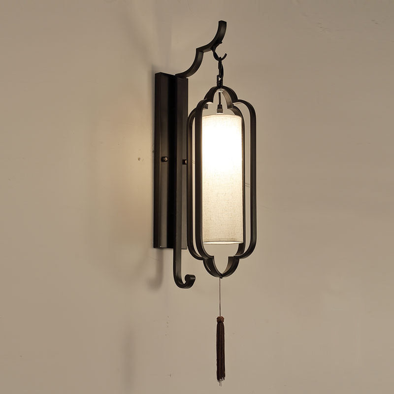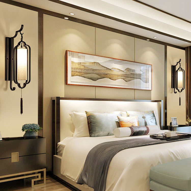 Traditional Chinese Strip Iron Fabric 1-Light Wall Sconce Lamp For Bedroom