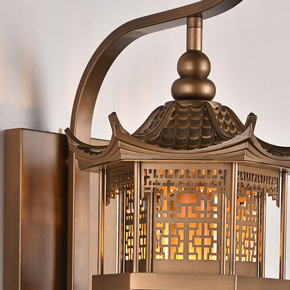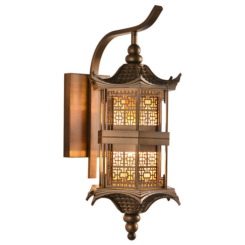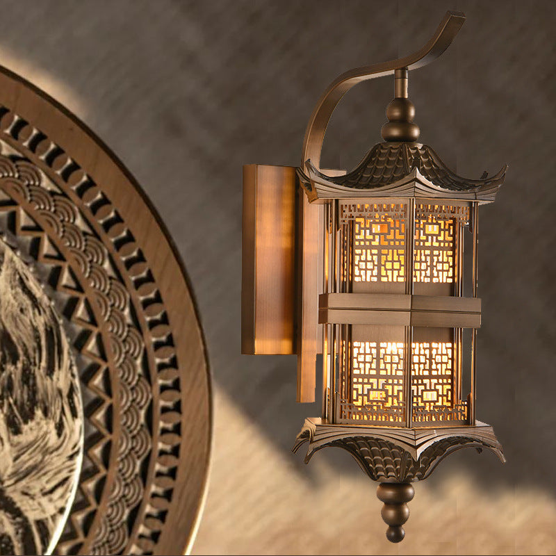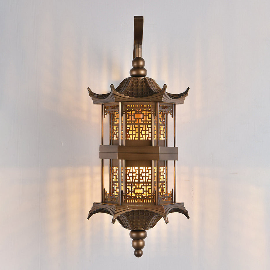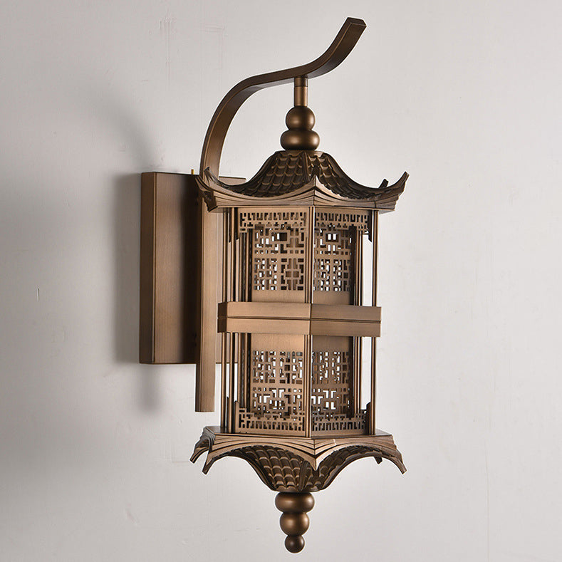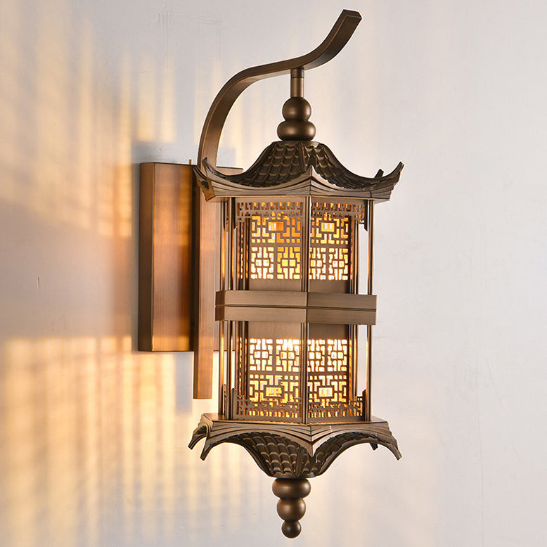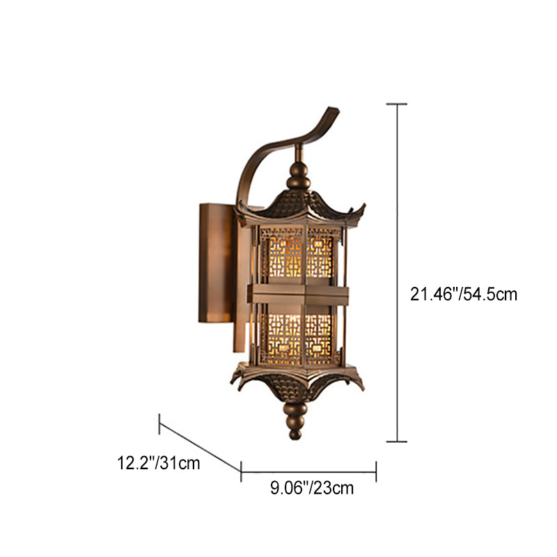 Traditional Chinese Tower Rectangular Metal 1-Light Wall Sconce Lamp For Outdoor Patio