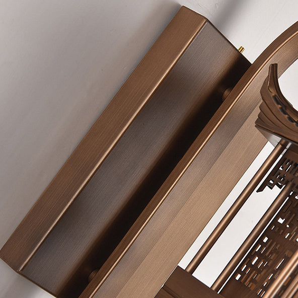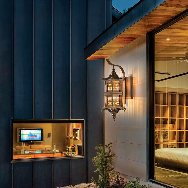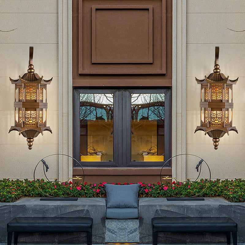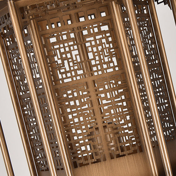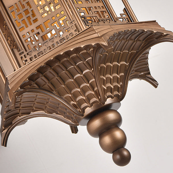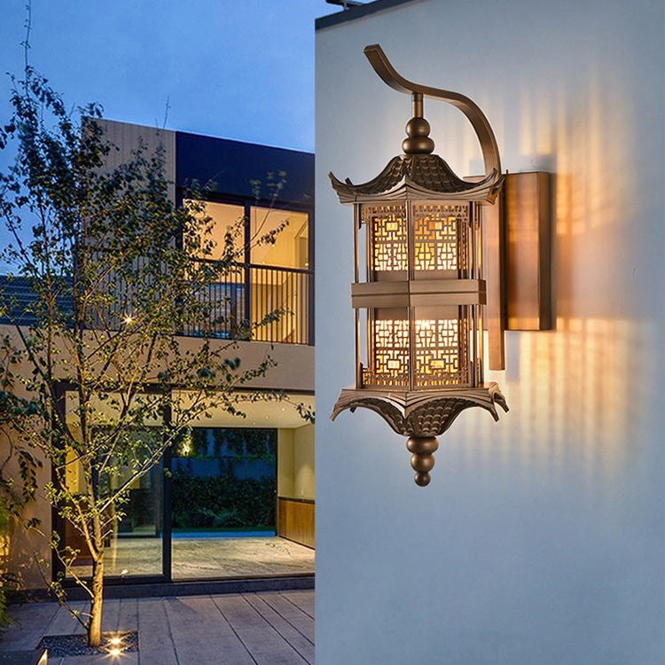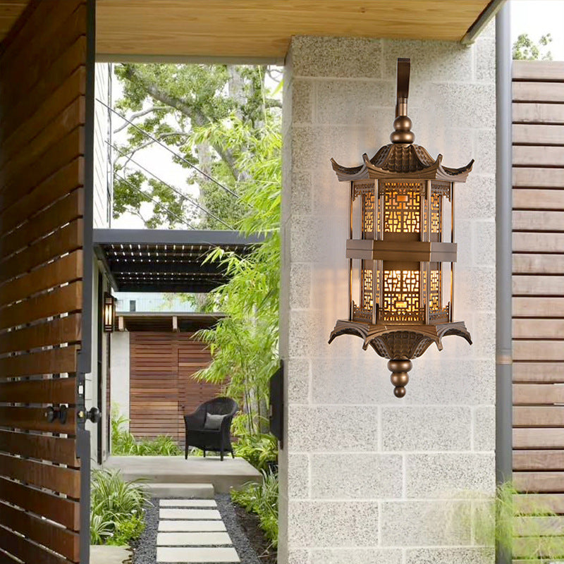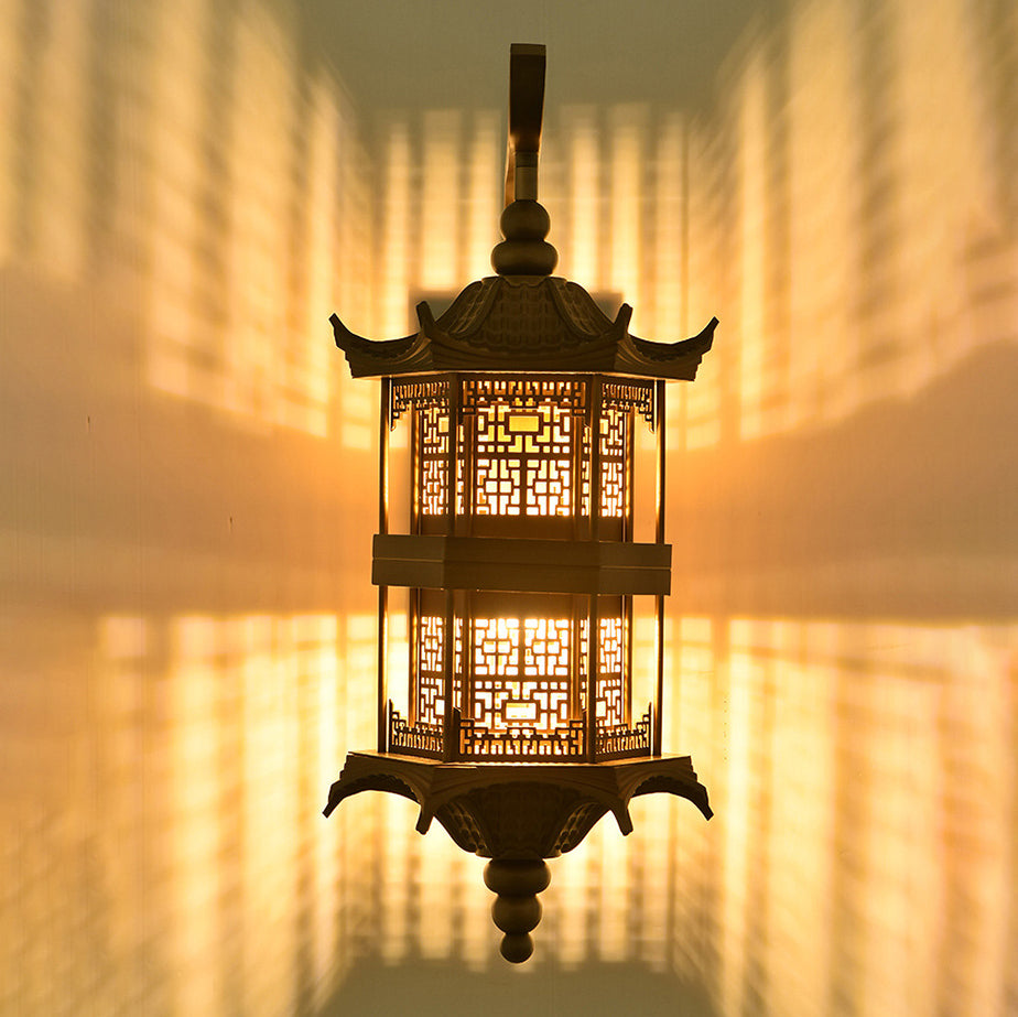 Traditional Chinese Tower Rectangular Metal 1-Light Wall Sconce Lamp For Outdoor Patio