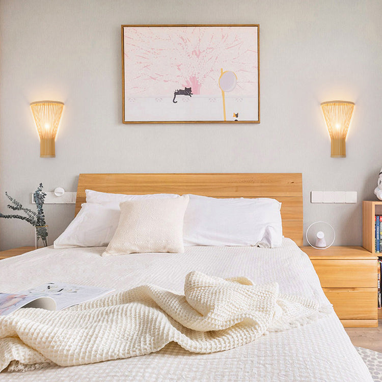 Traditional Chinese Trapezoid Bamboo 1-Light Wall Sconce Lamp For Bedroom
