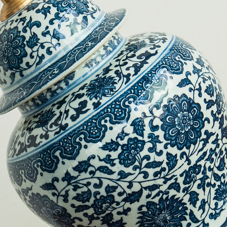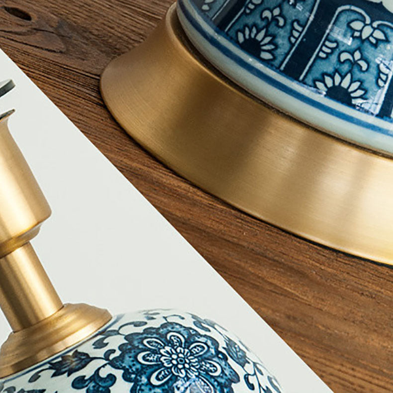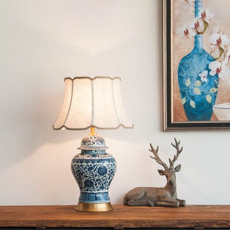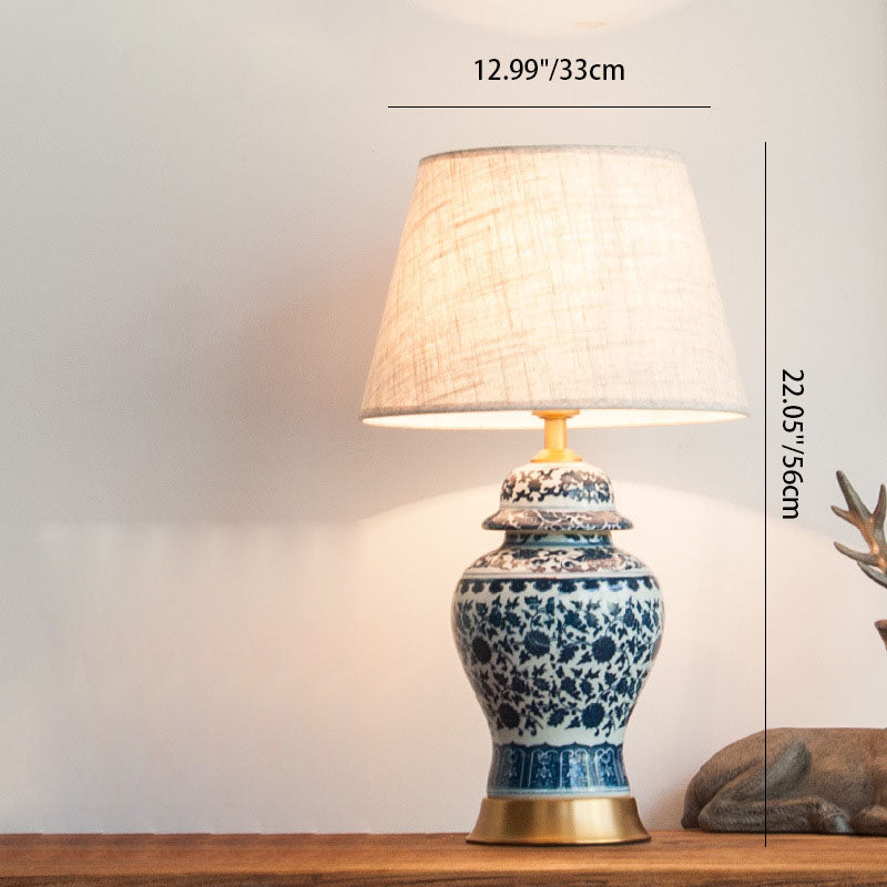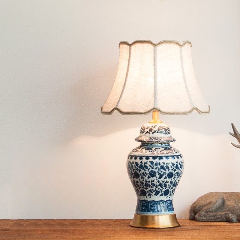 Traditional Chinese Vase Base Ceramic Fabric 1-Light Table Lamp For Bedroom