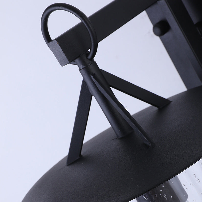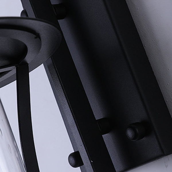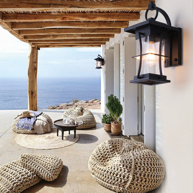 Traditional Chinese Waterproof Cylinder Rectangle Hardware Frame Glass Shade 1-Light Wall Sconce Lamp For Outdoor Patio