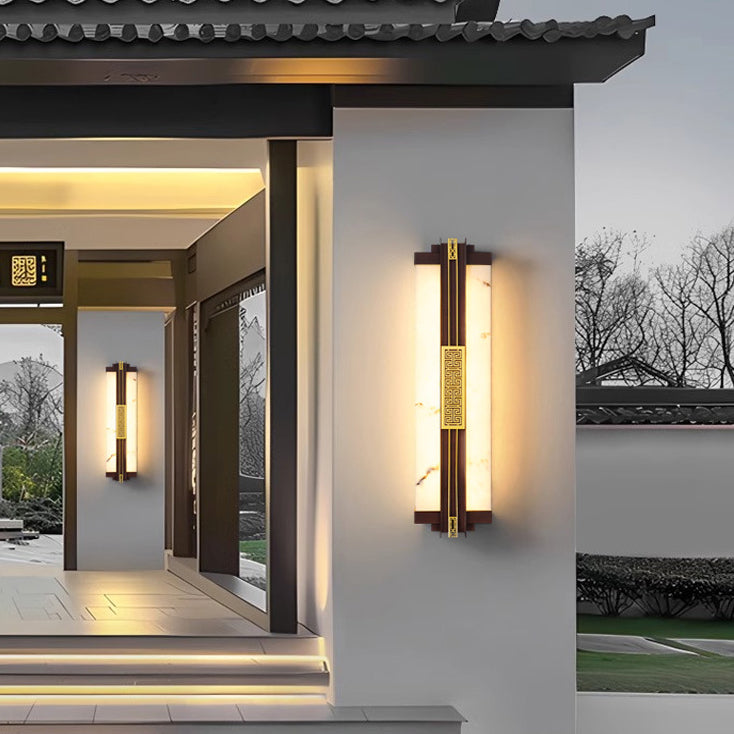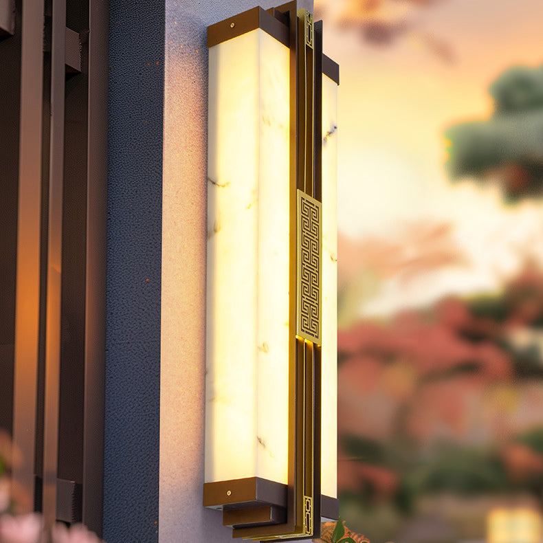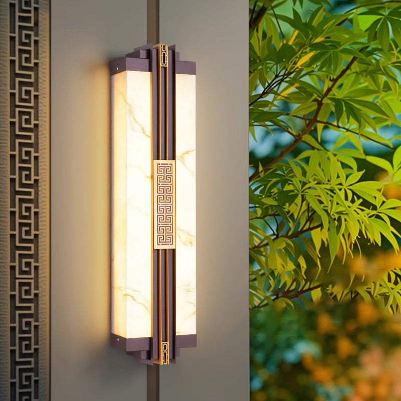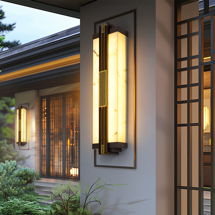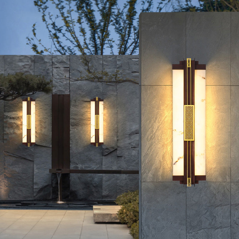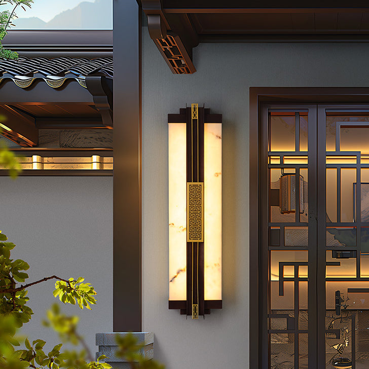 Traditional Chinese Waterproof Stainless Steel Resin Imitation Marble Pattern Linear LED Wall Sconce Lamp For Outdoor Patio