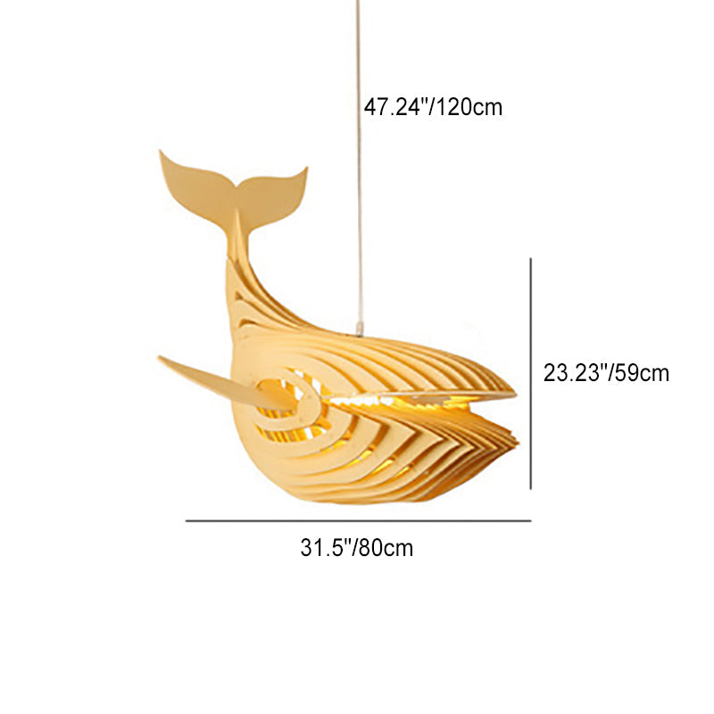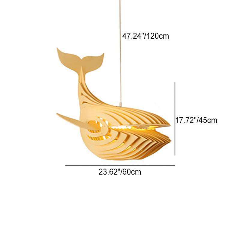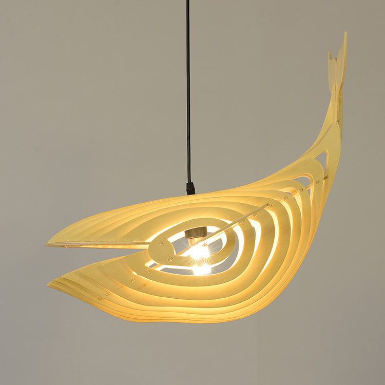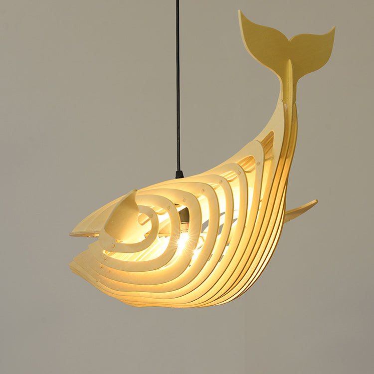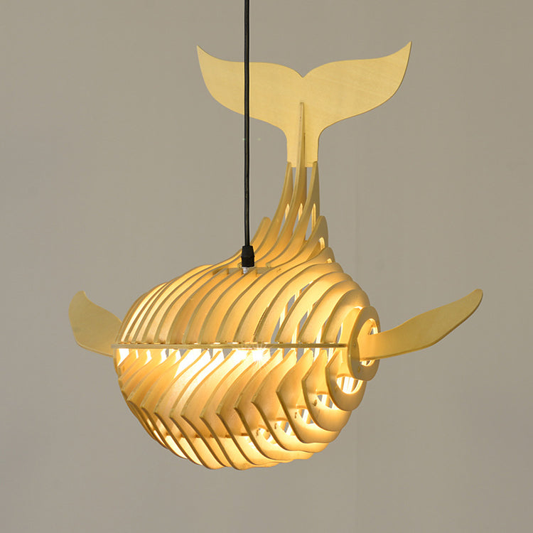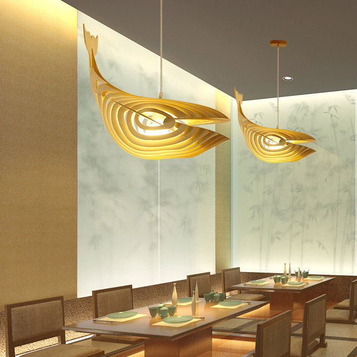 Traditional Chinese Whale Wood 1-Light Pendant Light For Dining Room