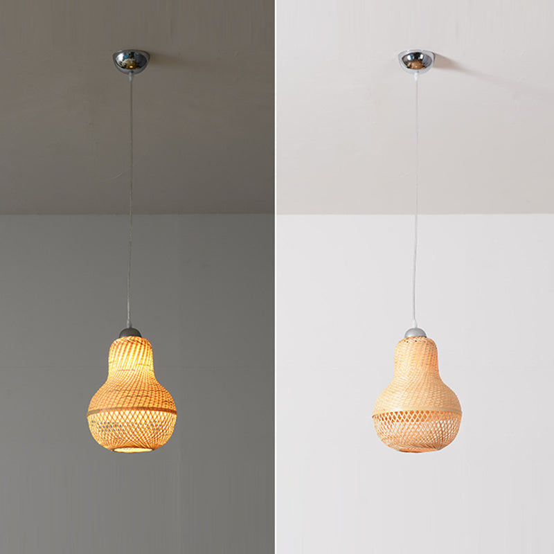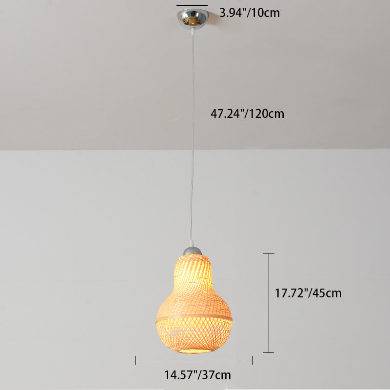 Traditional Chinese Winter Melon Flying Saucer Gourd Round Bamboo Iron 1-Light Pendant Light For Living Room