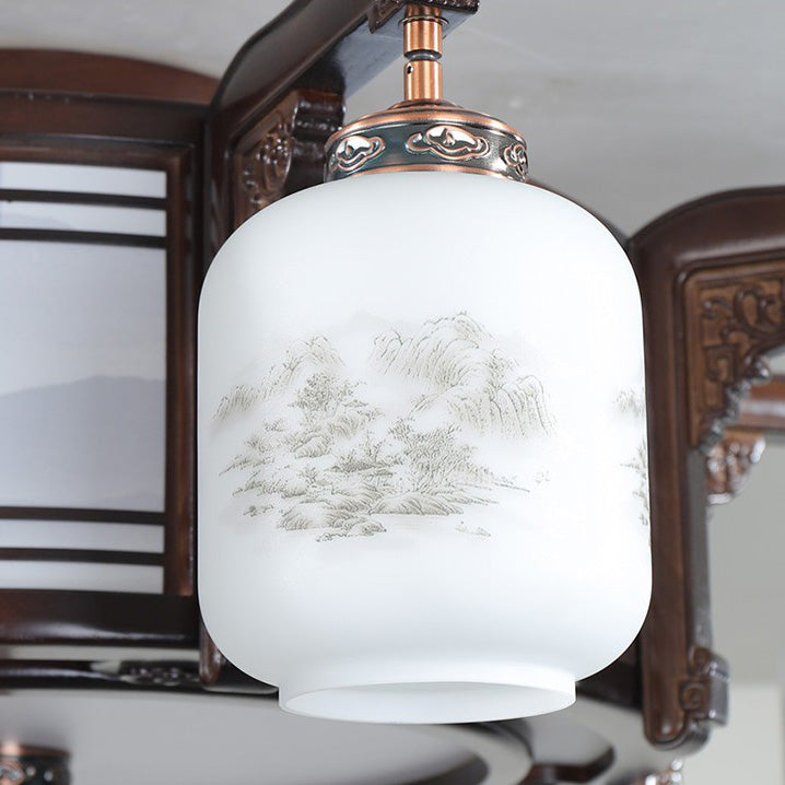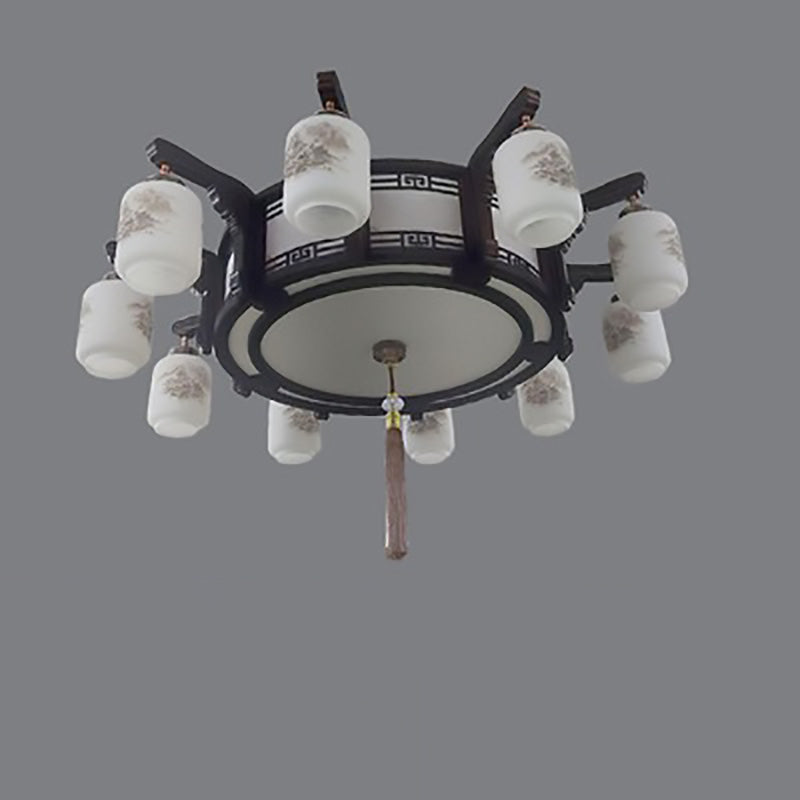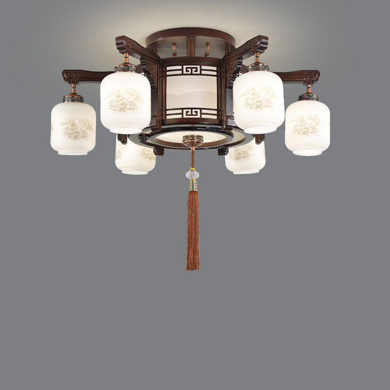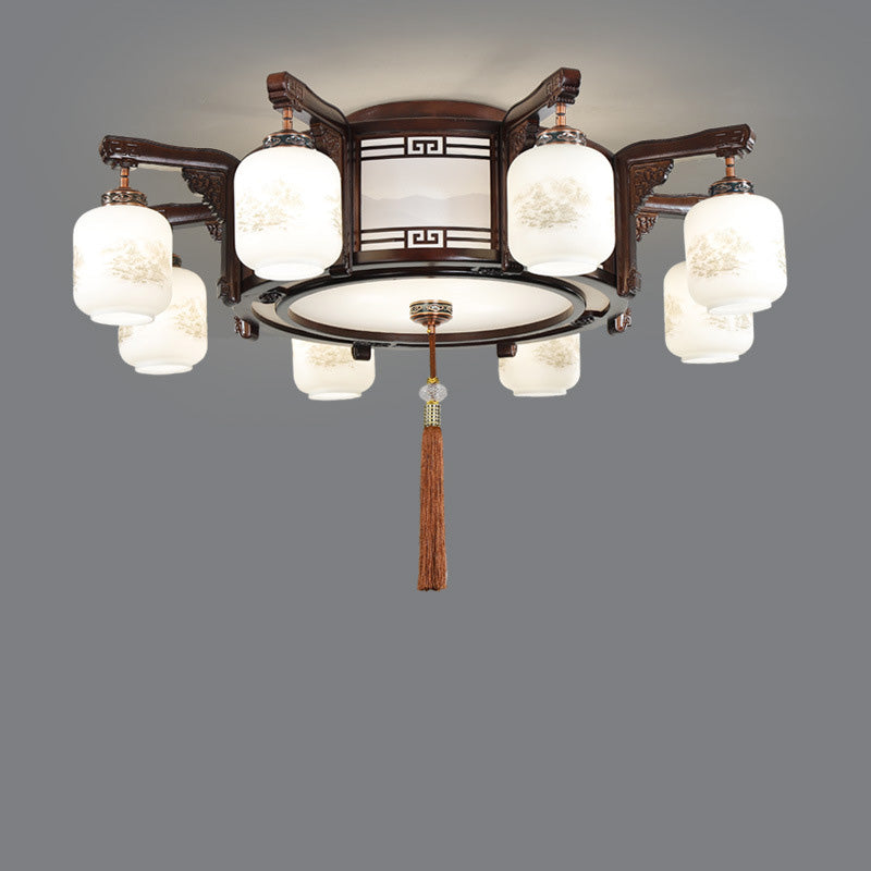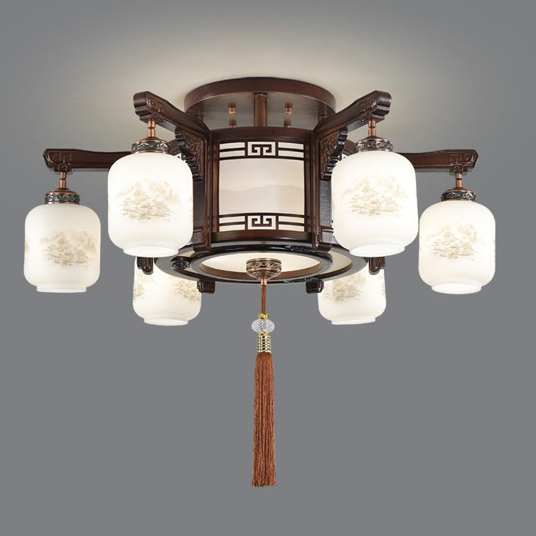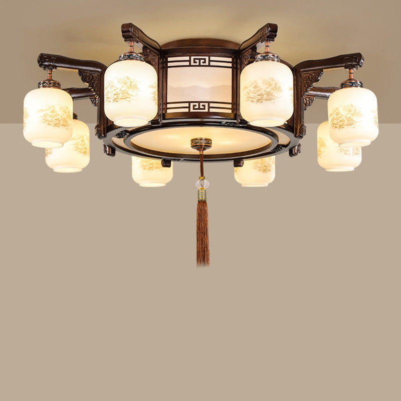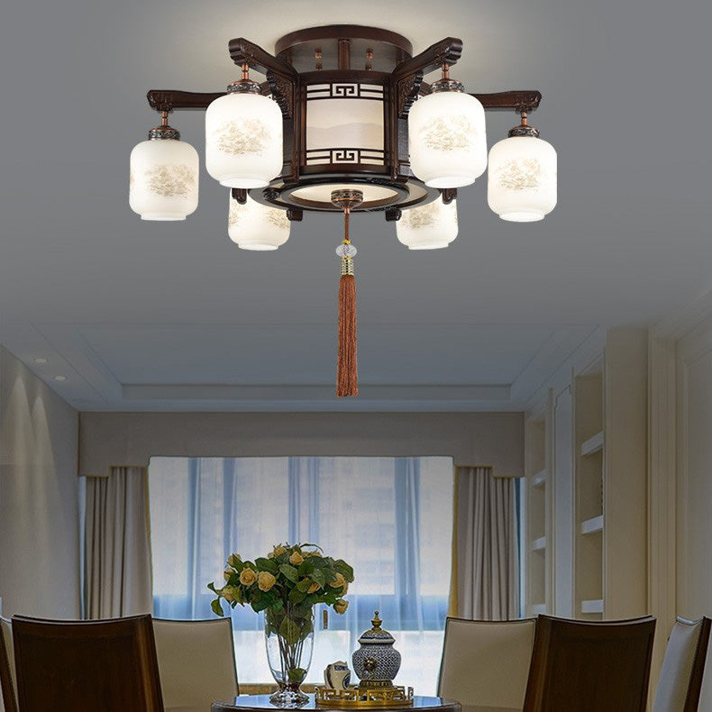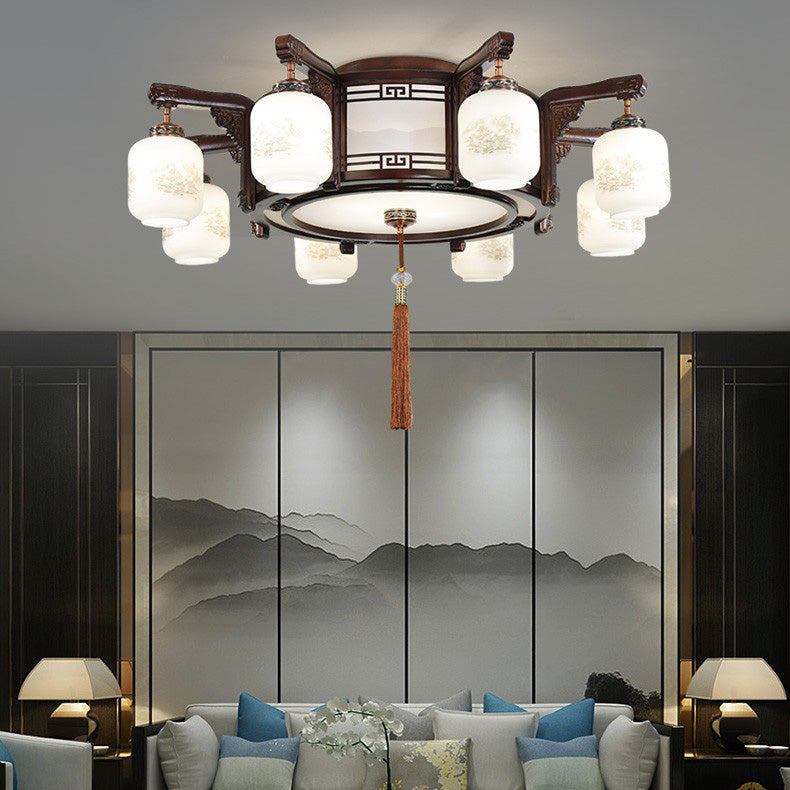 Traditional Chinese Wood Acrylic Glass Round Rectangular Lantern 6/8/10 Light Flush Mount Ceiling Light For Living Room