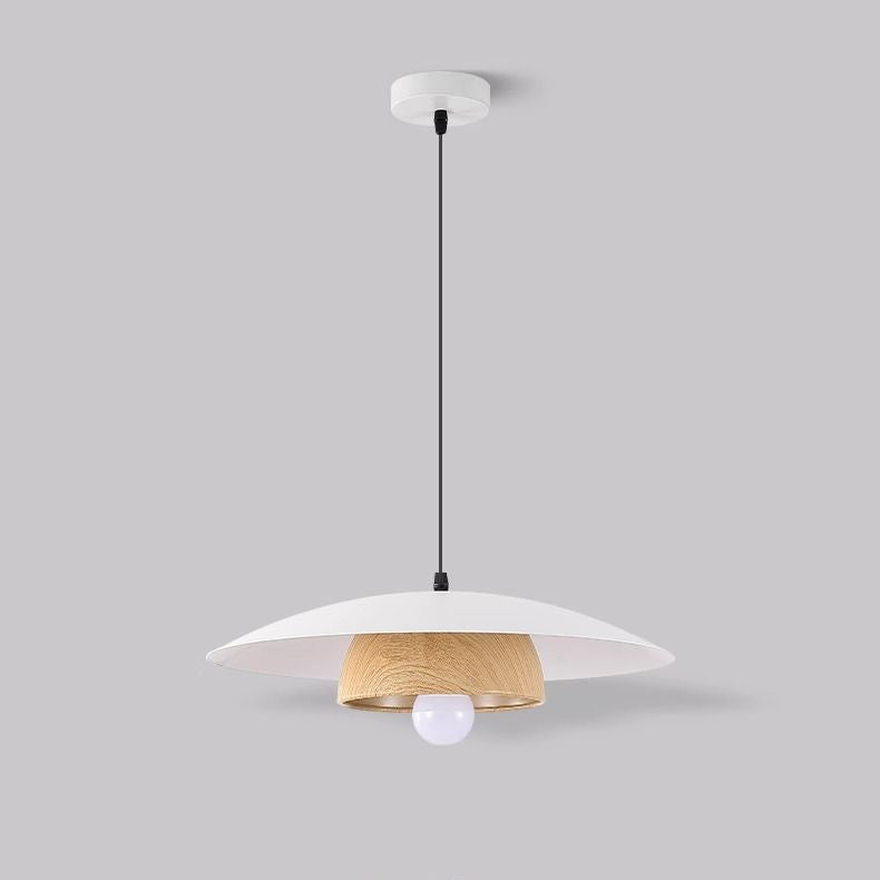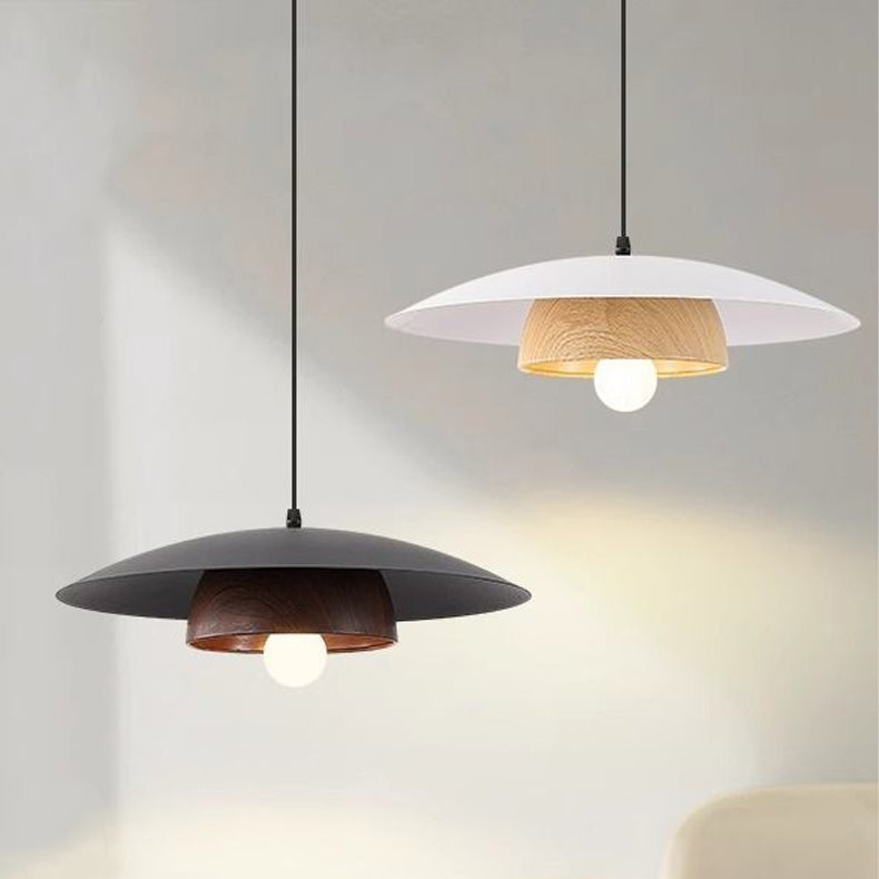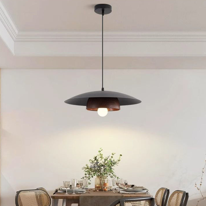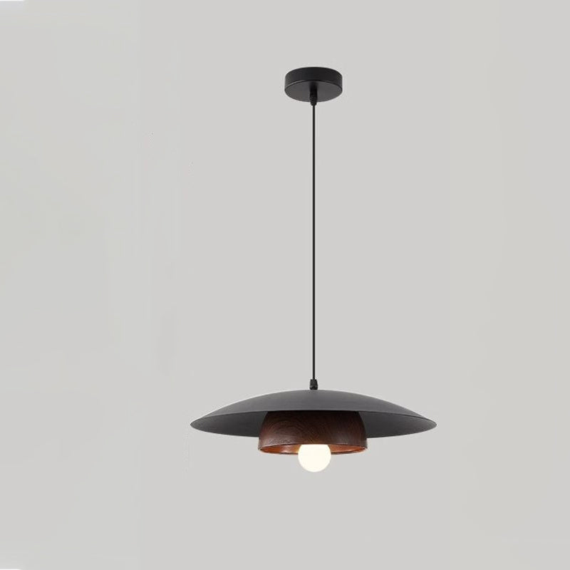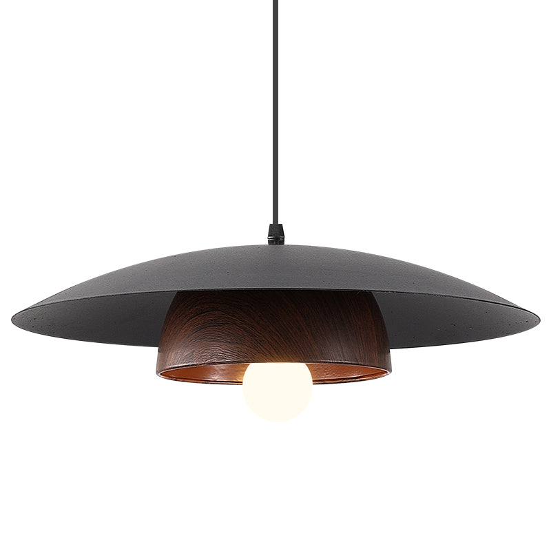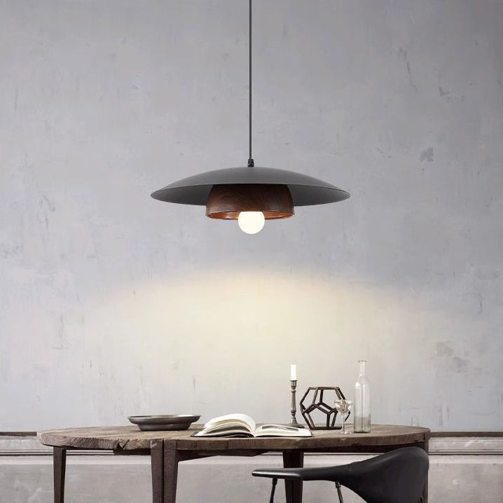 Traditional Chinese Wood Grain Round Iron Shade 1-Light Pendant Light For Living Room