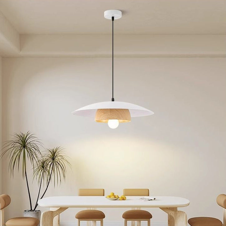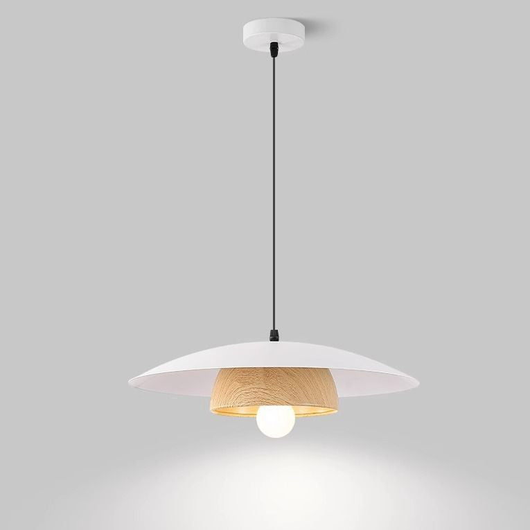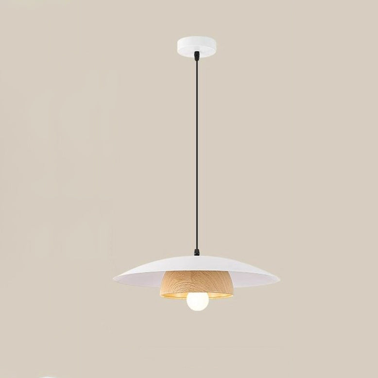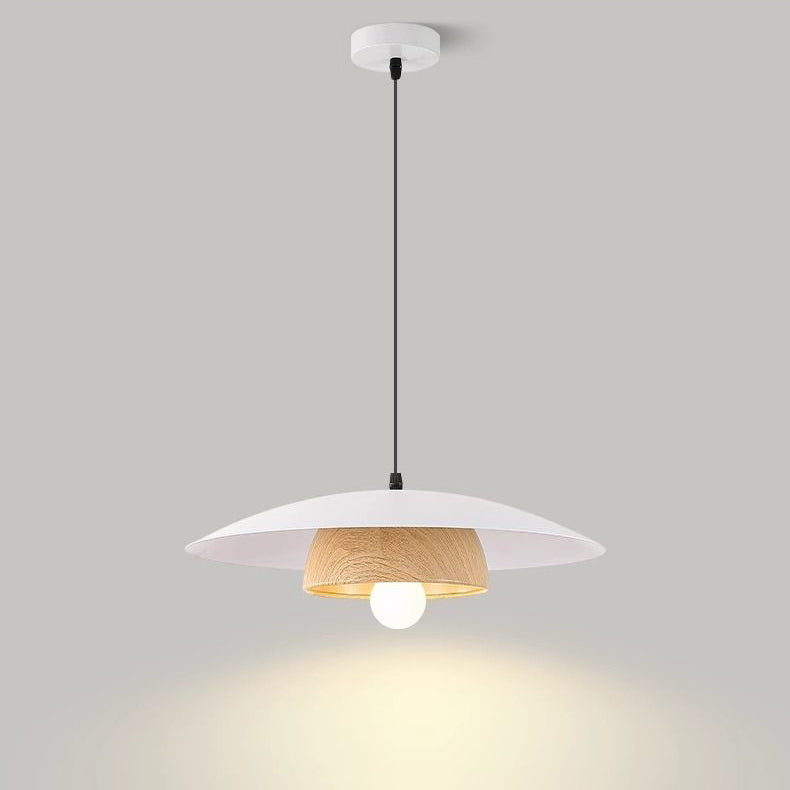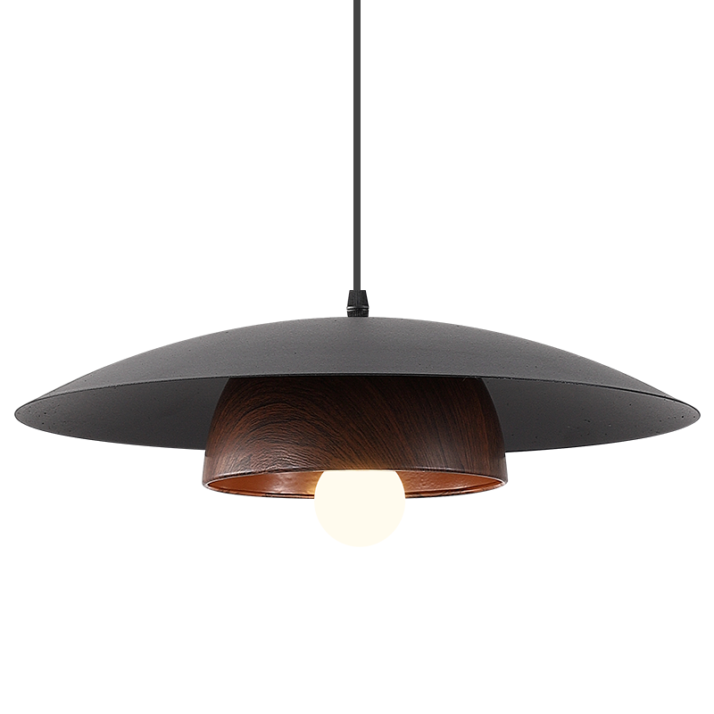 Traditional Chinese Wood Grain Round Iron Shade 1-Light Pendant Light For Living Room