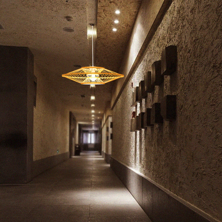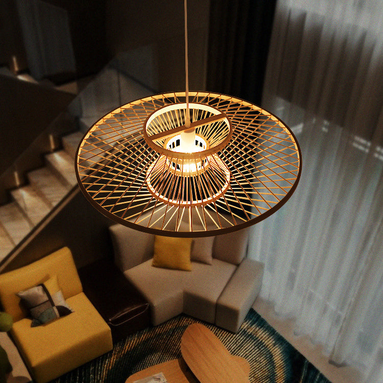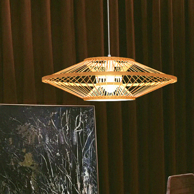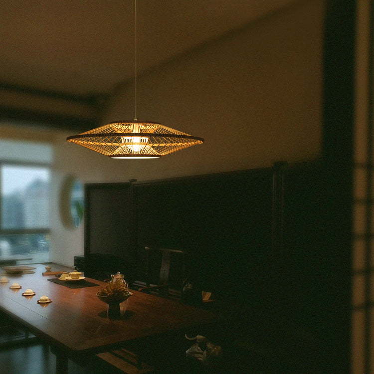 Traditional Chinese Zen Bamboo Weaving 1-Light Pendant Light For Dining Room