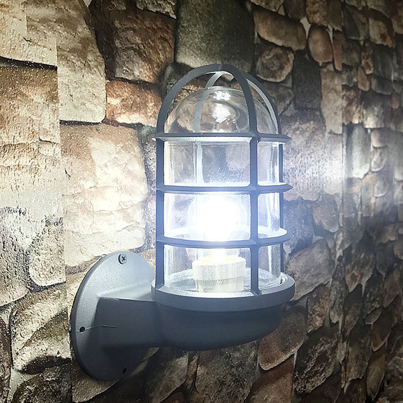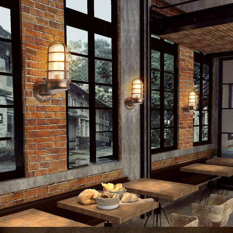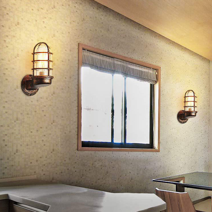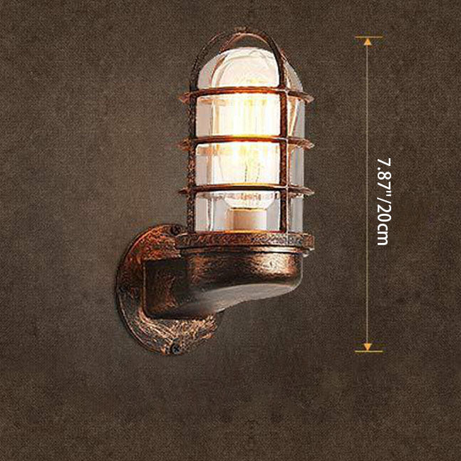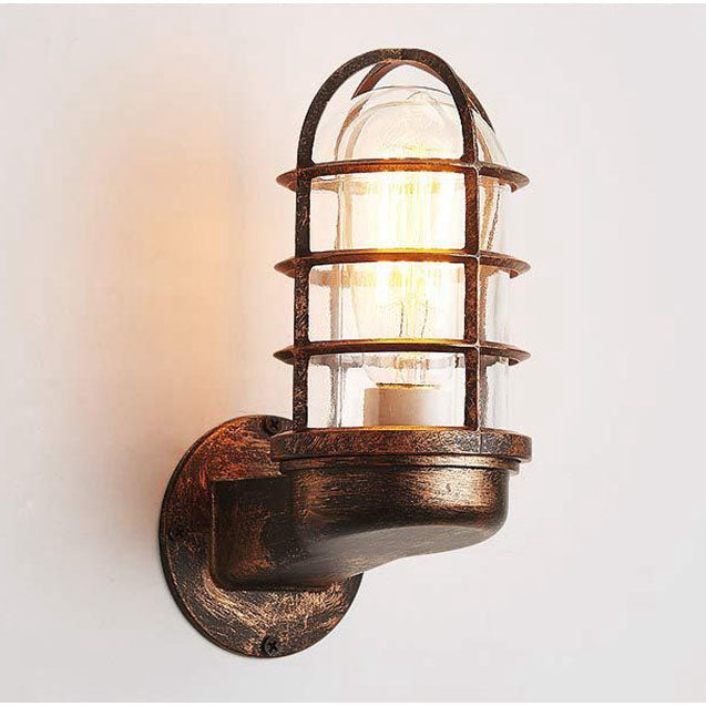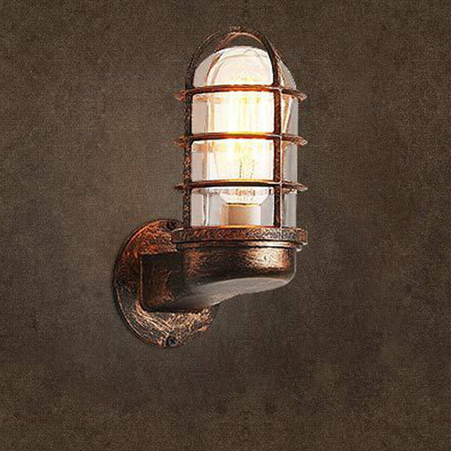 Traditional Colonial Cylinder Iron Glass 1-Light Wall Sconce Lamp For Hallway