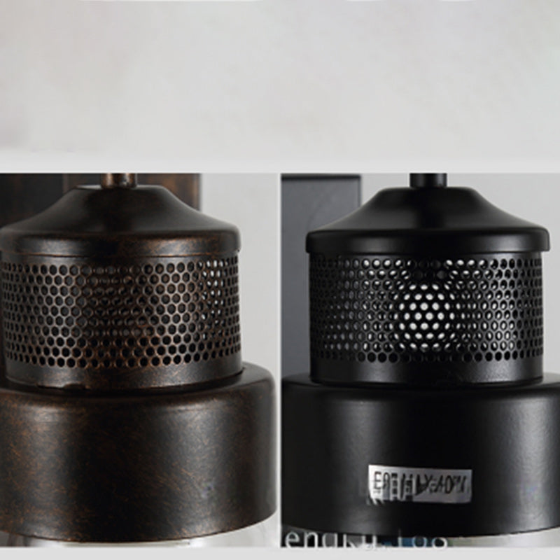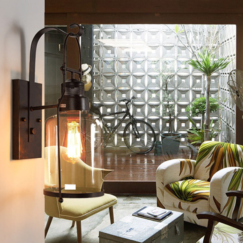 Traditional Colonial Kettle Shape Iron Glass 1-Light Wall Sconce Lamp For Living Room