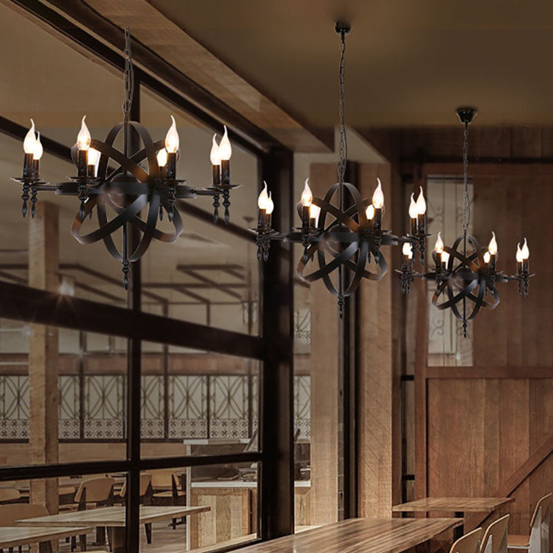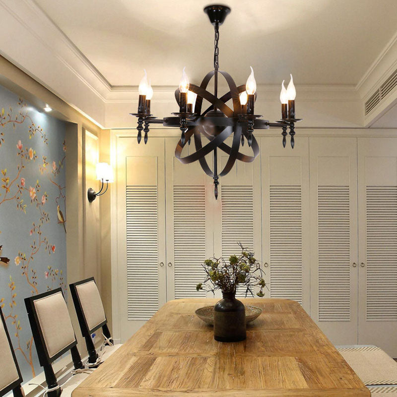 Traditional Colonial Round Ball Candelabra Iron 6/8 Light Chandelier For Living Room