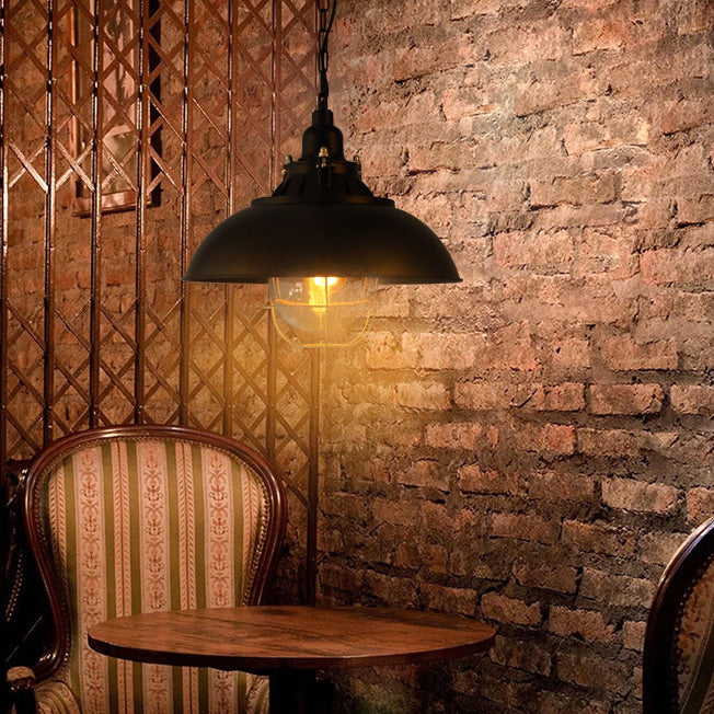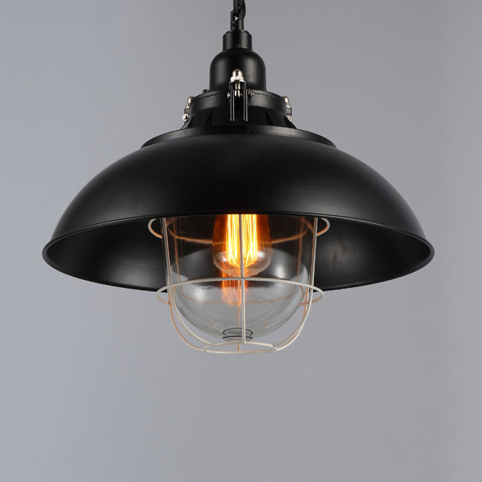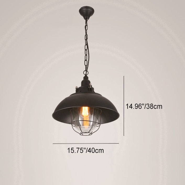 Traditional Colonial Round Pot Lid Iron 1-Light Pendant Light For Living Room