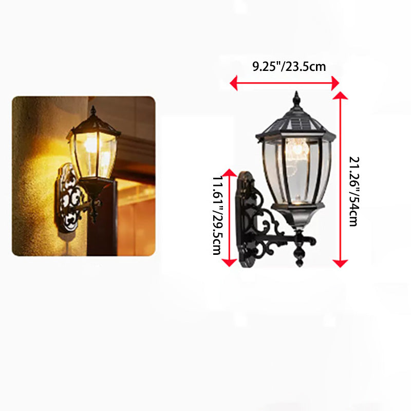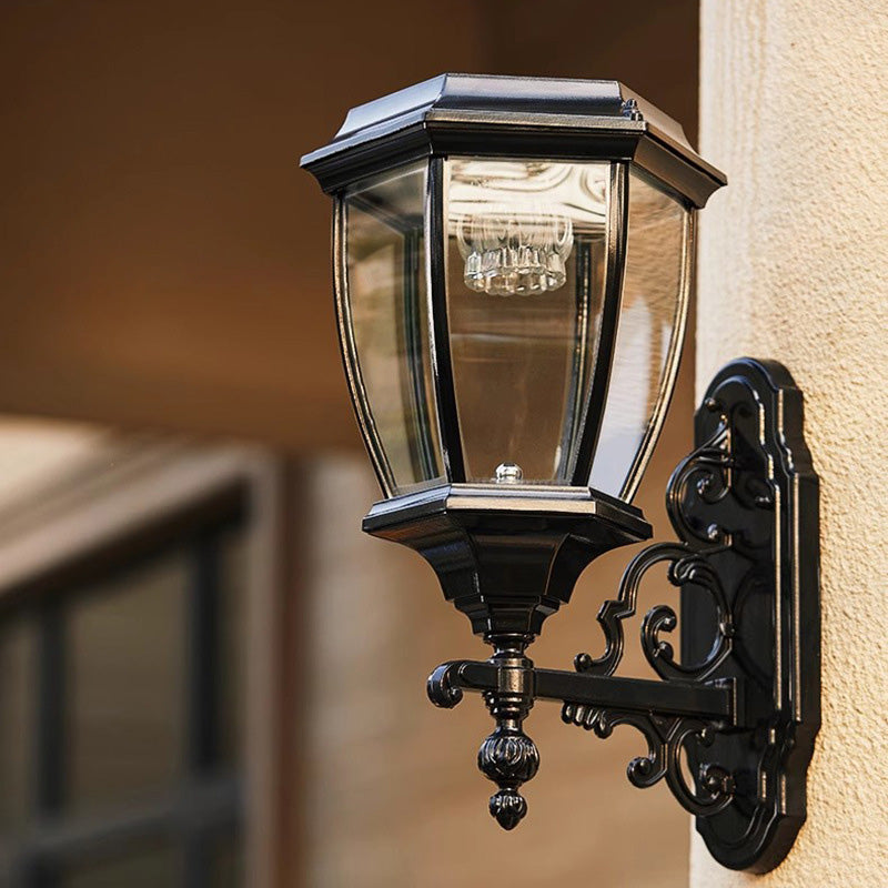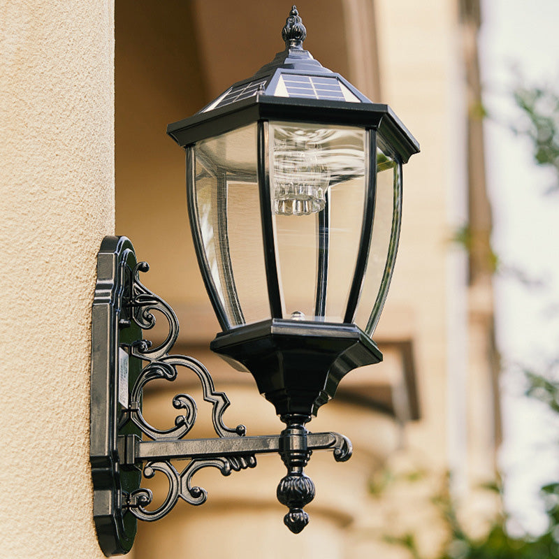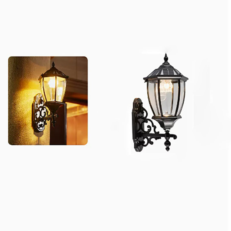Traditional European Aluminum Glass LED Solar Waterproof Wall Sconce Lamp For Outdoor Patio