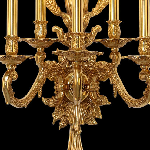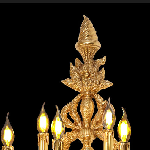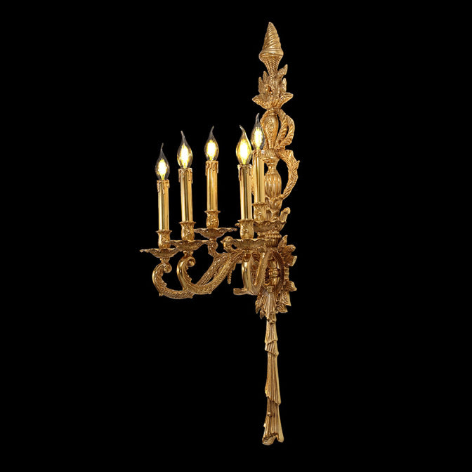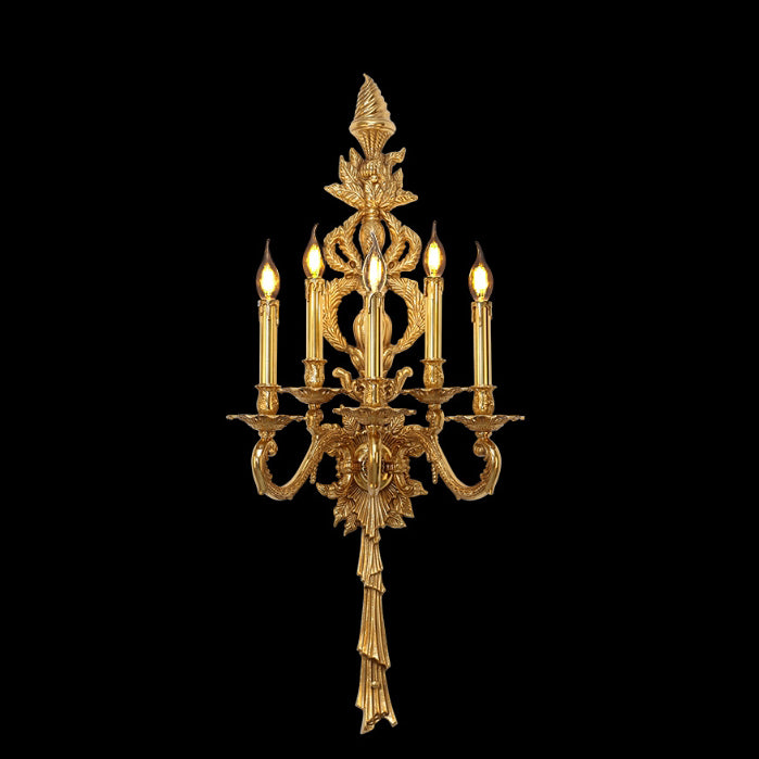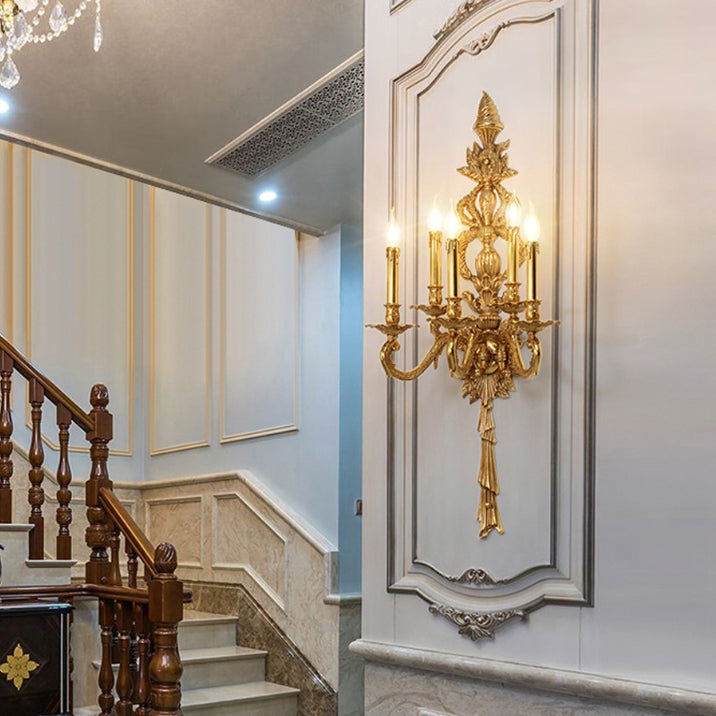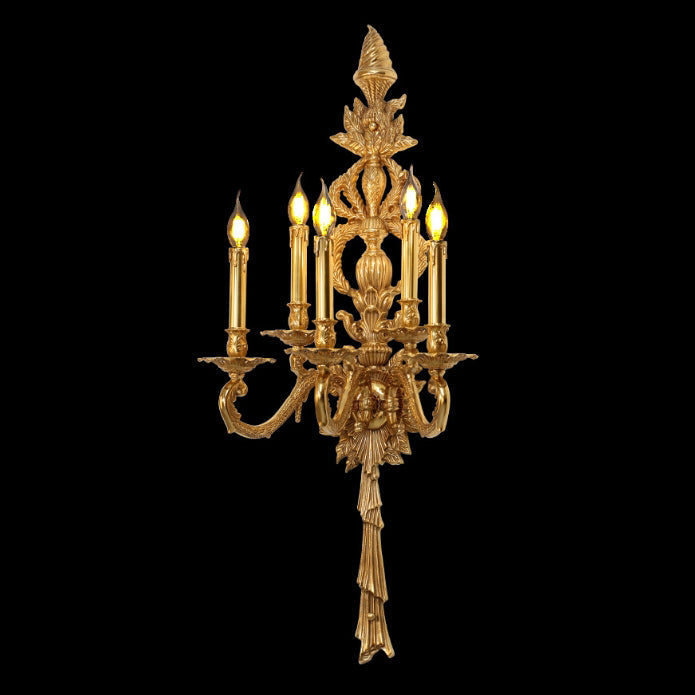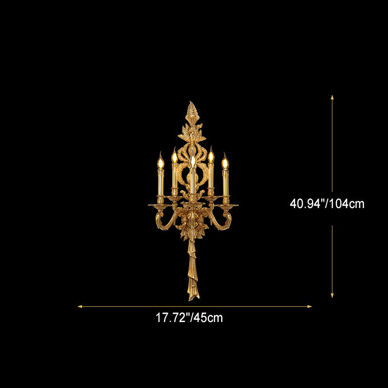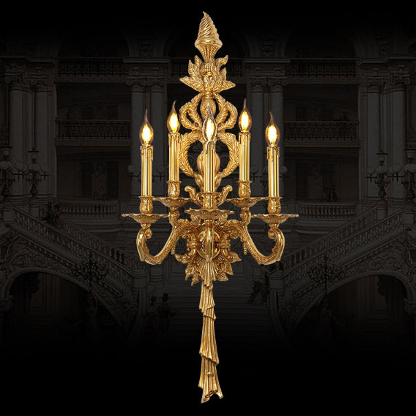 Traditional European Antique Brass Candlestick 5-Light Wall Sconce Lamp For Living Room
