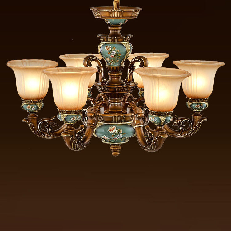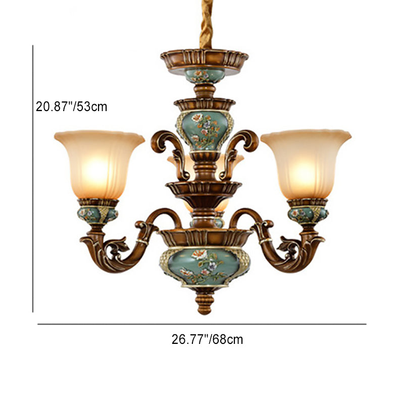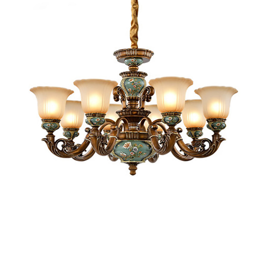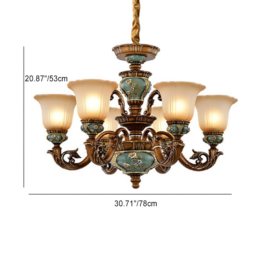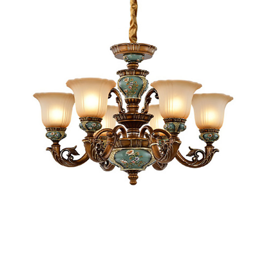 Traditional European Flower Pattern Petal Shape Resin Iron Glass 3/6/8/10 - Light Chandeliers For Living Room