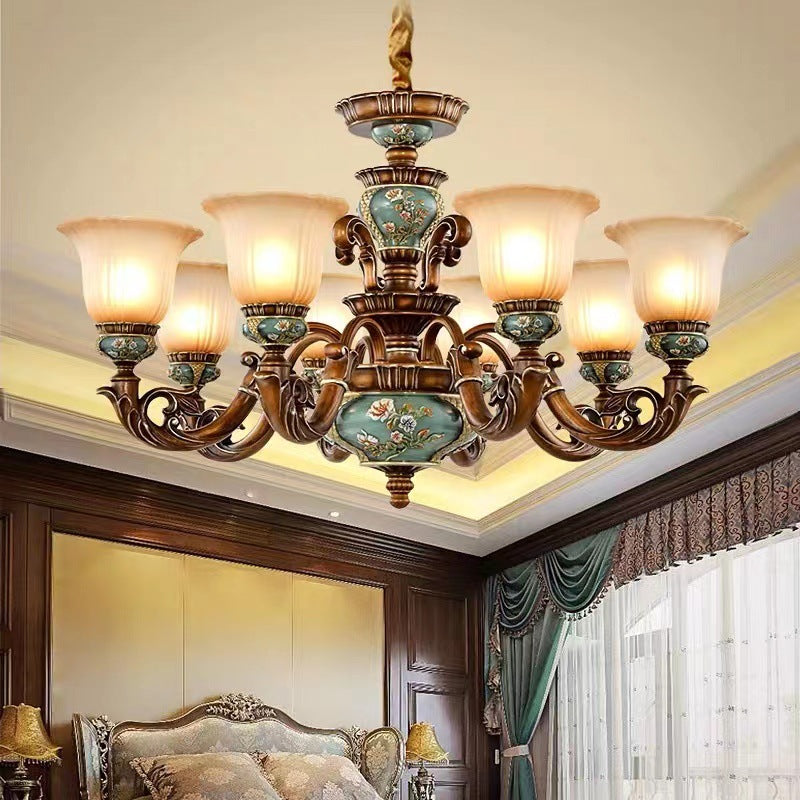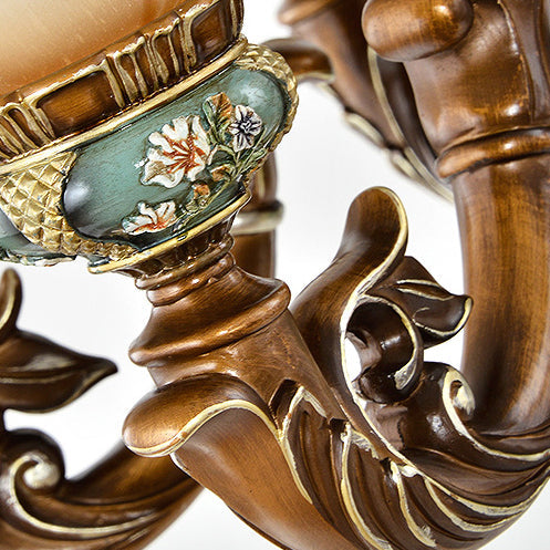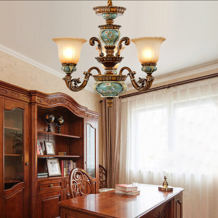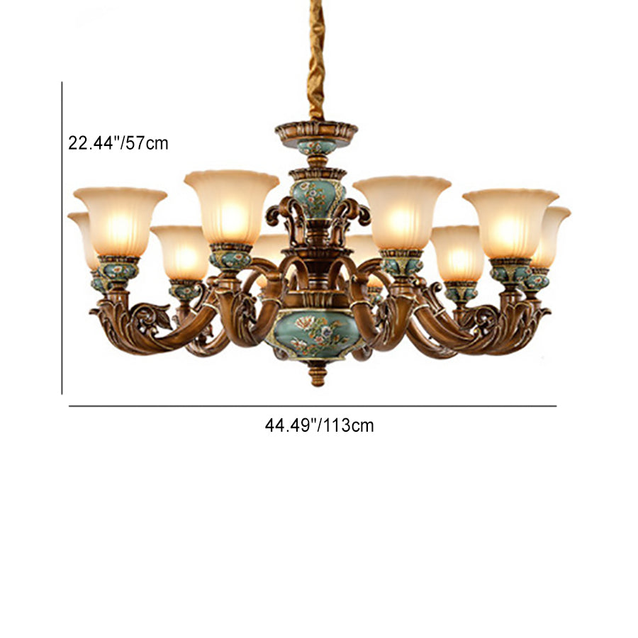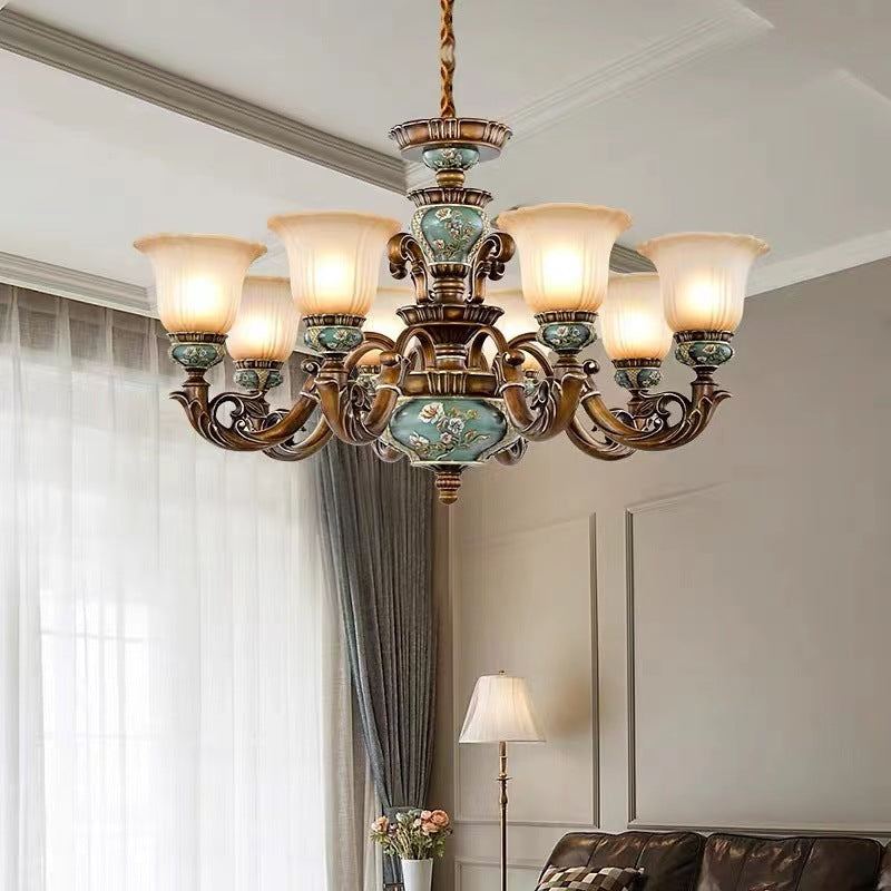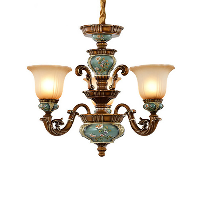 Traditional European Flower Pattern Petal Shape Resin Iron Glass 3/6/8/10 - Light Chandeliers For Living Room