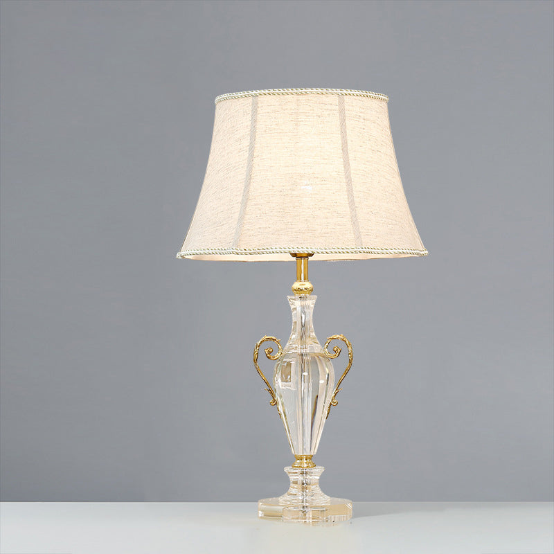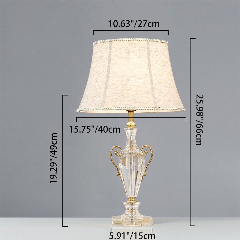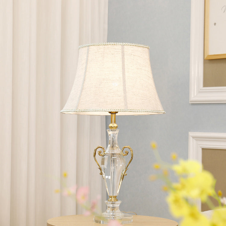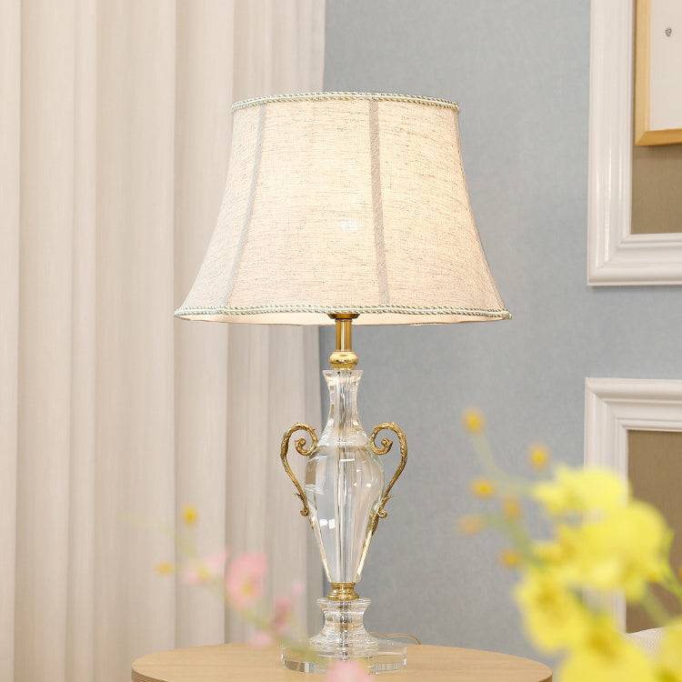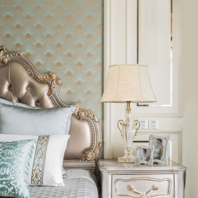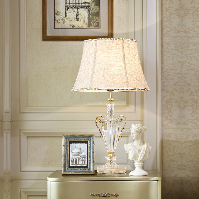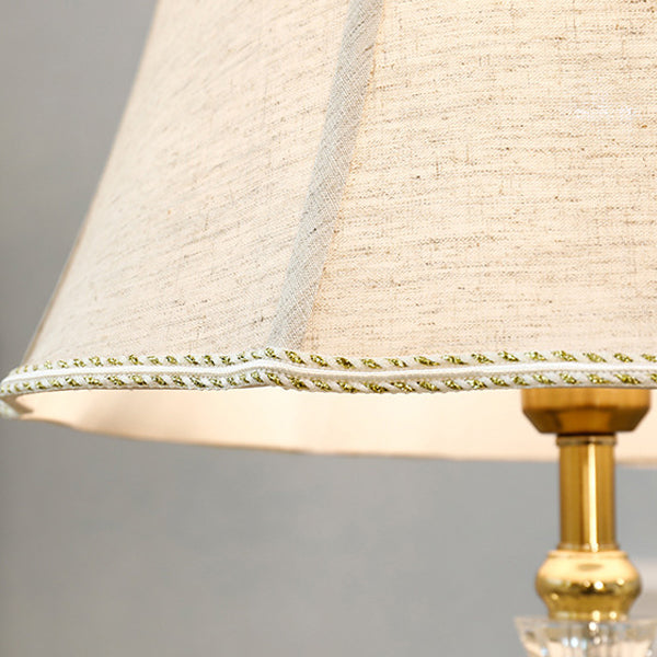 Traditional European Frustum Cone Crystal Copper Fabric 1-Light Table Lamp For Bedroom