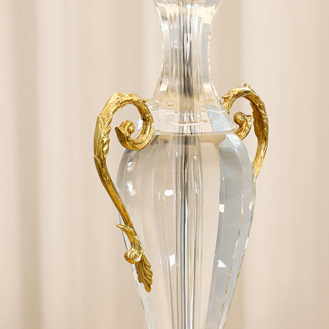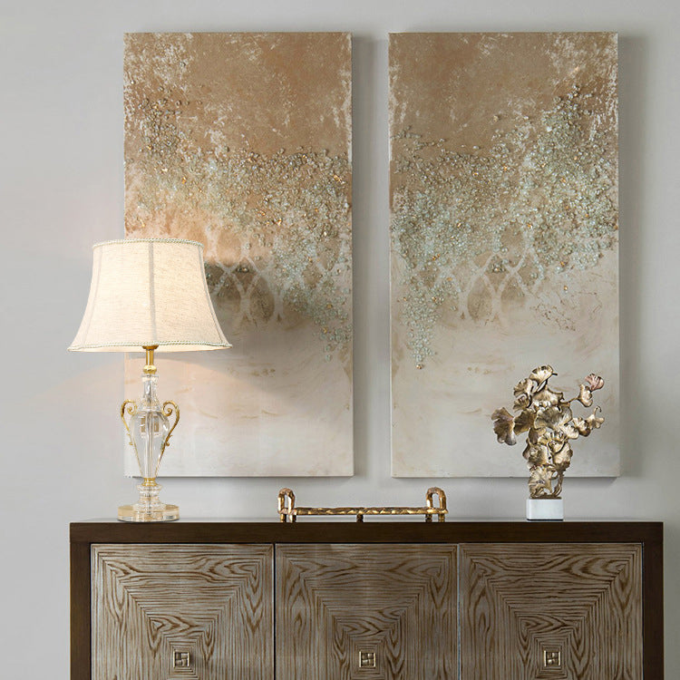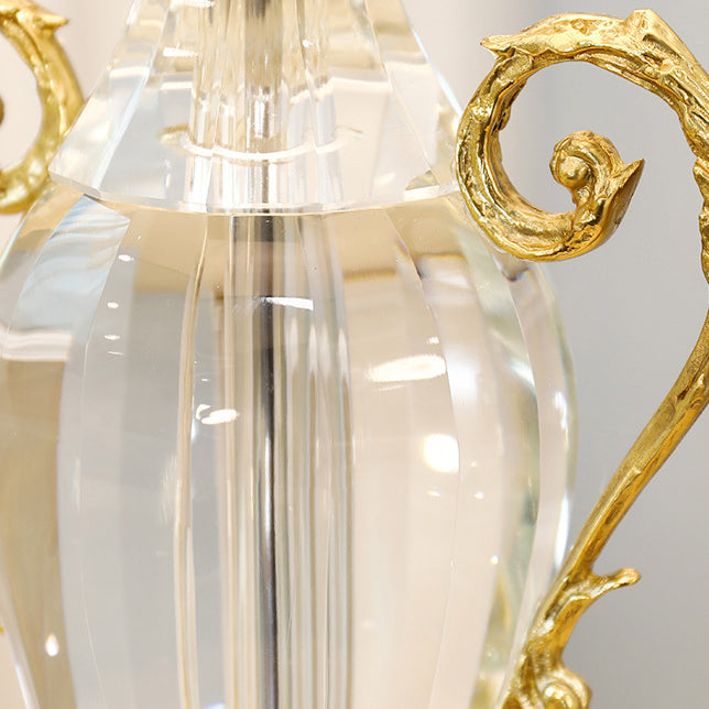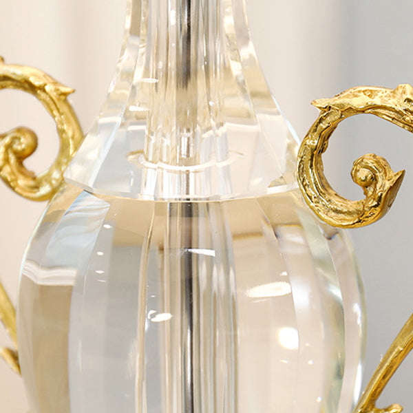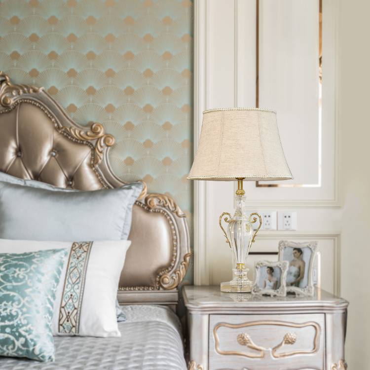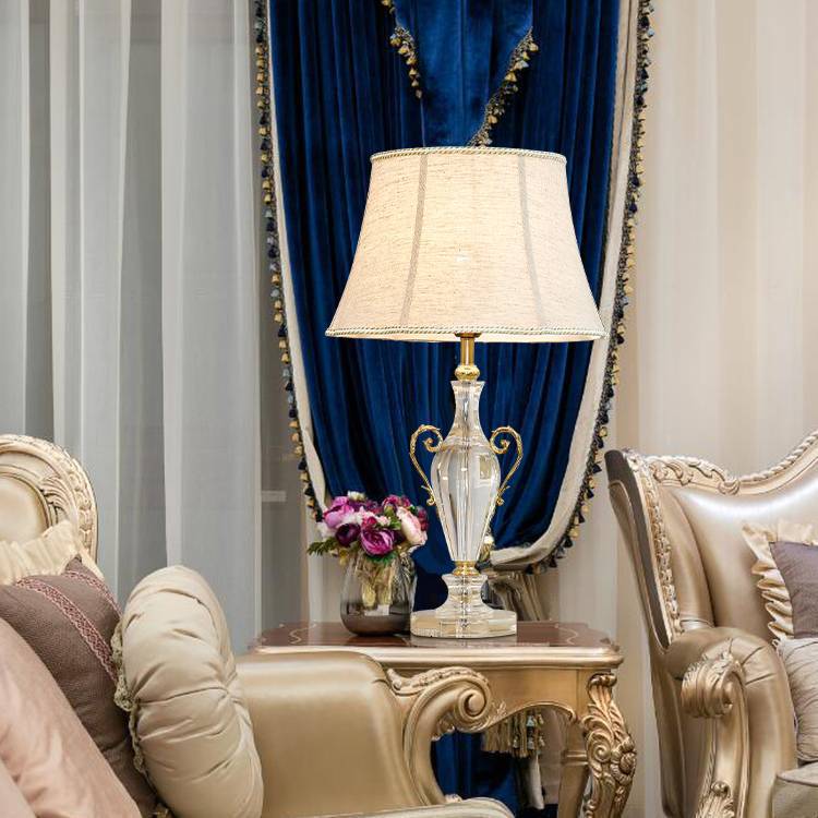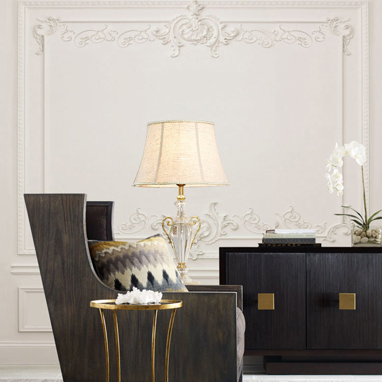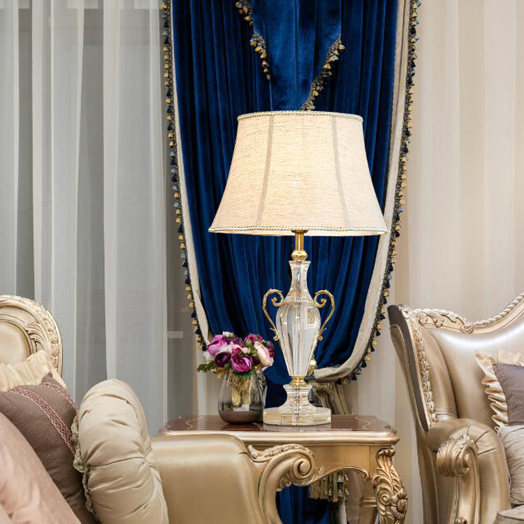 Traditional European Frustum Cone Crystal Copper Fabric 1-Light Table Lamp For Bedroom