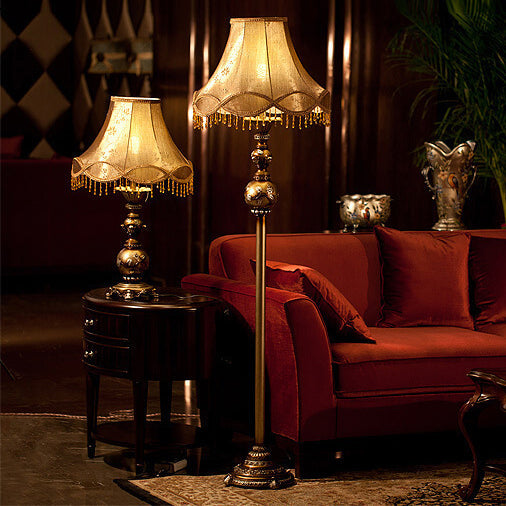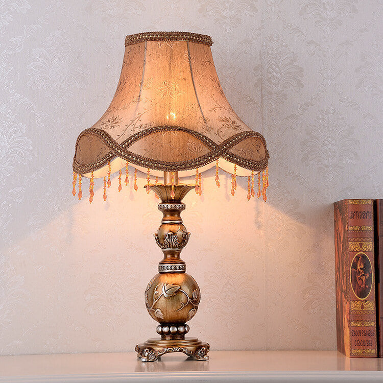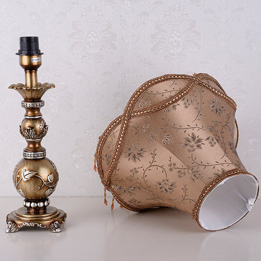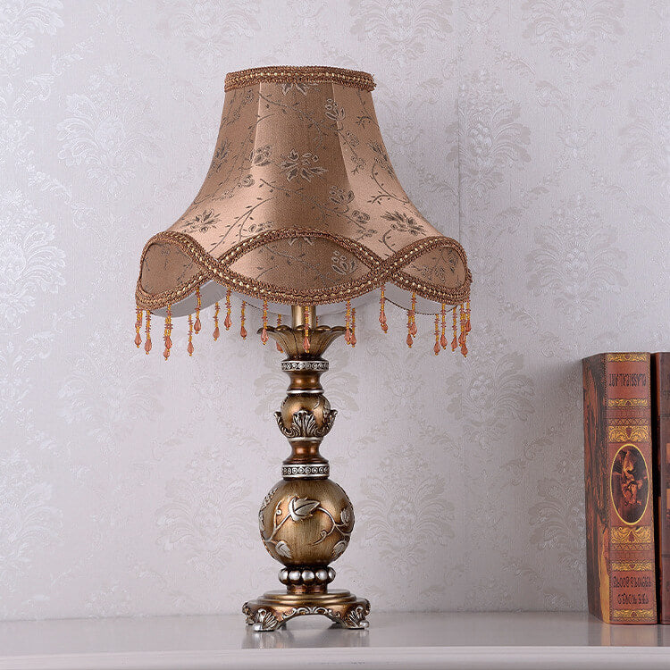 Traditional European Hexagonal Resin Fabric 1-Light Table Lamp For Bedroom