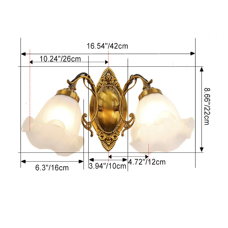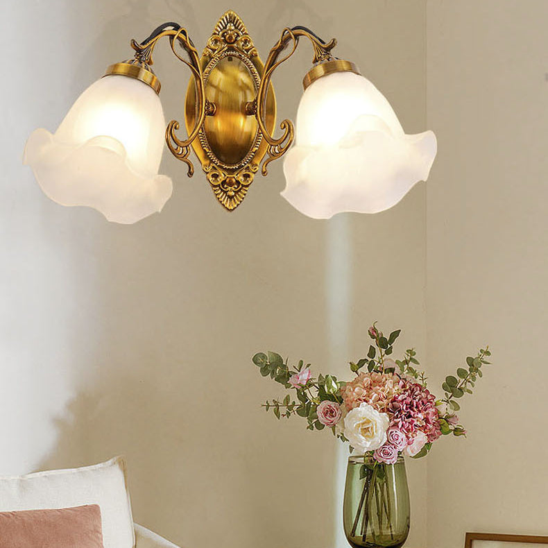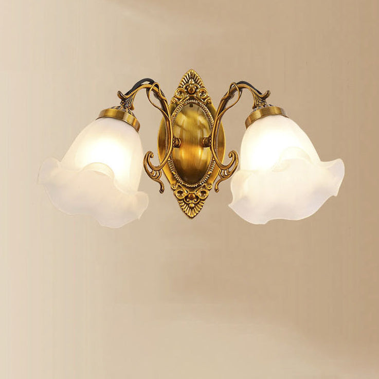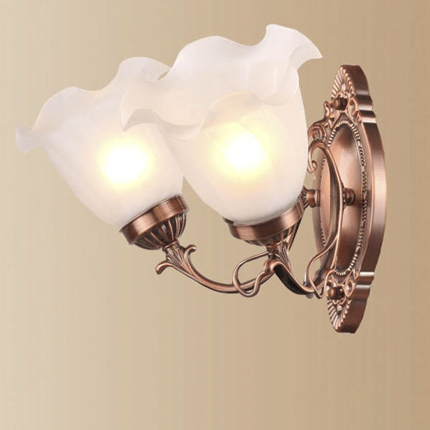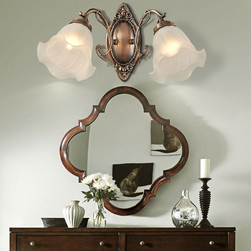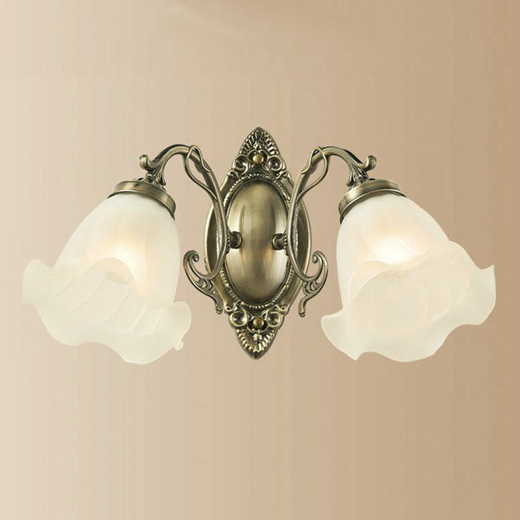 Traditional European Iron Glass Flower 2-Light Wall Sconce Lamp For Living Room