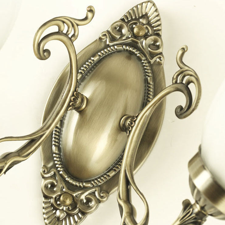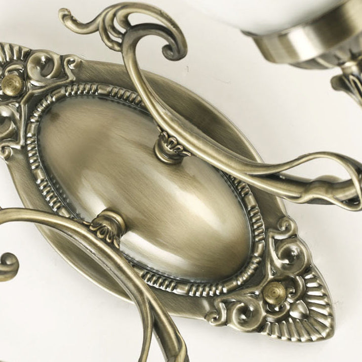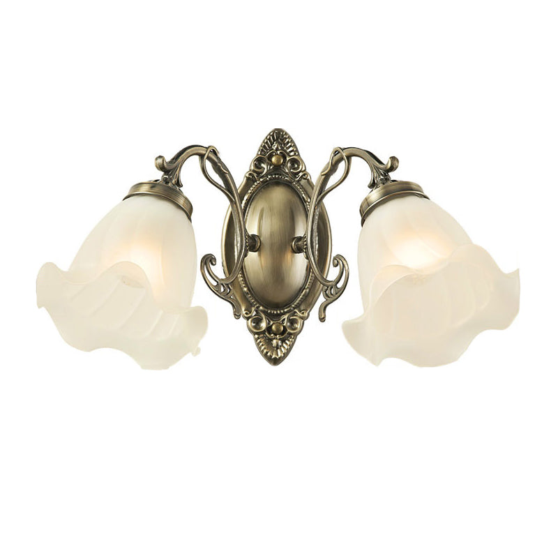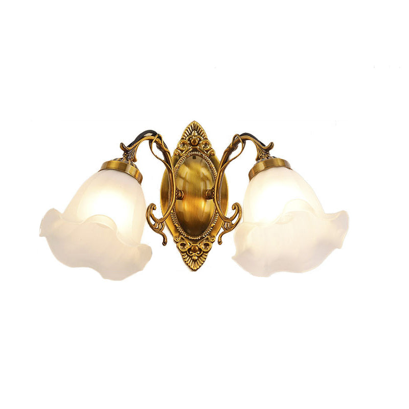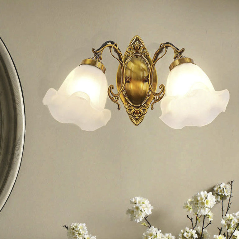 Traditional European Iron Glass Flower 2-Light Wall Sconce Lamp For Living Room