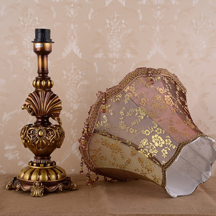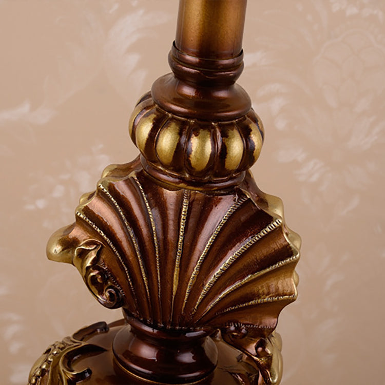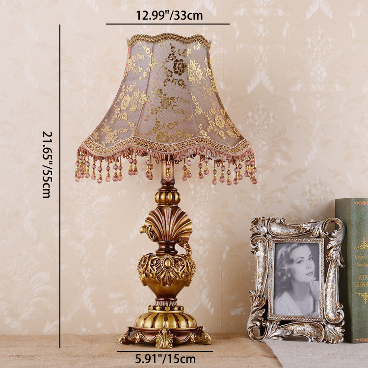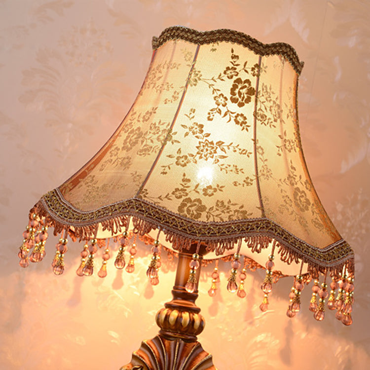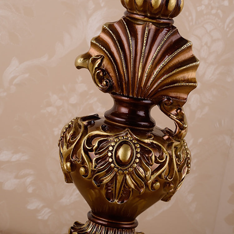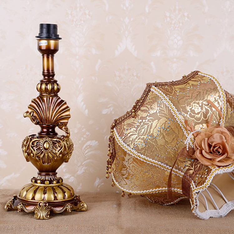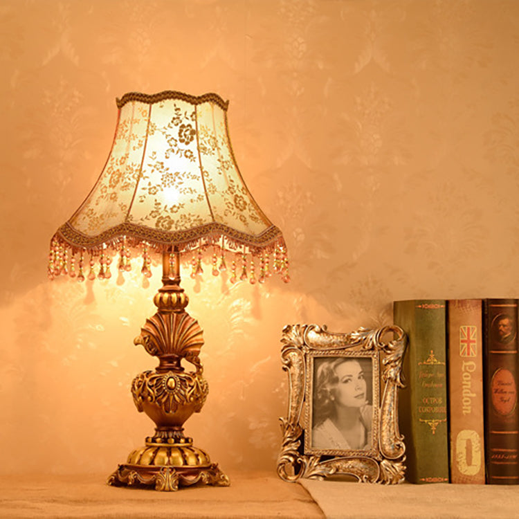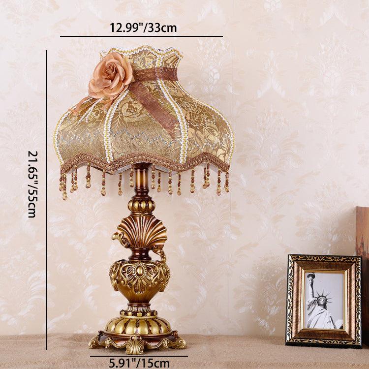 Traditional European Pastoral Flower Pattern Fabric Shade Resin Carved Base 1-Light Table Lamp For Home Office