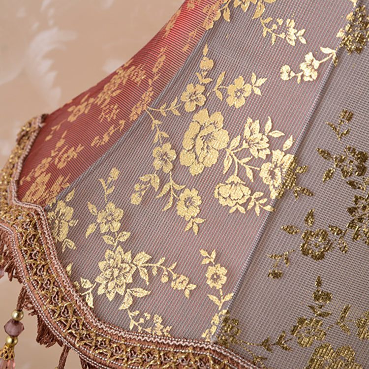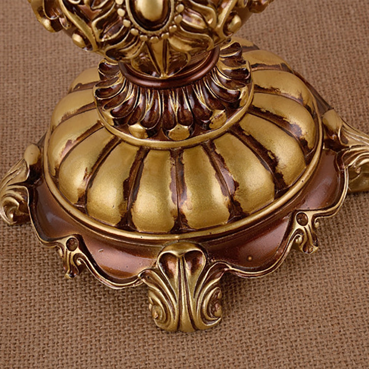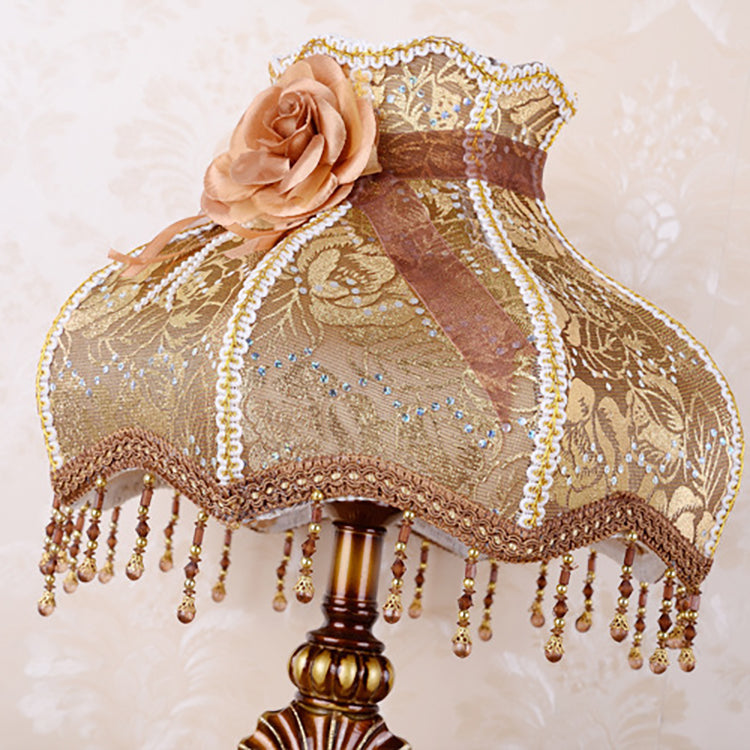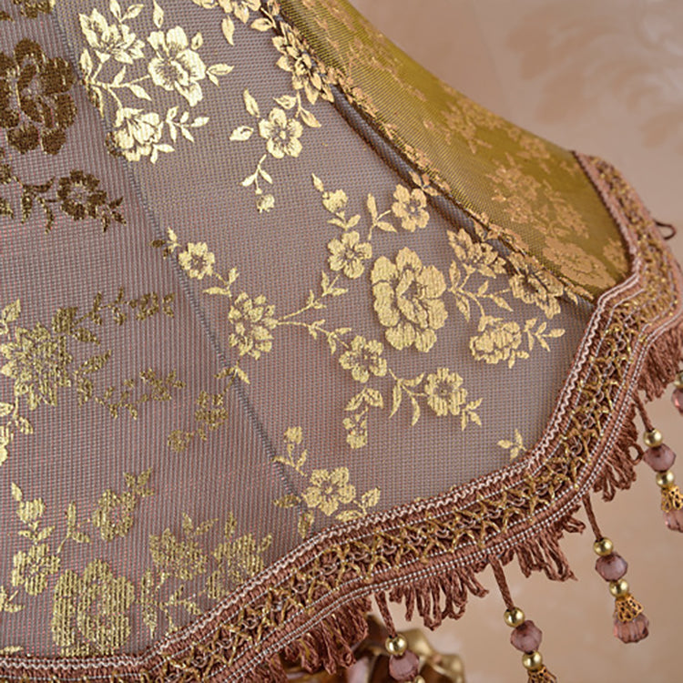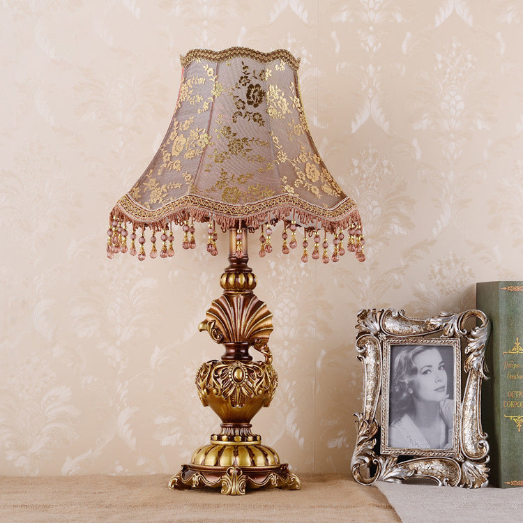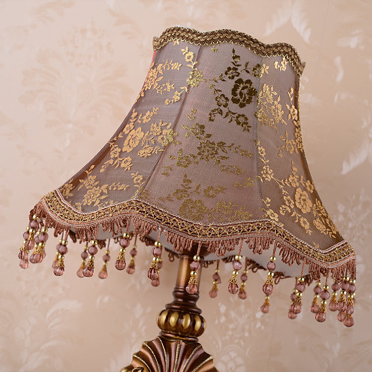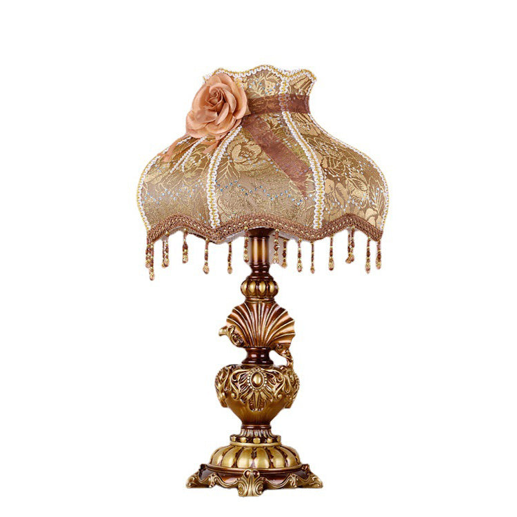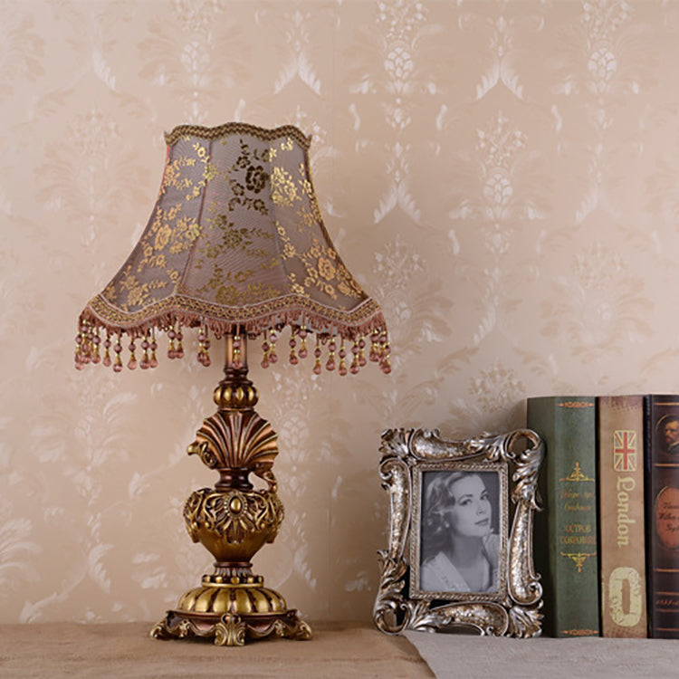 Traditional European Pastoral Flower Pattern Fabric Shade Resin Carved Base 1-Light Table Lamp For Home Office