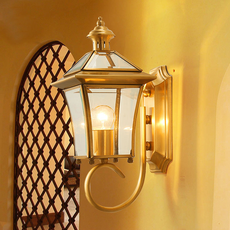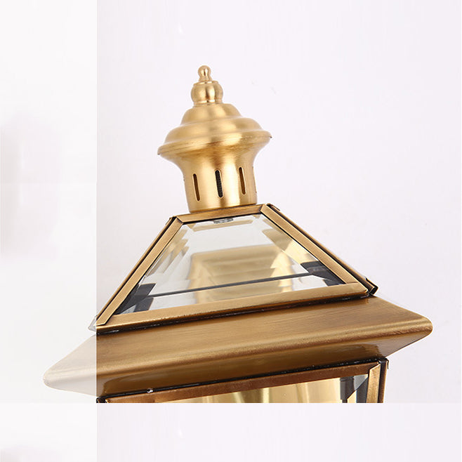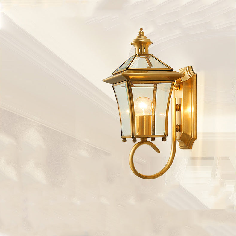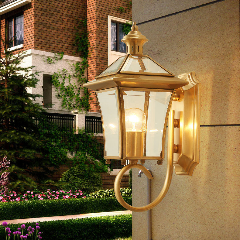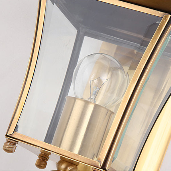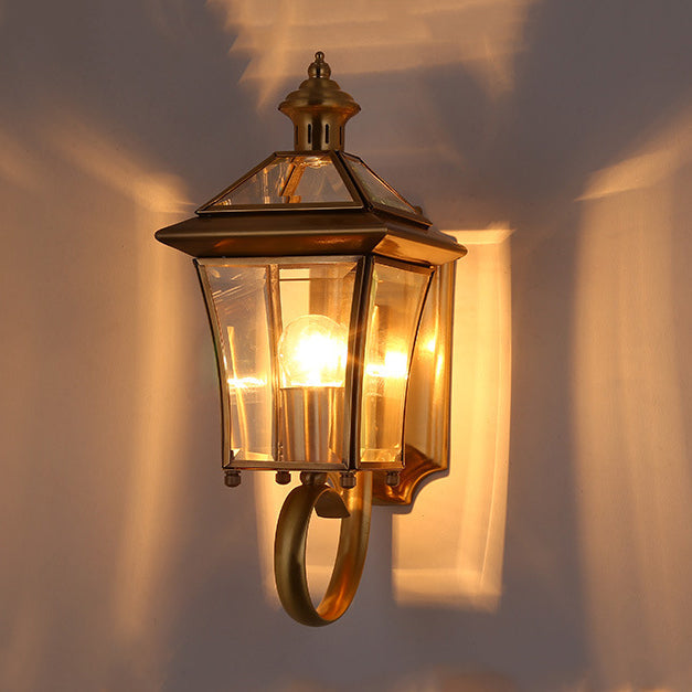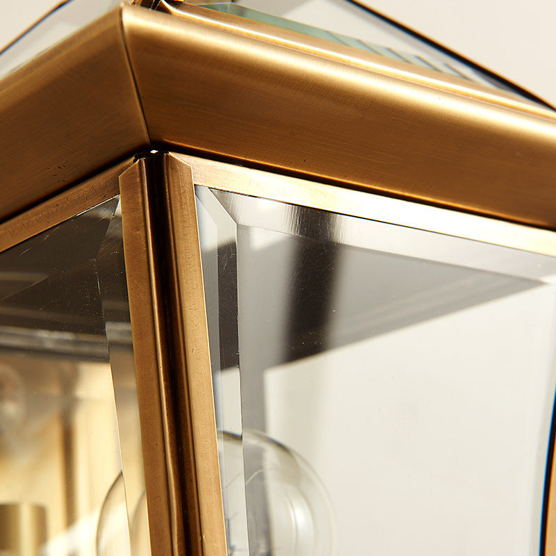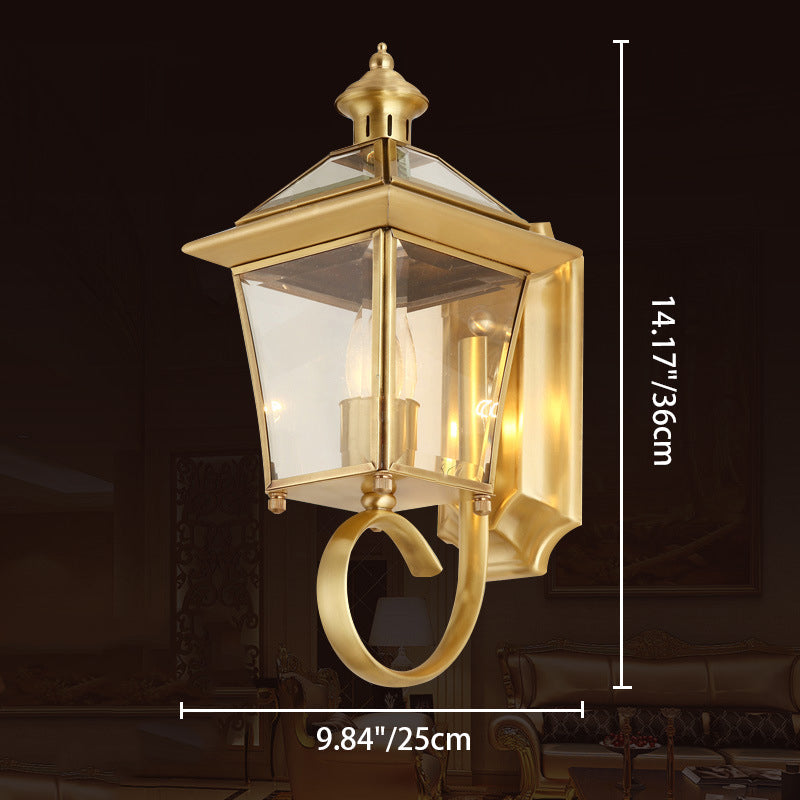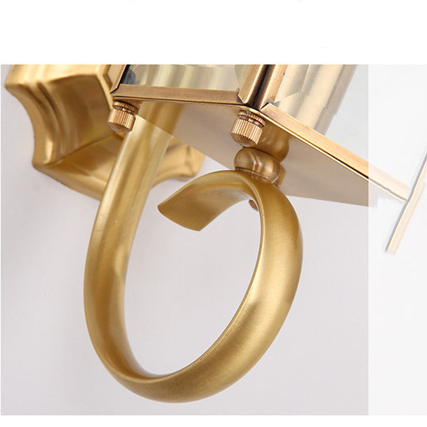 Traditional European Quadrangle Candle Holder Copper Frame Glass Shade 1-Light Wall Sconce Lamp For Garden