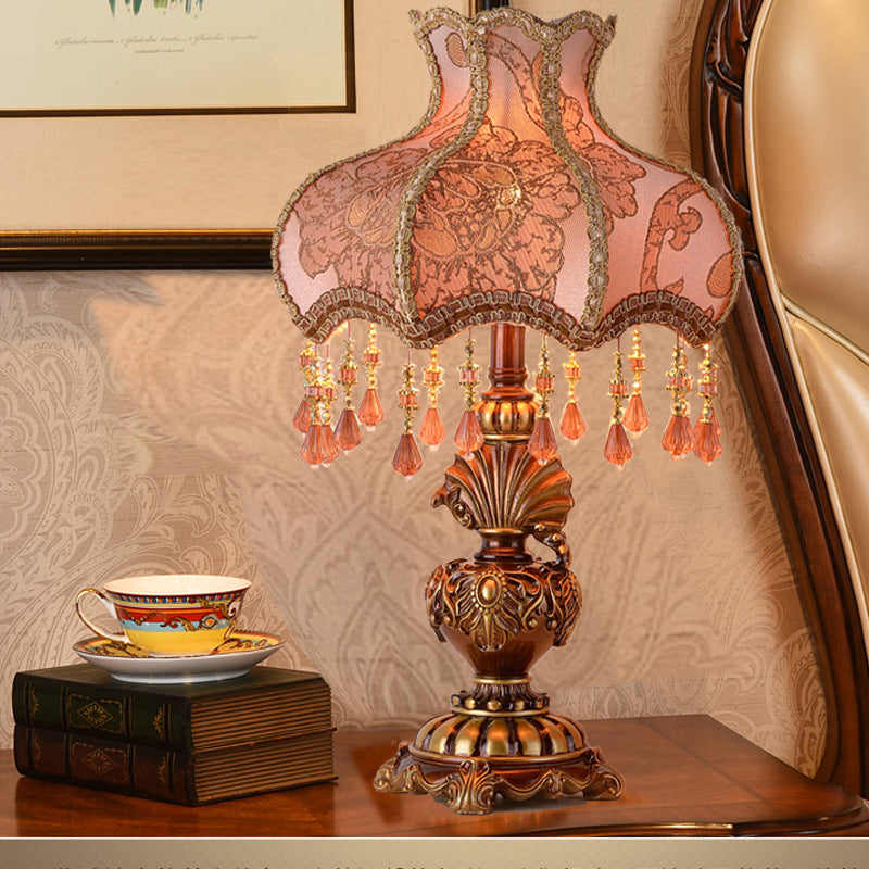 Traditional European Resin Fabric 1-Light Table Lamp For Bedroom
