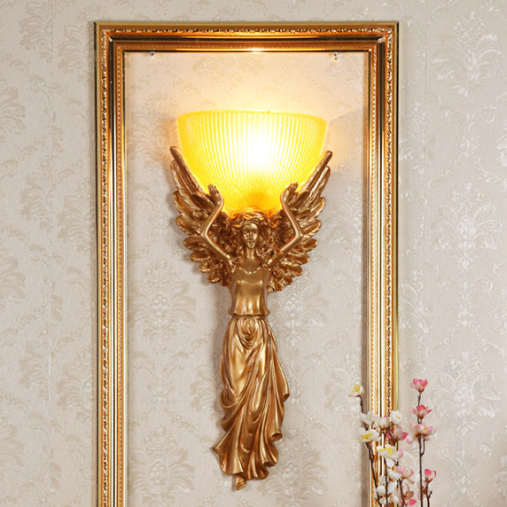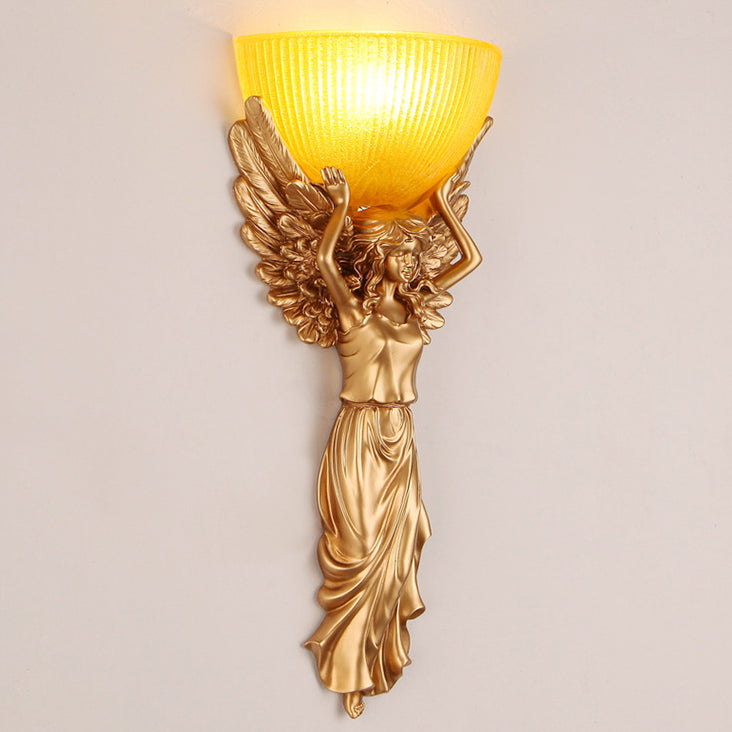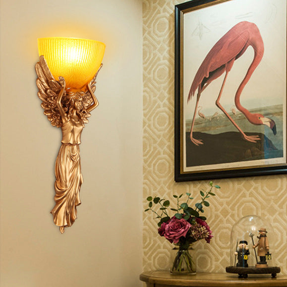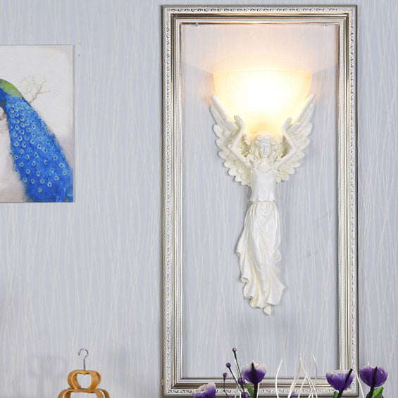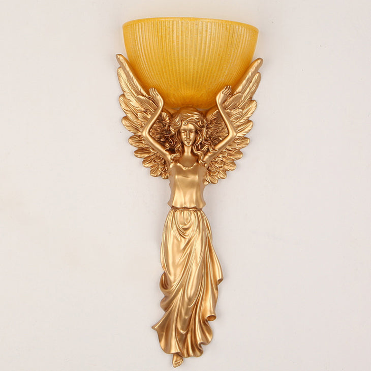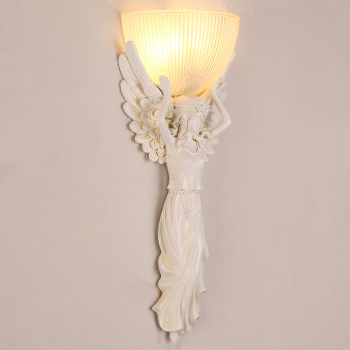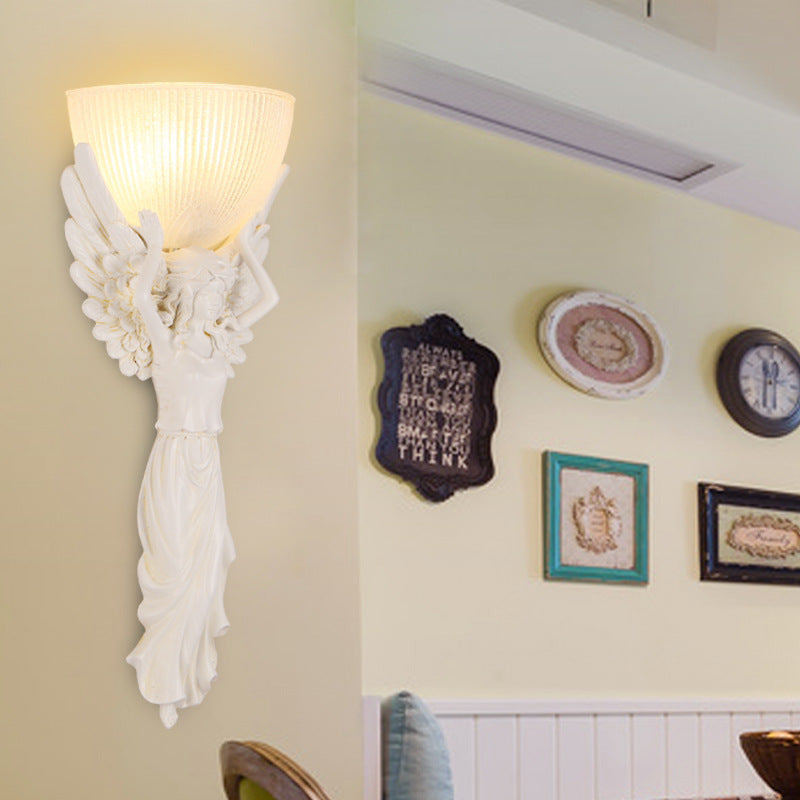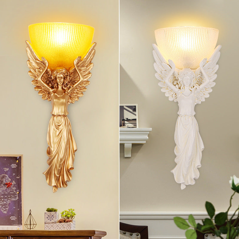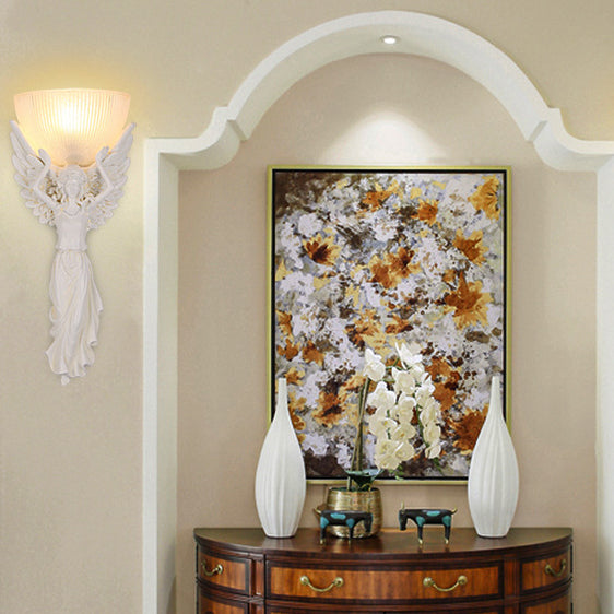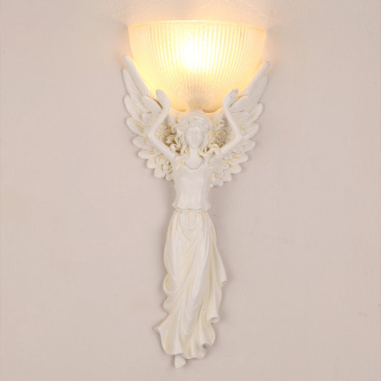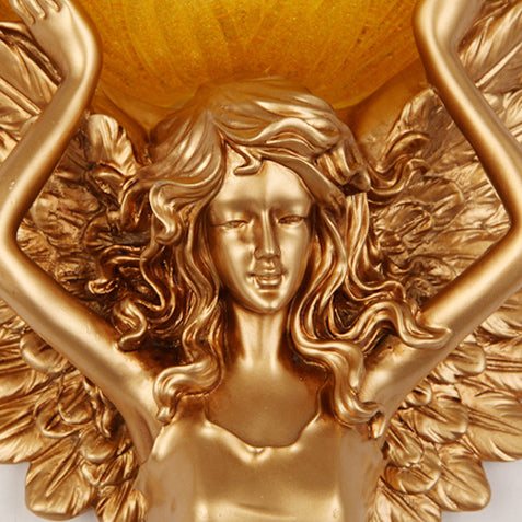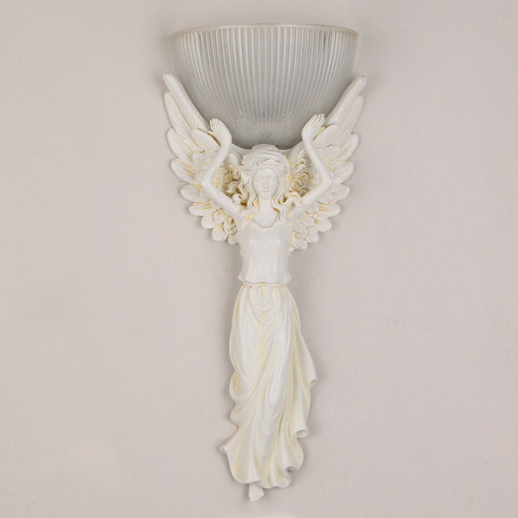 Traditional European Resin Glass Angel Statue 1-Light Wall Sconce Lamp For Living Room