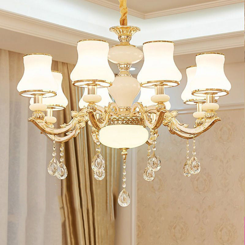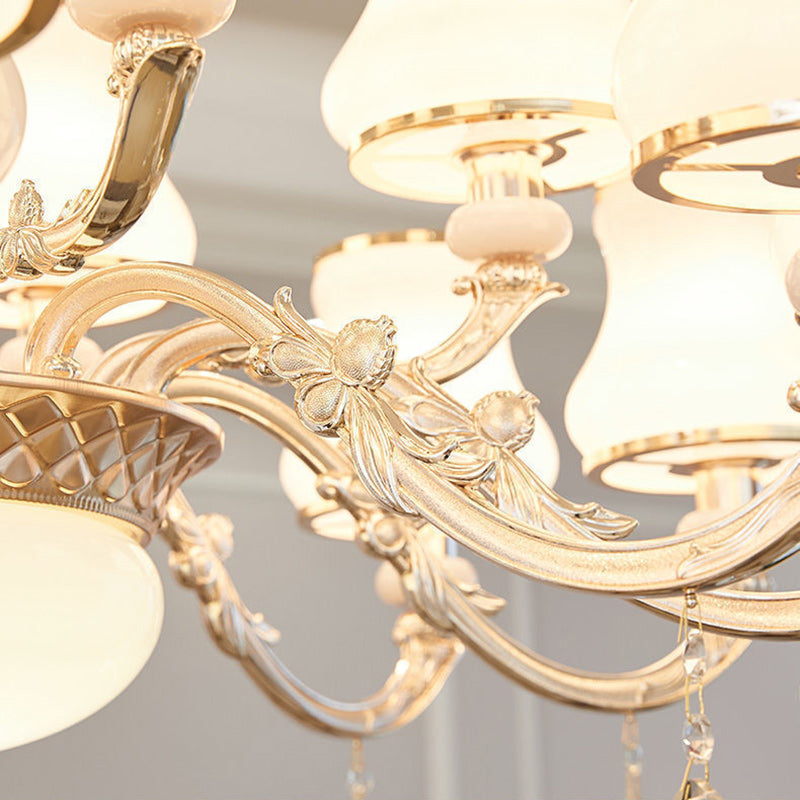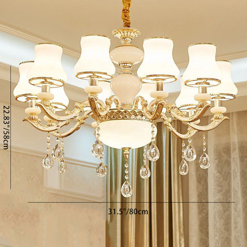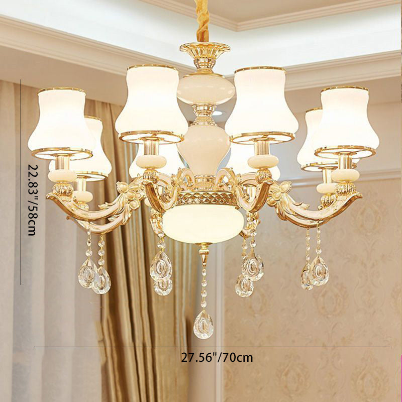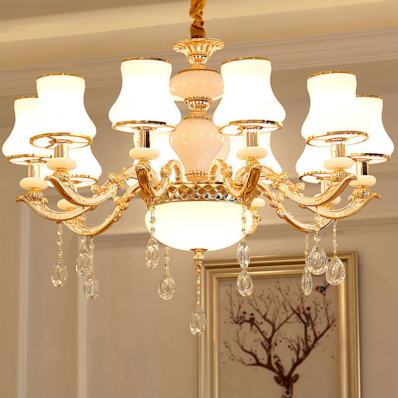 Traditional European Round Dome Candelabra Zinc Alloy Glass 6/8/10 Light Chandelier For Living Room