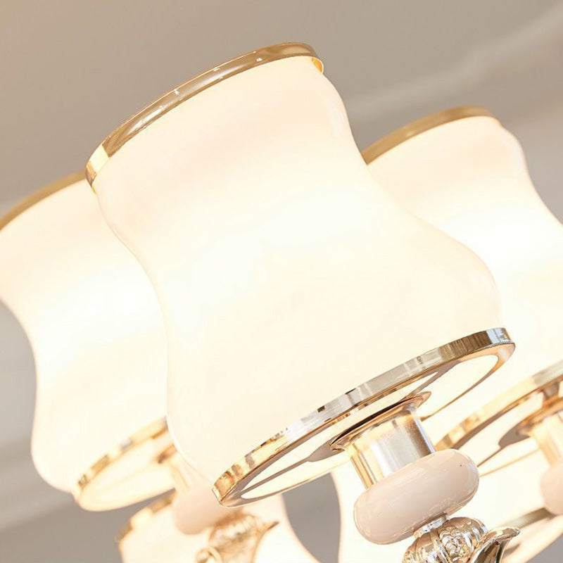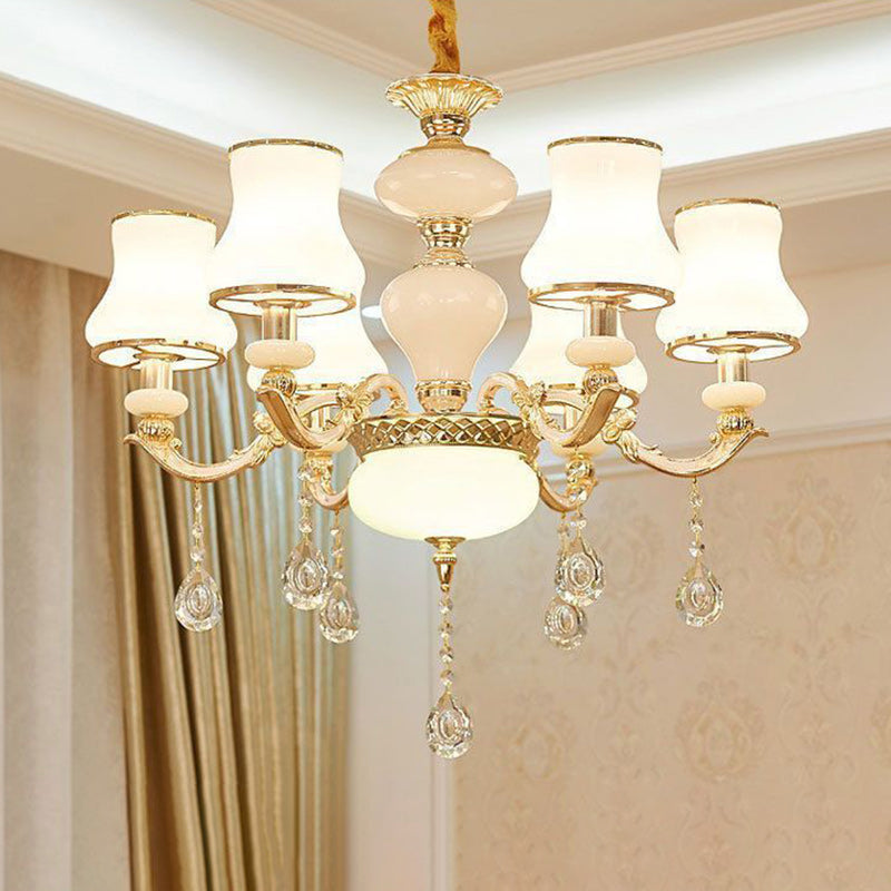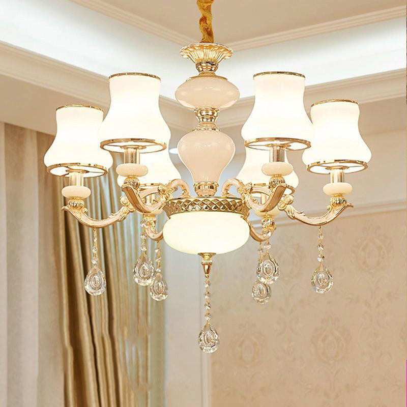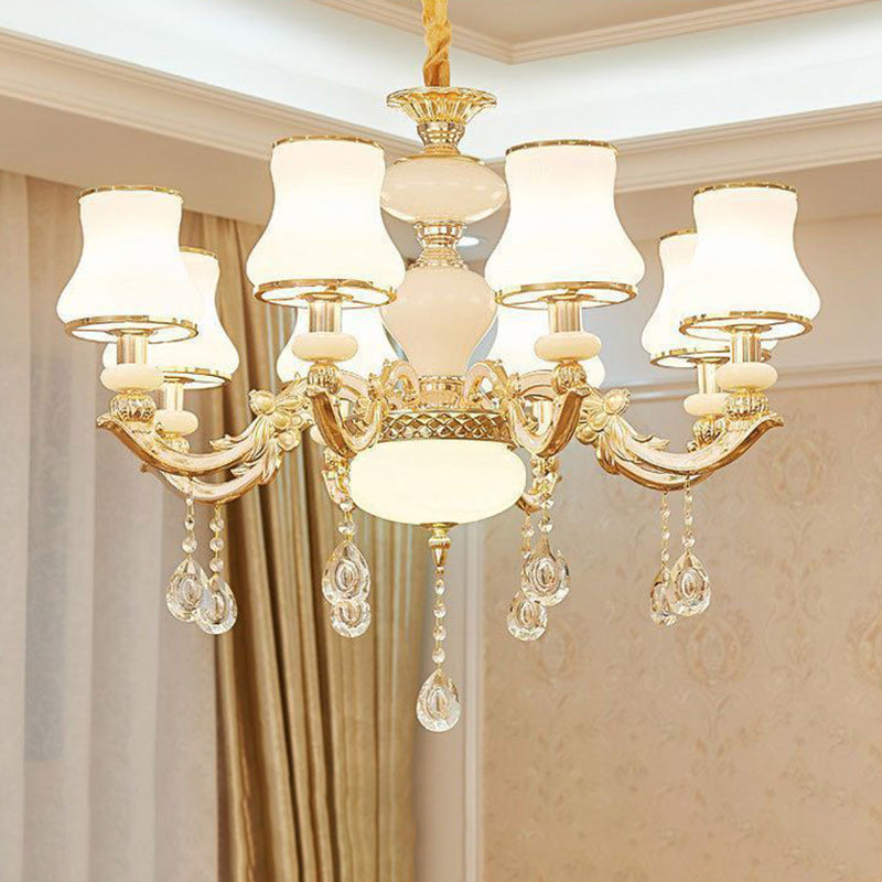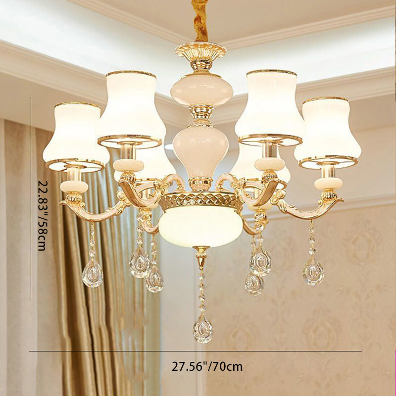 Traditional European Round Dome Candelabra Zinc Alloy Glass 6/8/10 Light Chandelier For Living Room