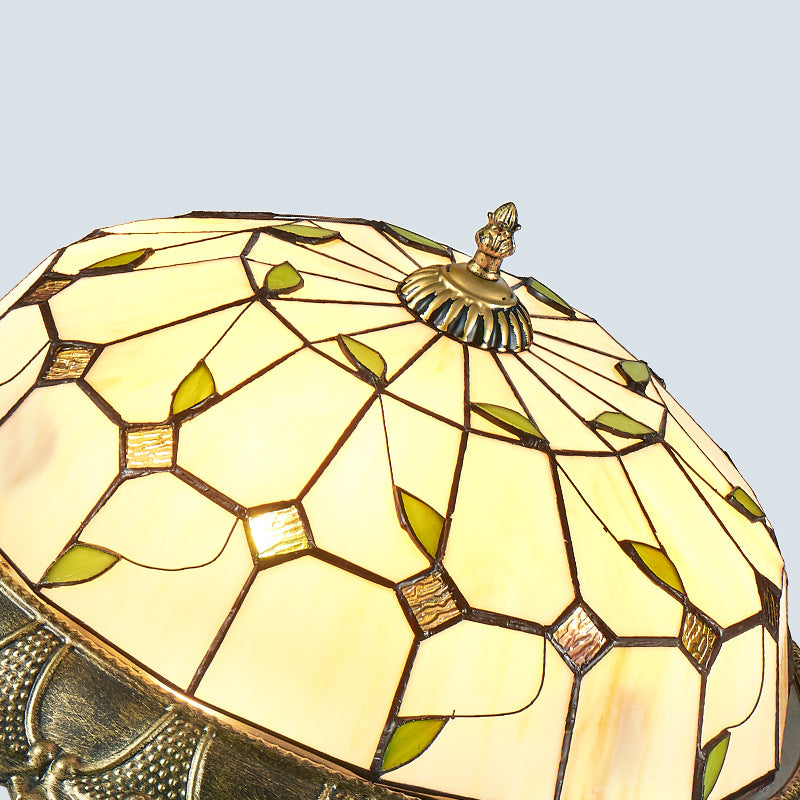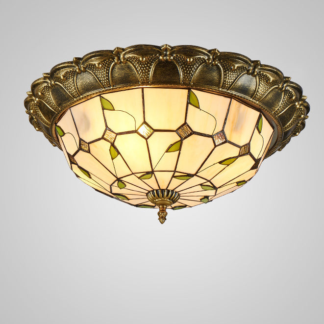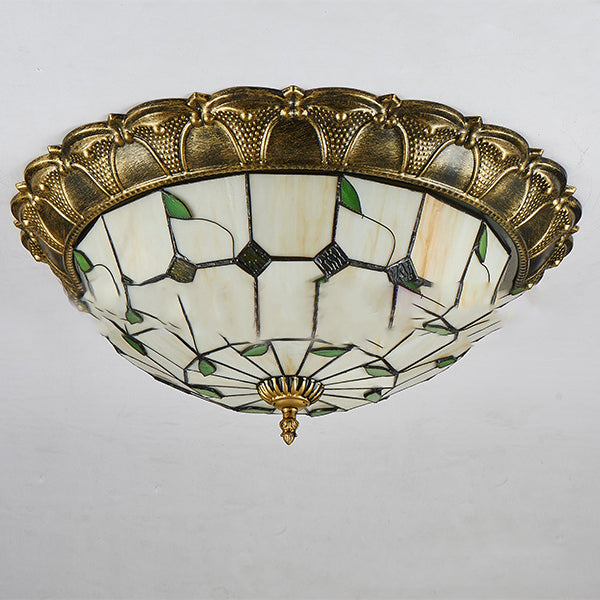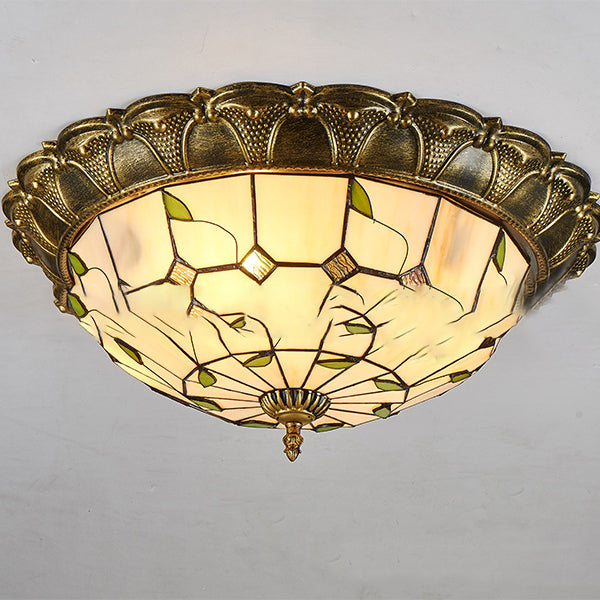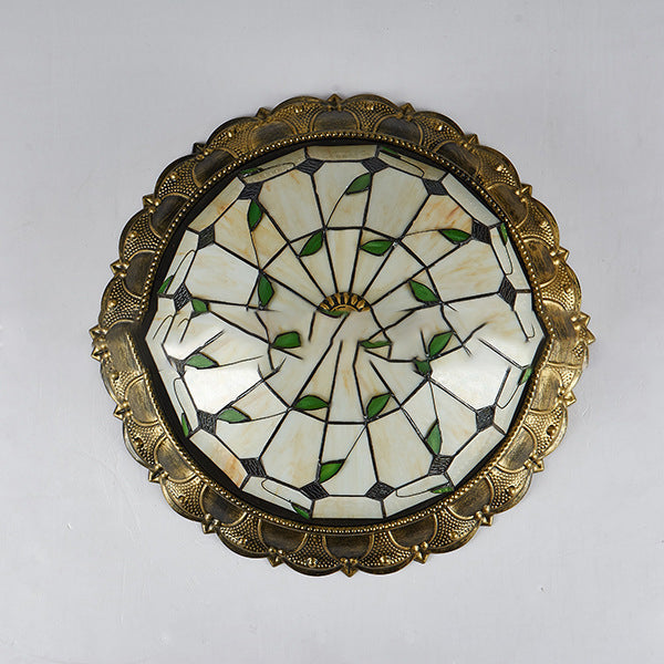 Traditional European Round Dome Leaf Iron Glass LED Flush Mount Ceiling Light For Living Room