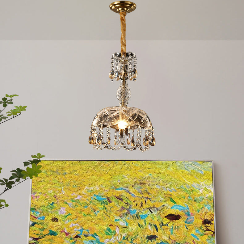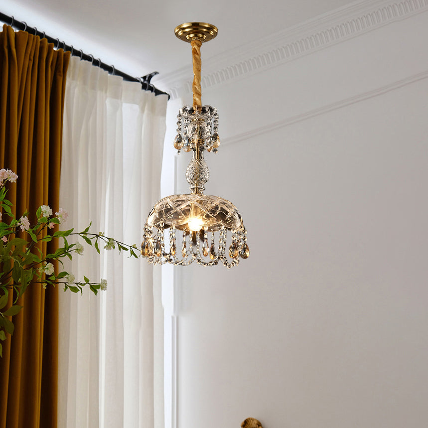 Traditional European Round Flower Crystal Hardware 1-Light Pendant Light For Living Room