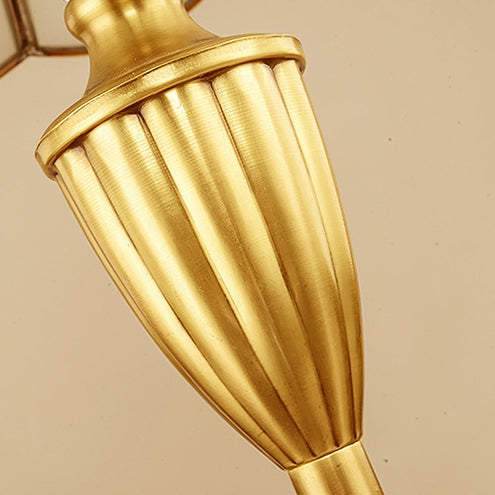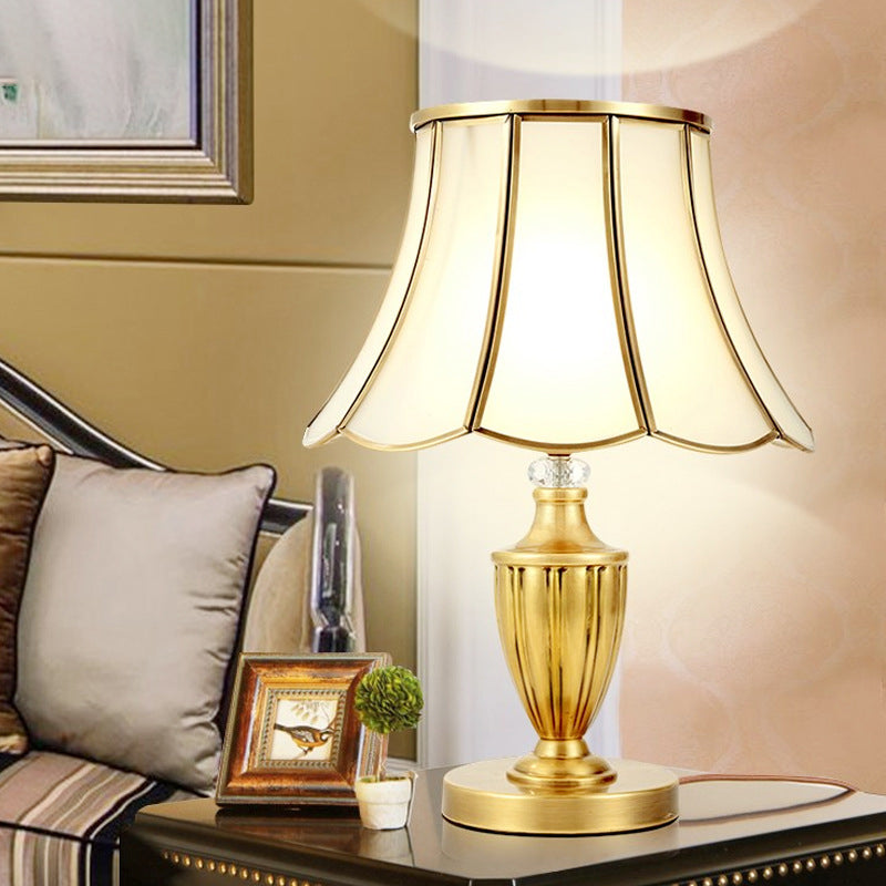 Traditional European Round Lace Copper Glass 1-Light Table Lamp For Bedroom