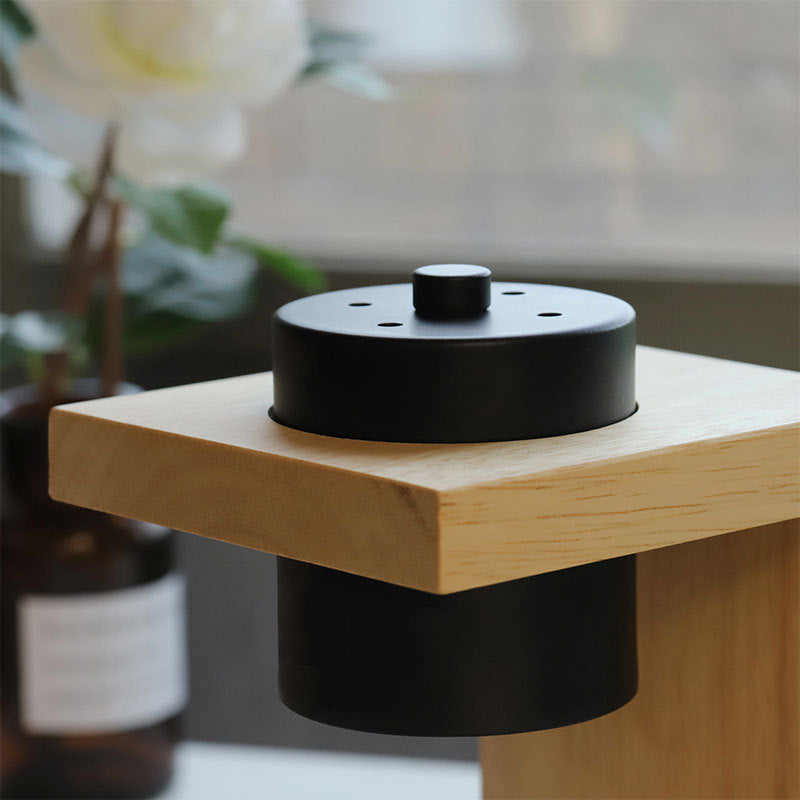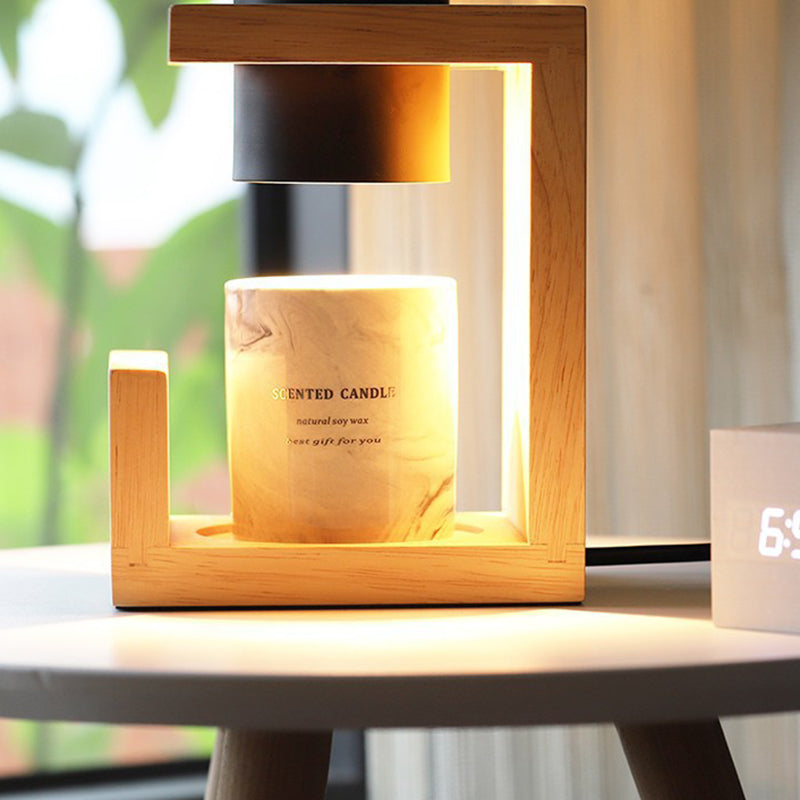 Traditional Farmhouse Metal Rubber Geometric Line Cylinder Wood 1-Light Melting Wax Table Lamp For Bedroom