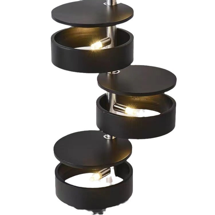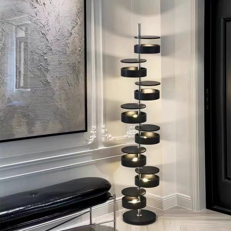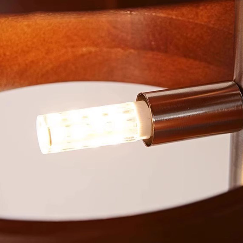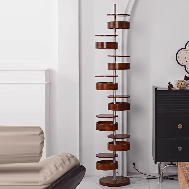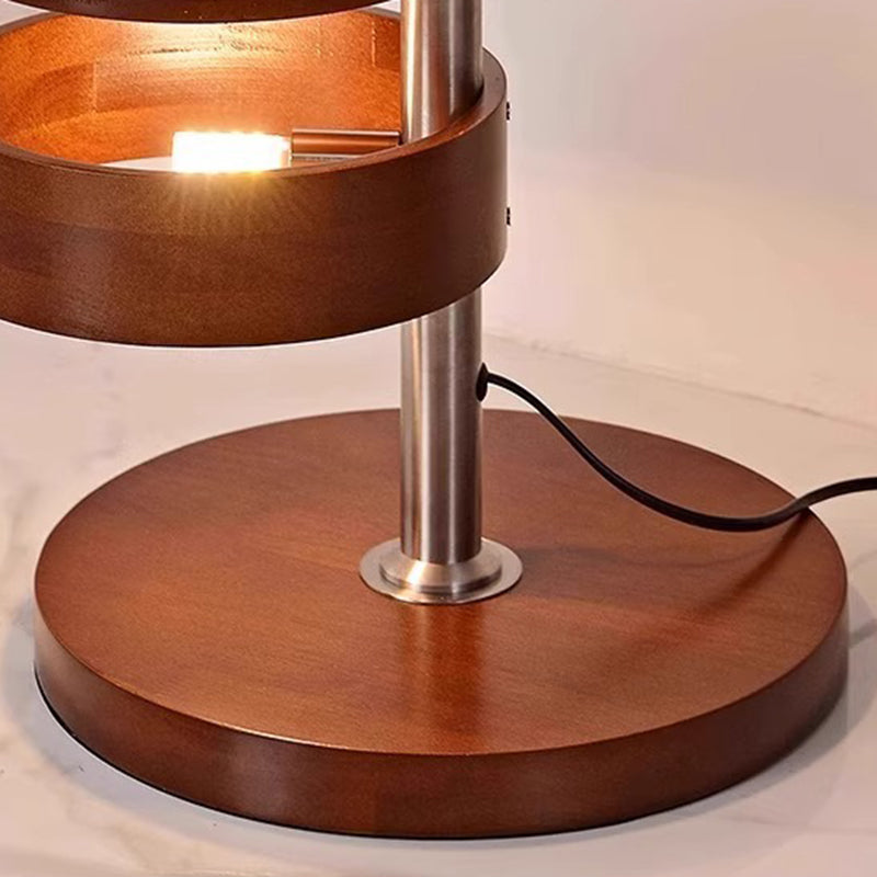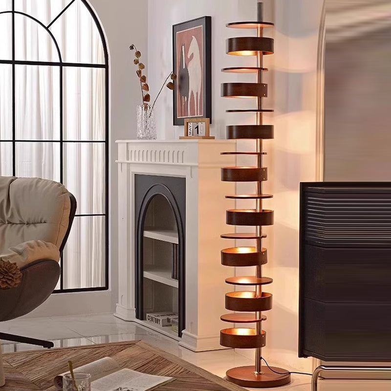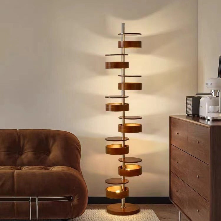 Traditional French Ash Wood Circle Ring Stacking Stainless Steel 8-Light Standing Floor Lamp For Home Office