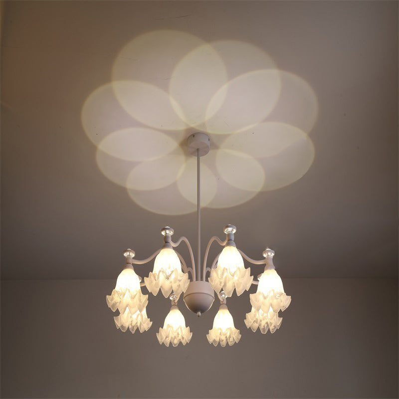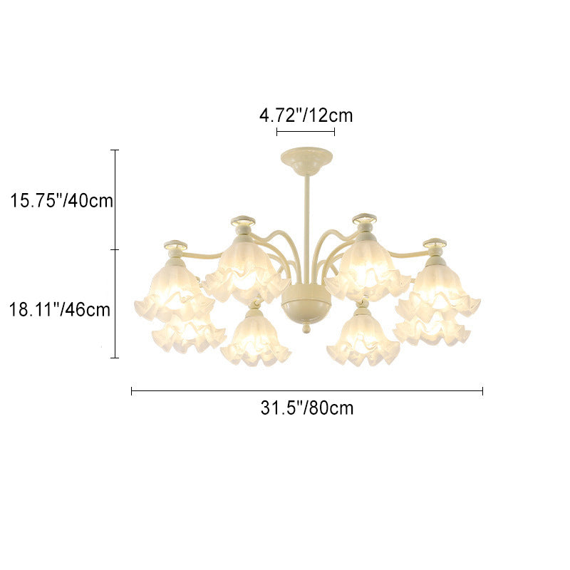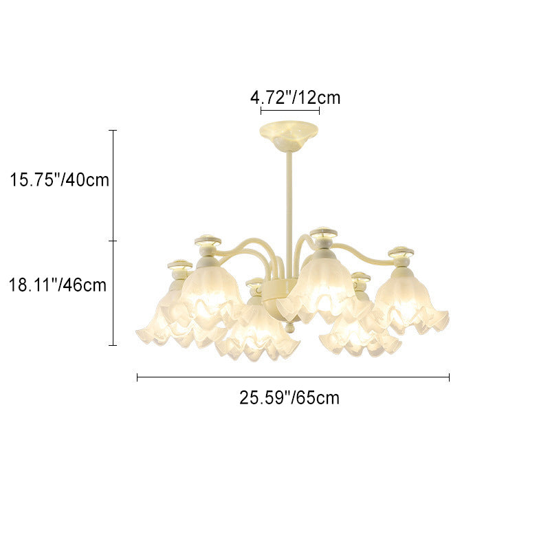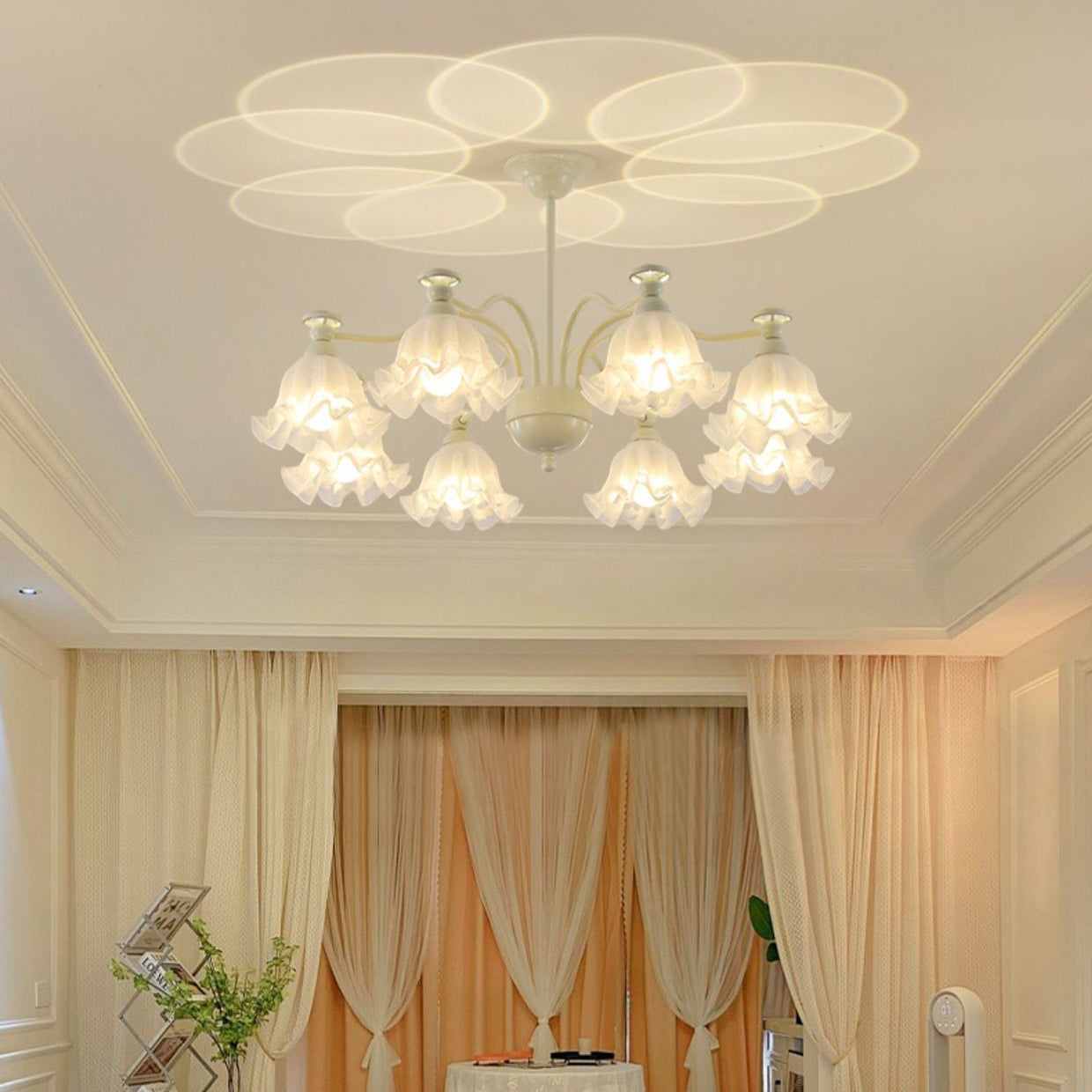 Traditional French Branch Floral Glass Iron 6/8 Light Chandelier For Bedroom