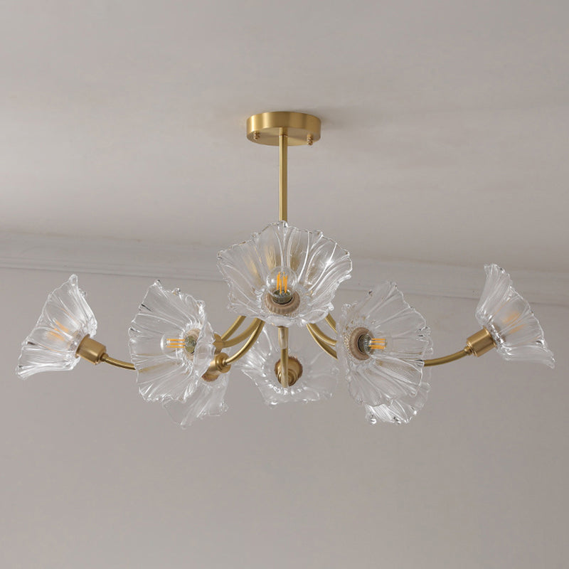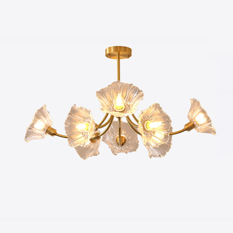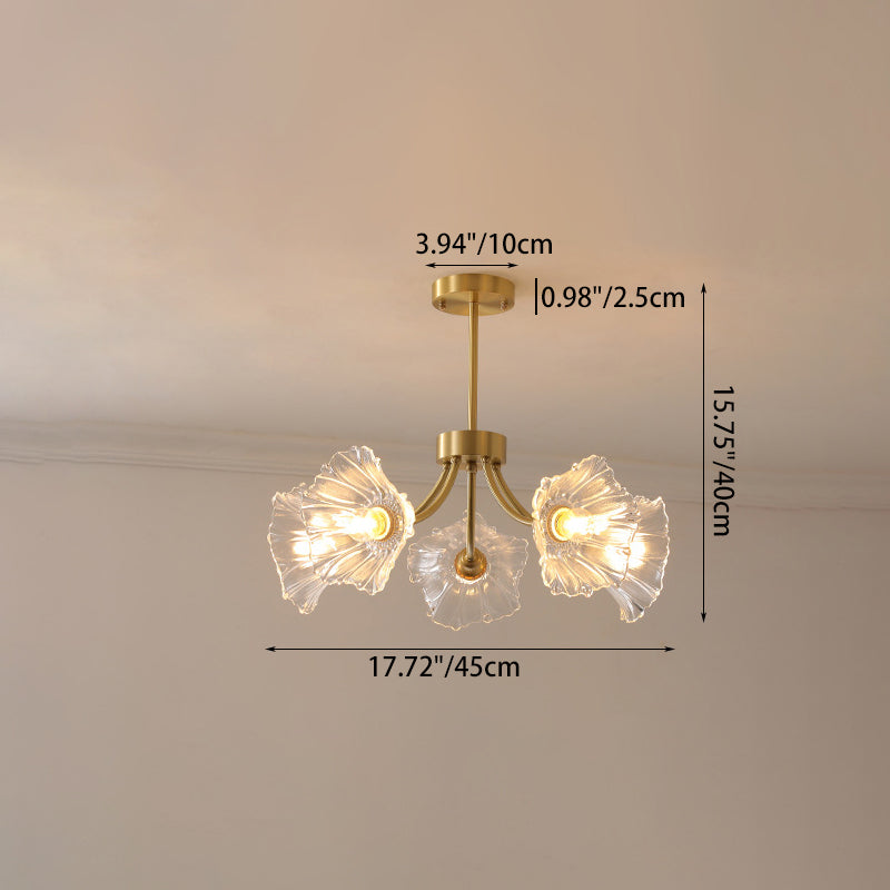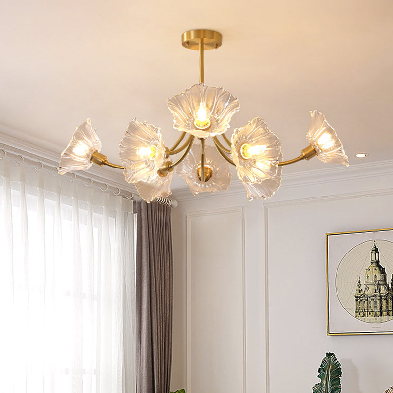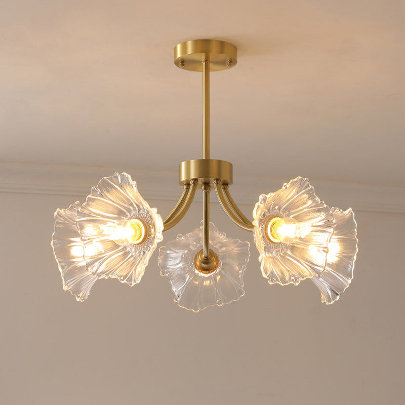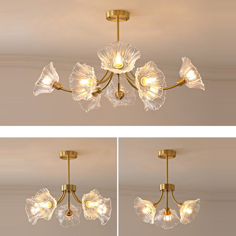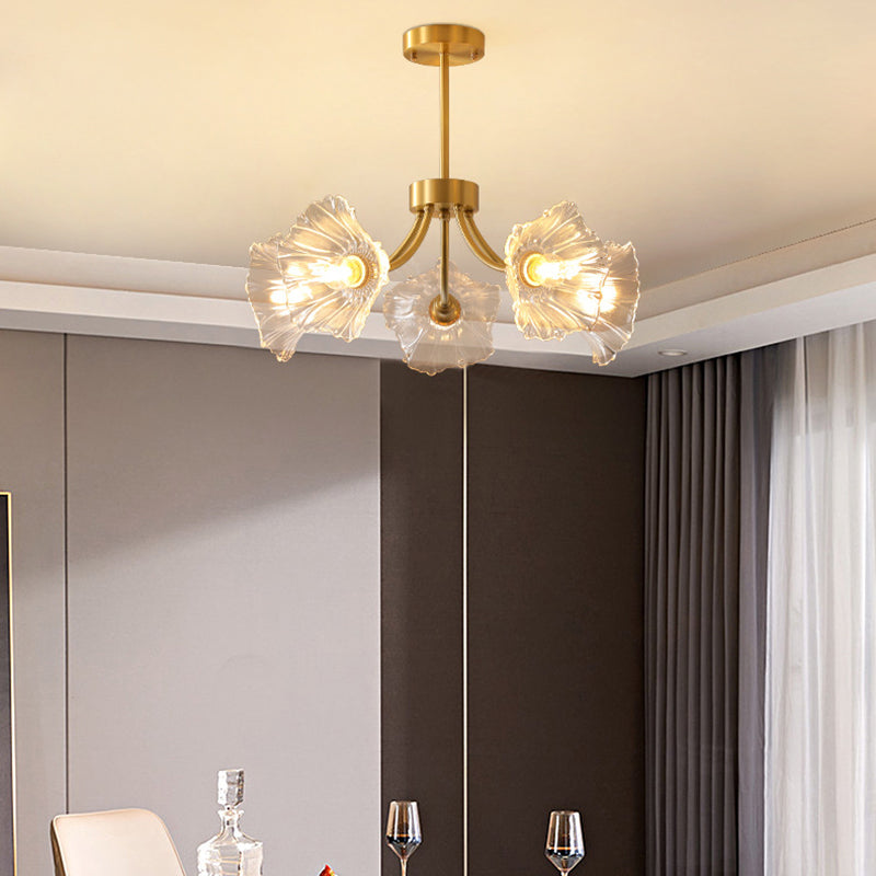 Traditional French Branch Flower Curved Glass Brass 3/5/8 Light Chandelier For Living Room